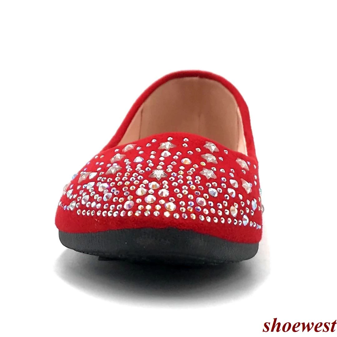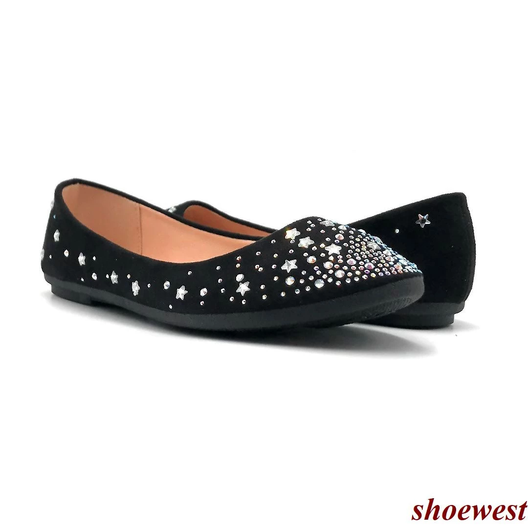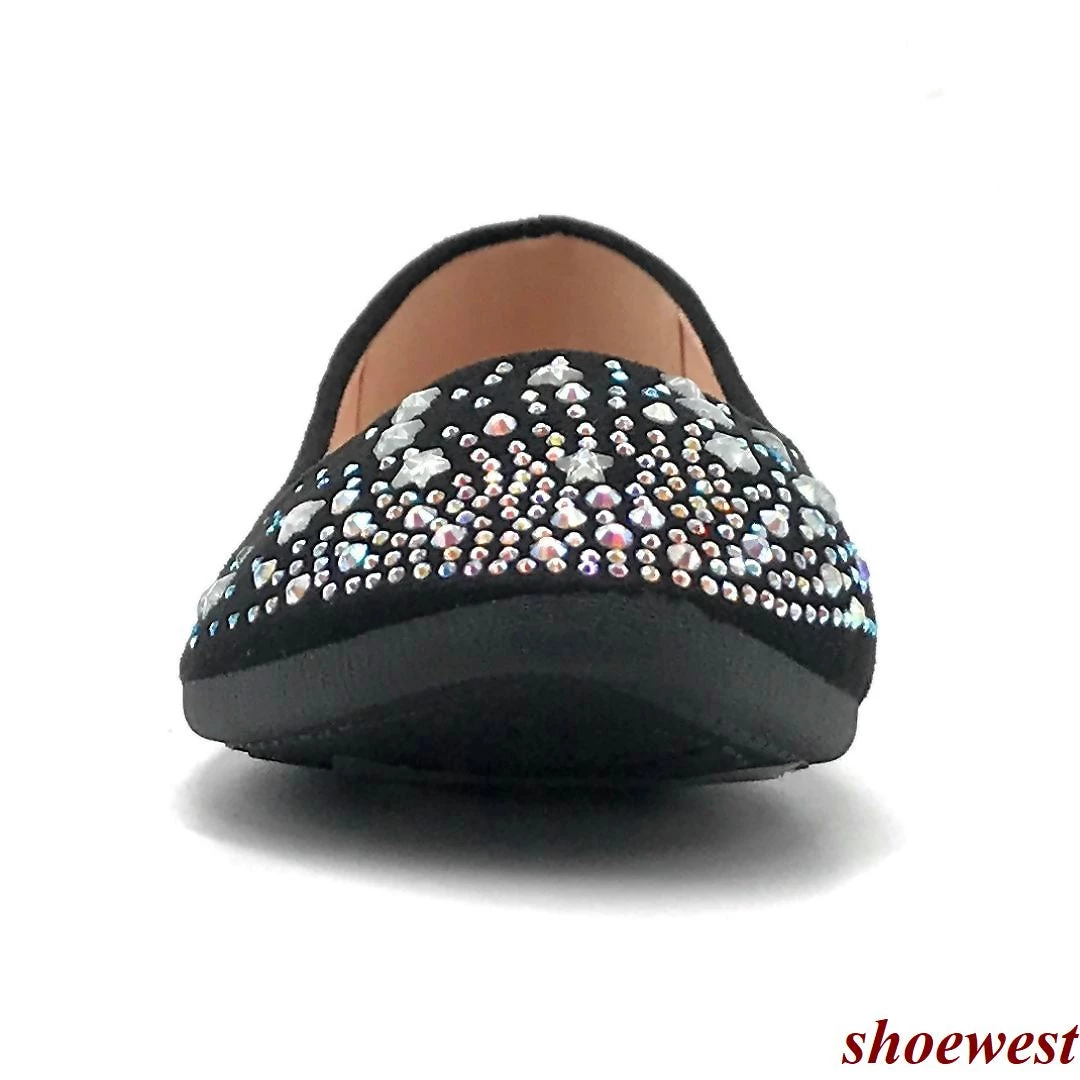 - This mesh glitter round-toe ballet flat is encrusted with assorted iridescent rhinestones.