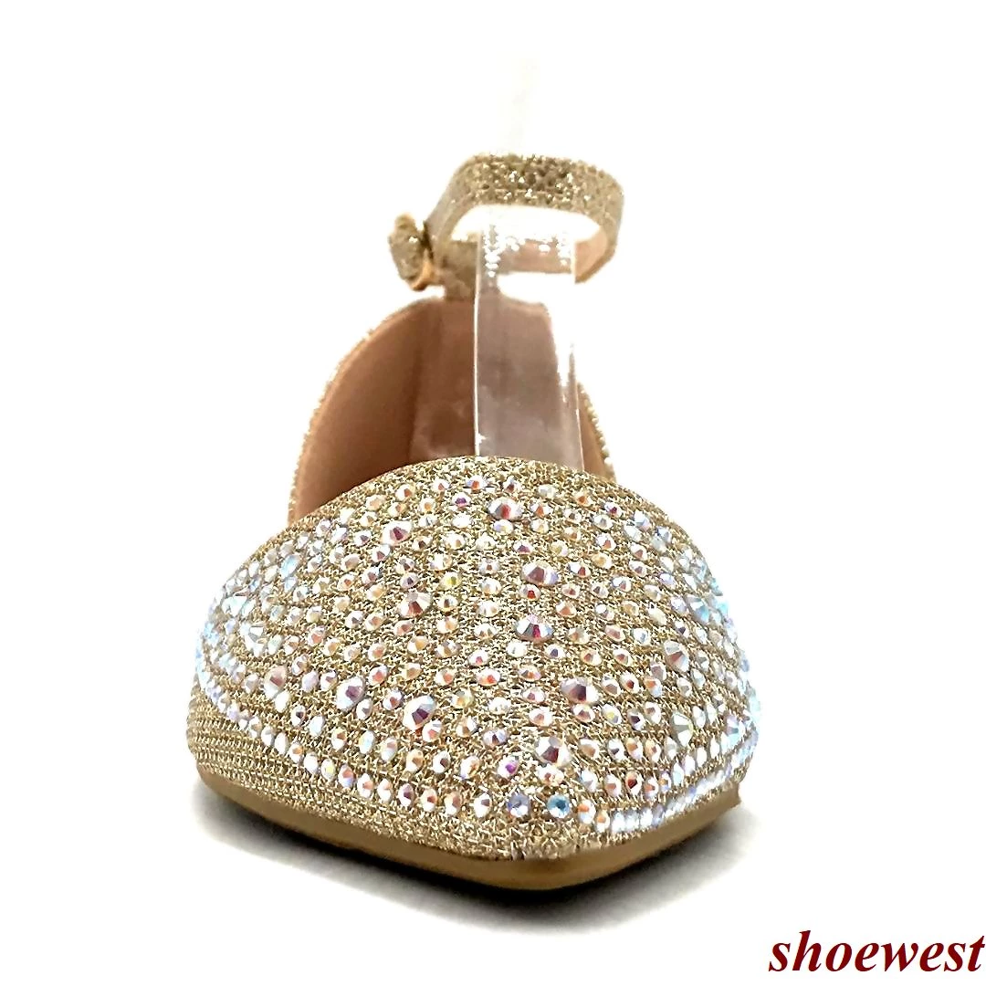 Forever Link Jeweled Embellishments Rhinestone Thin strap Covered Flats