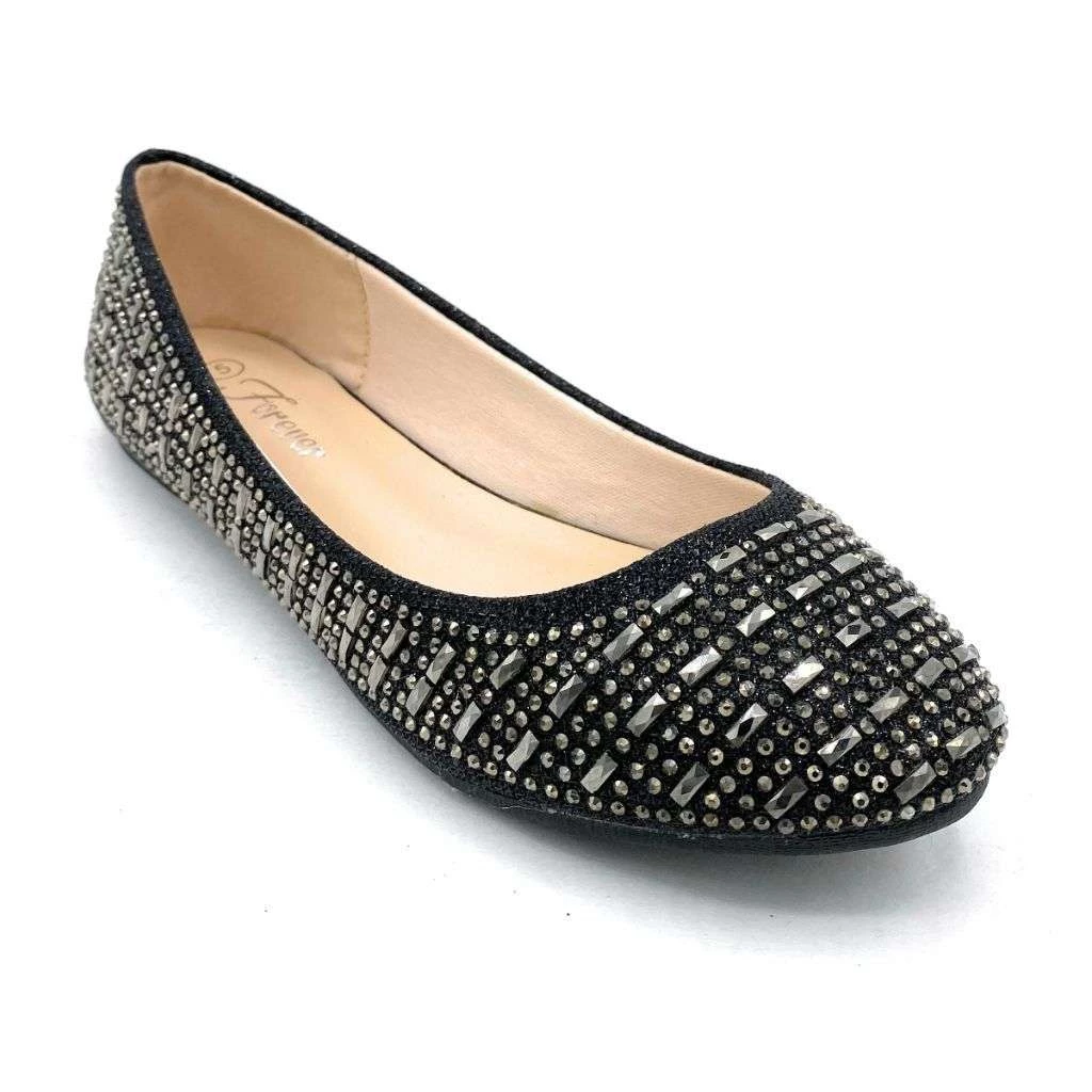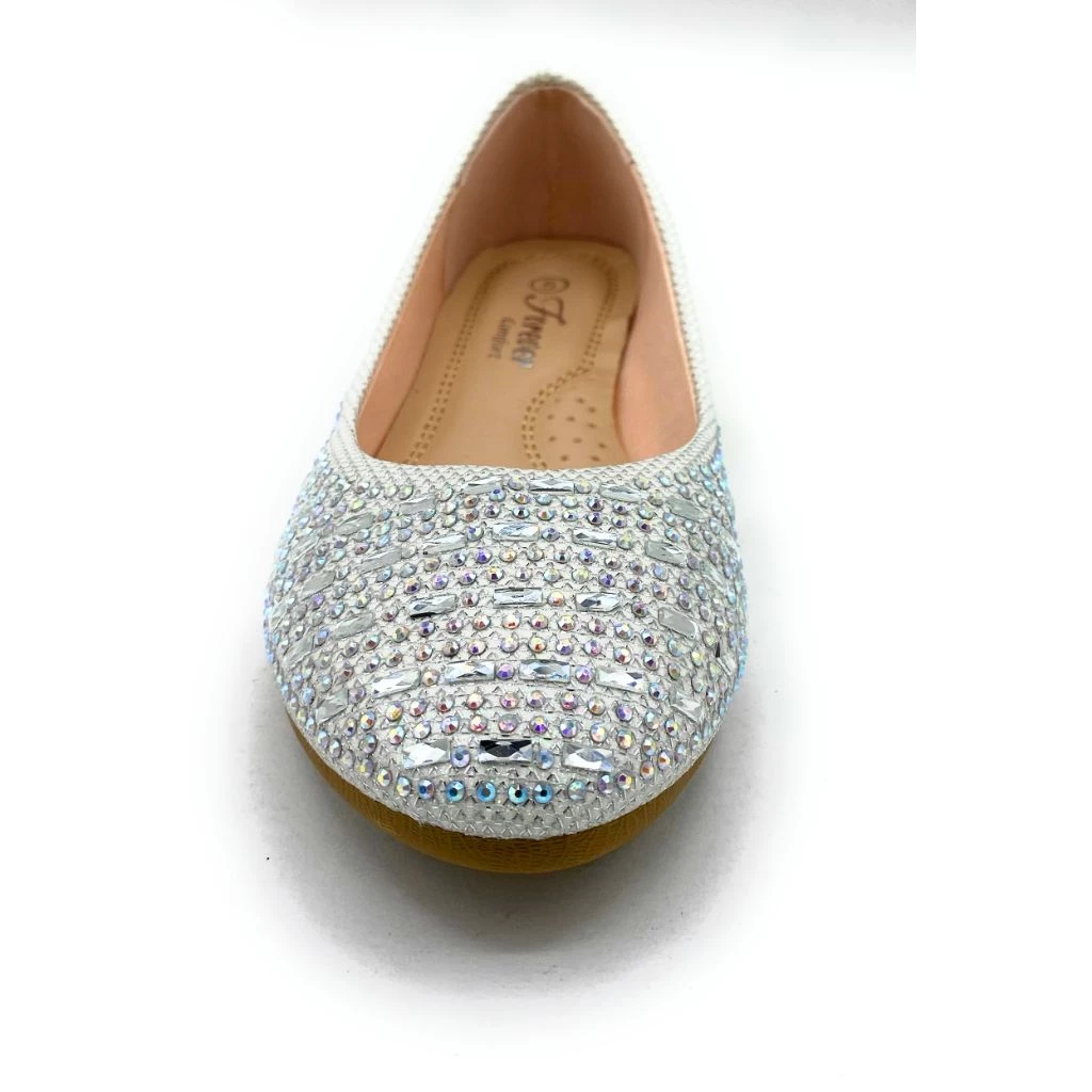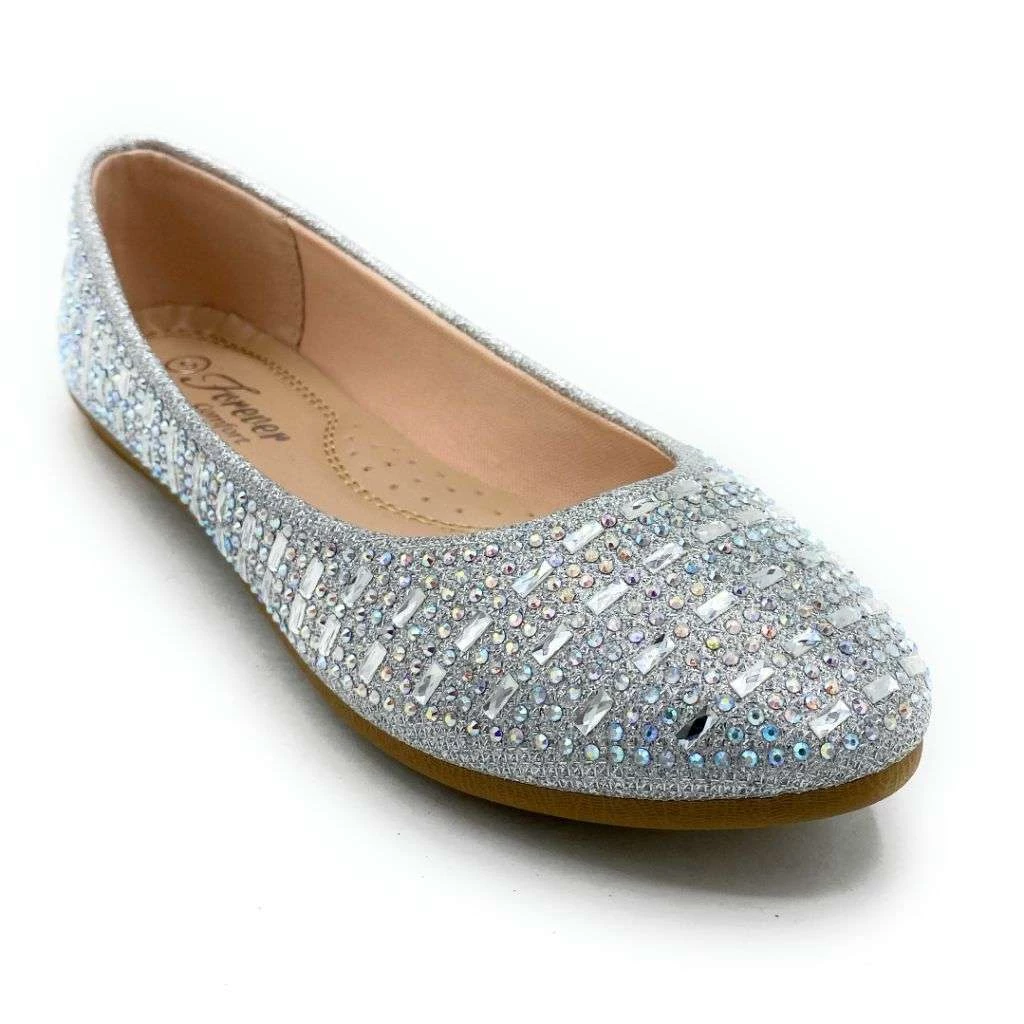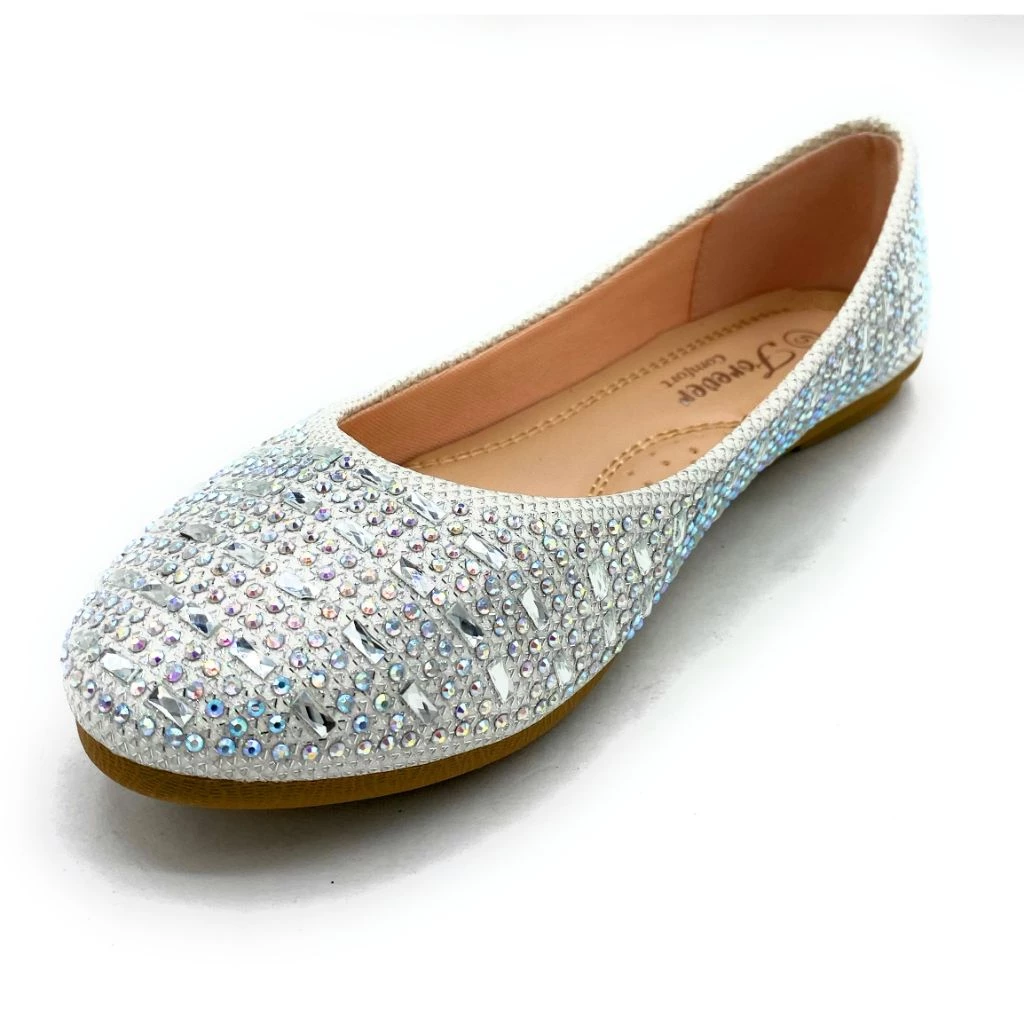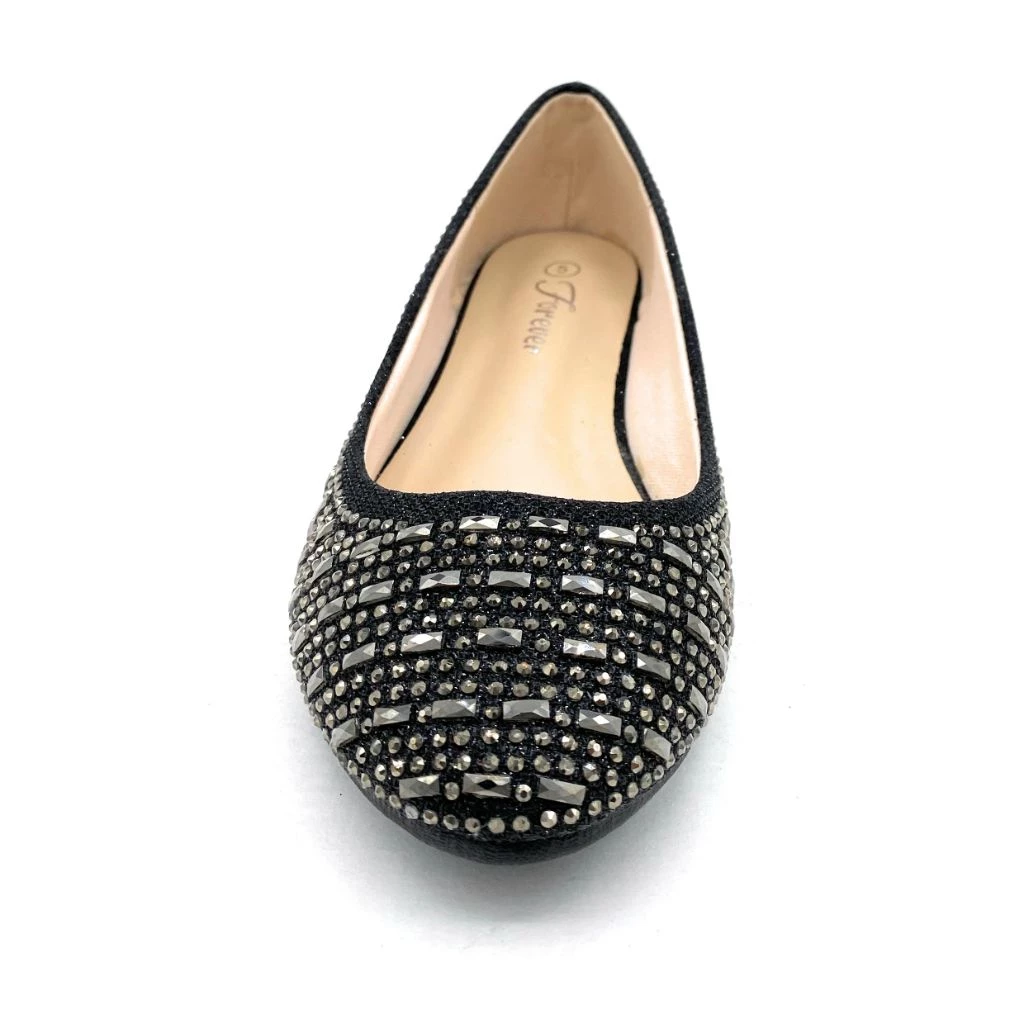 Forever Sparkly Crystals Rhinestone Comfortable Slip On Round Toe Ballet Flat Shoes for Women Wedding Party Office