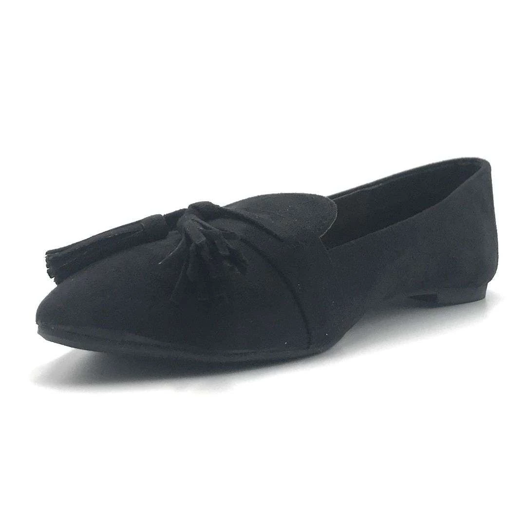 - features an almond toe with loafer style cuts and accents as well as a darling tassel on the top
