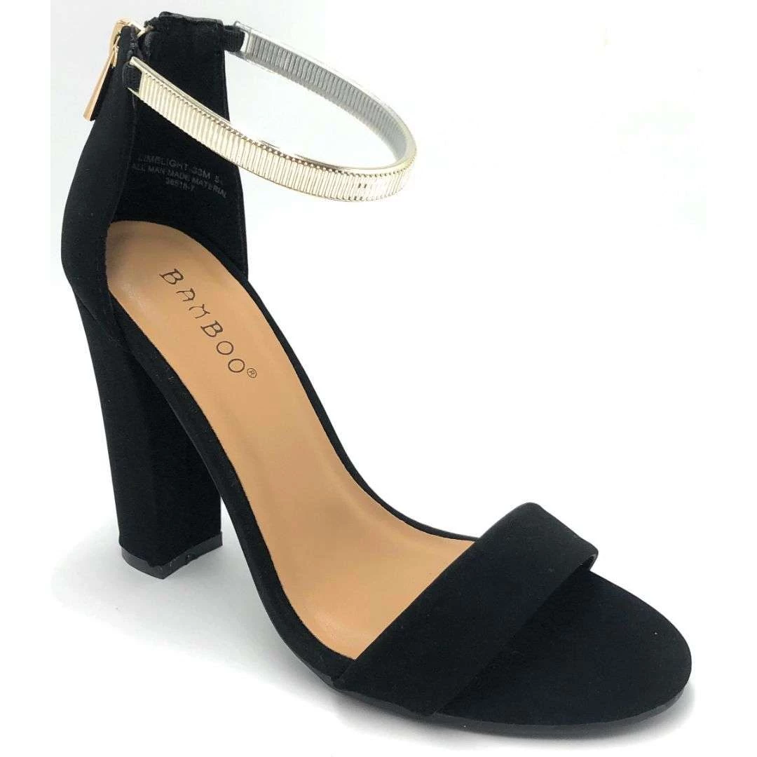 Bamboo Chunky Block High Heel Ankle Strap Back Zipper Closure New Style Party Dress Evening Fashion Women’s Shoe