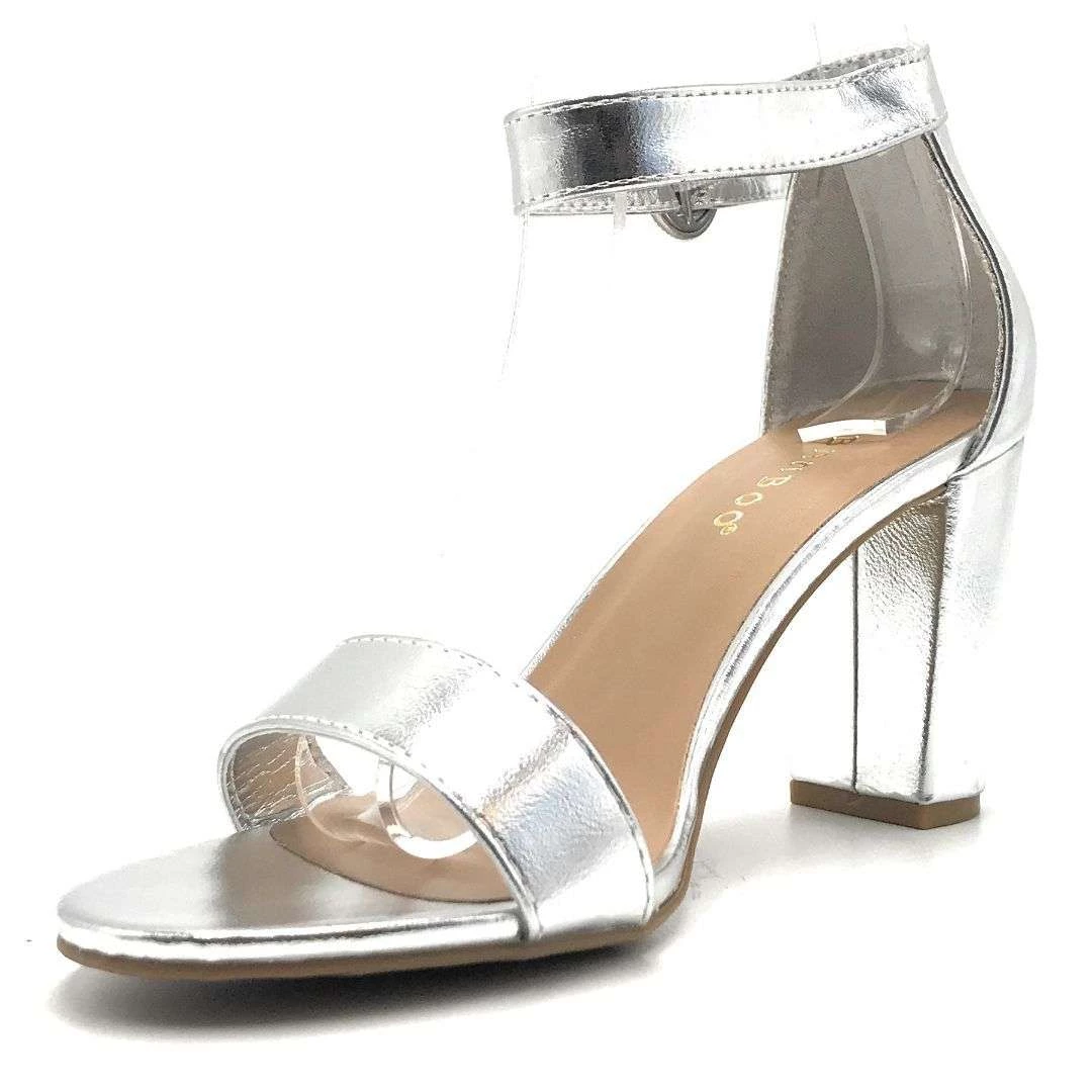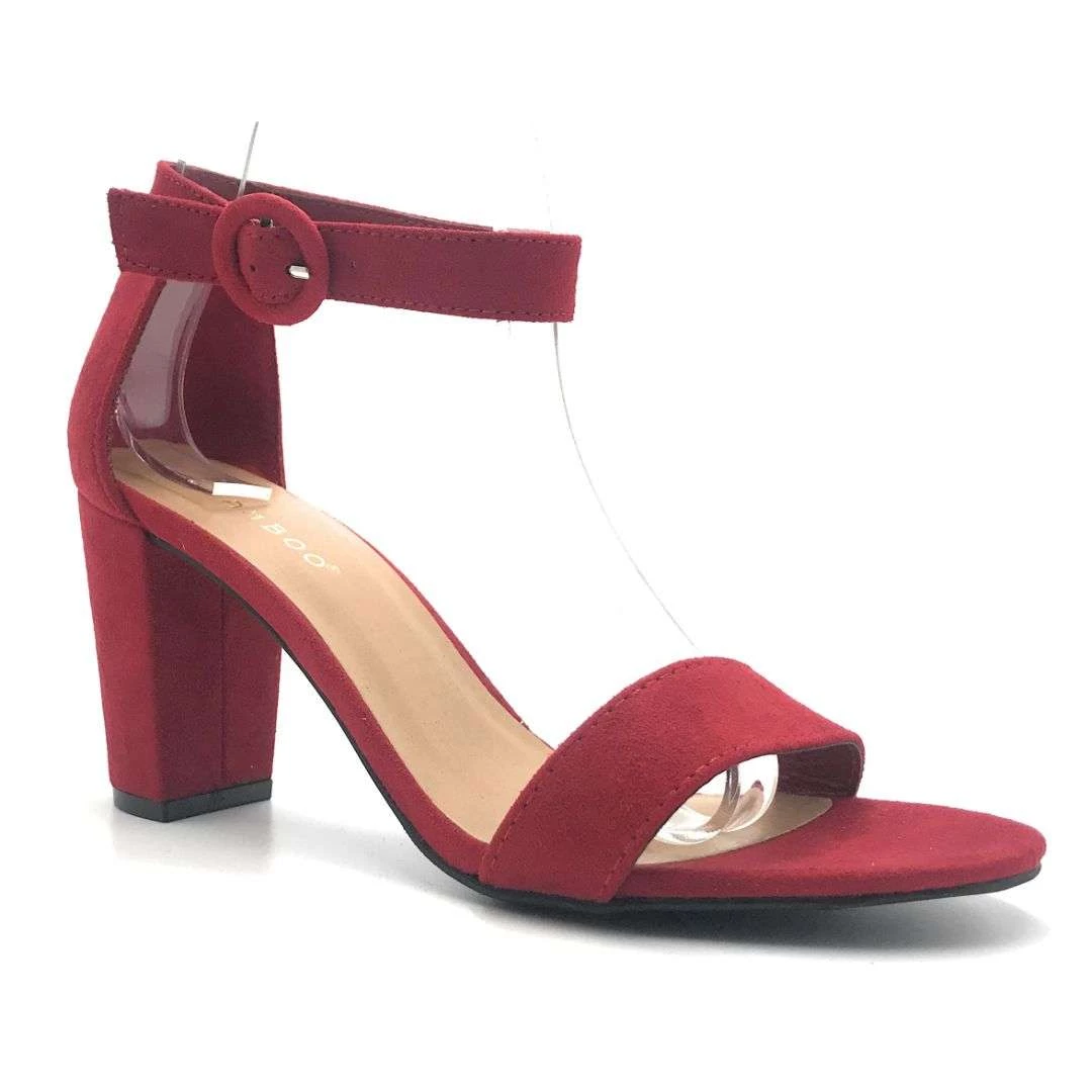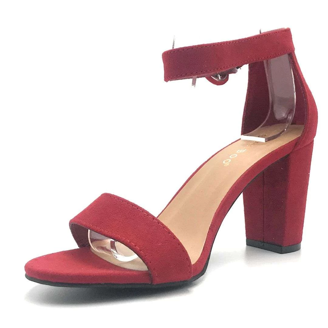 Bamboo Women’s Single Band Open Toe Chunky Heel Sandal round buckle Ankle Strap