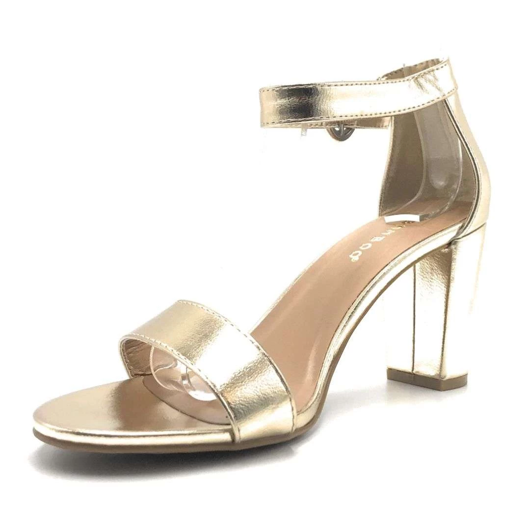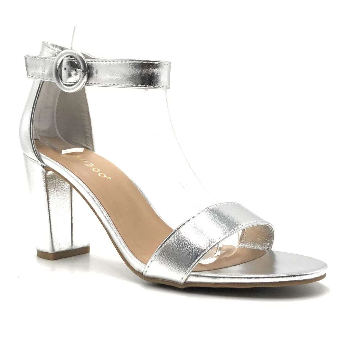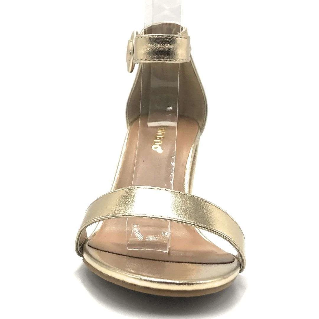 Bamboo Women’s Single Band Open Toe Chunky Heel Sandal round buckle Ankle Strap
