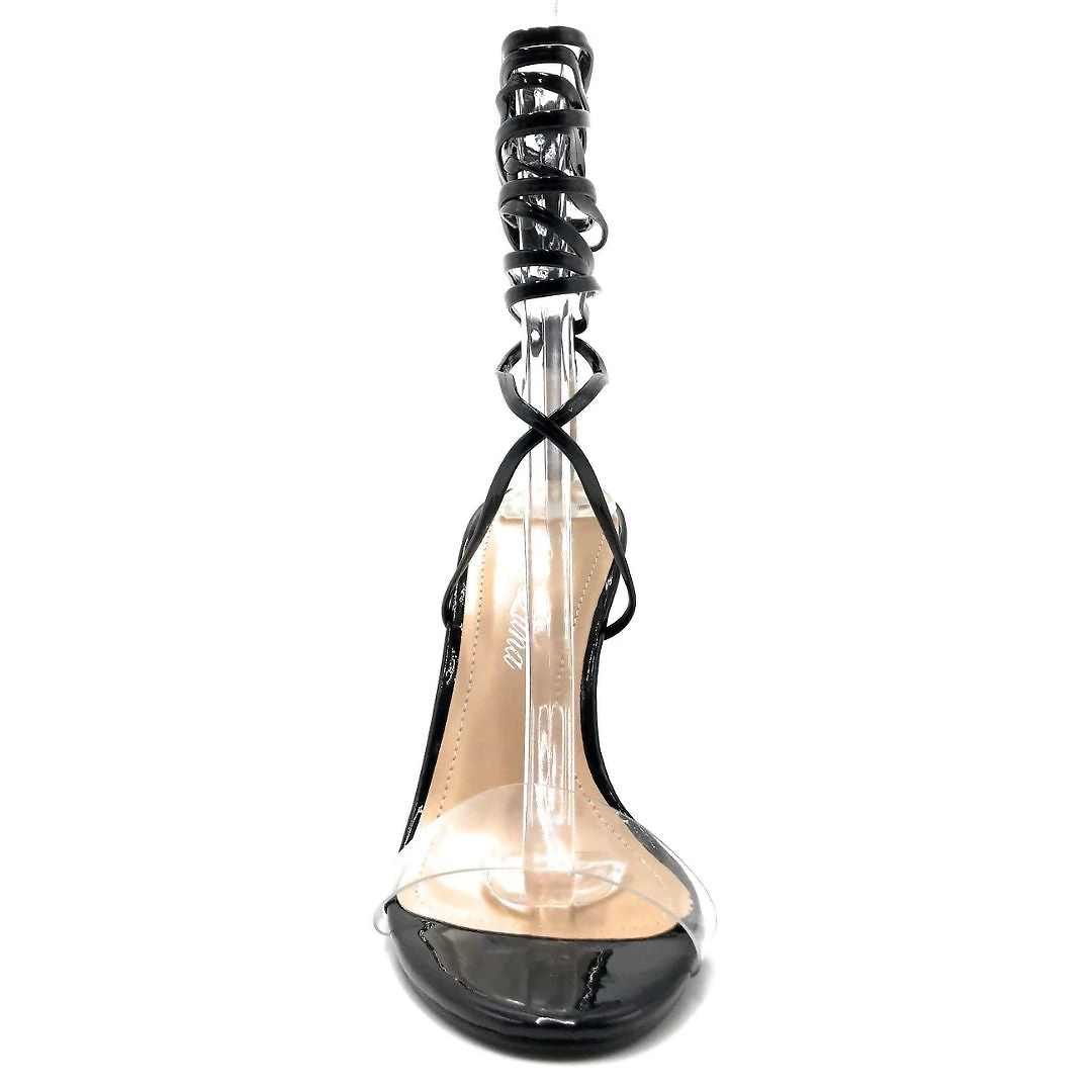Bella Luna Women’s Gladiator Ankle Strap Clear Lace up Chunky High Heel Strappy Sandals Shoe