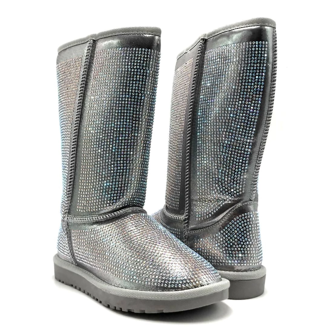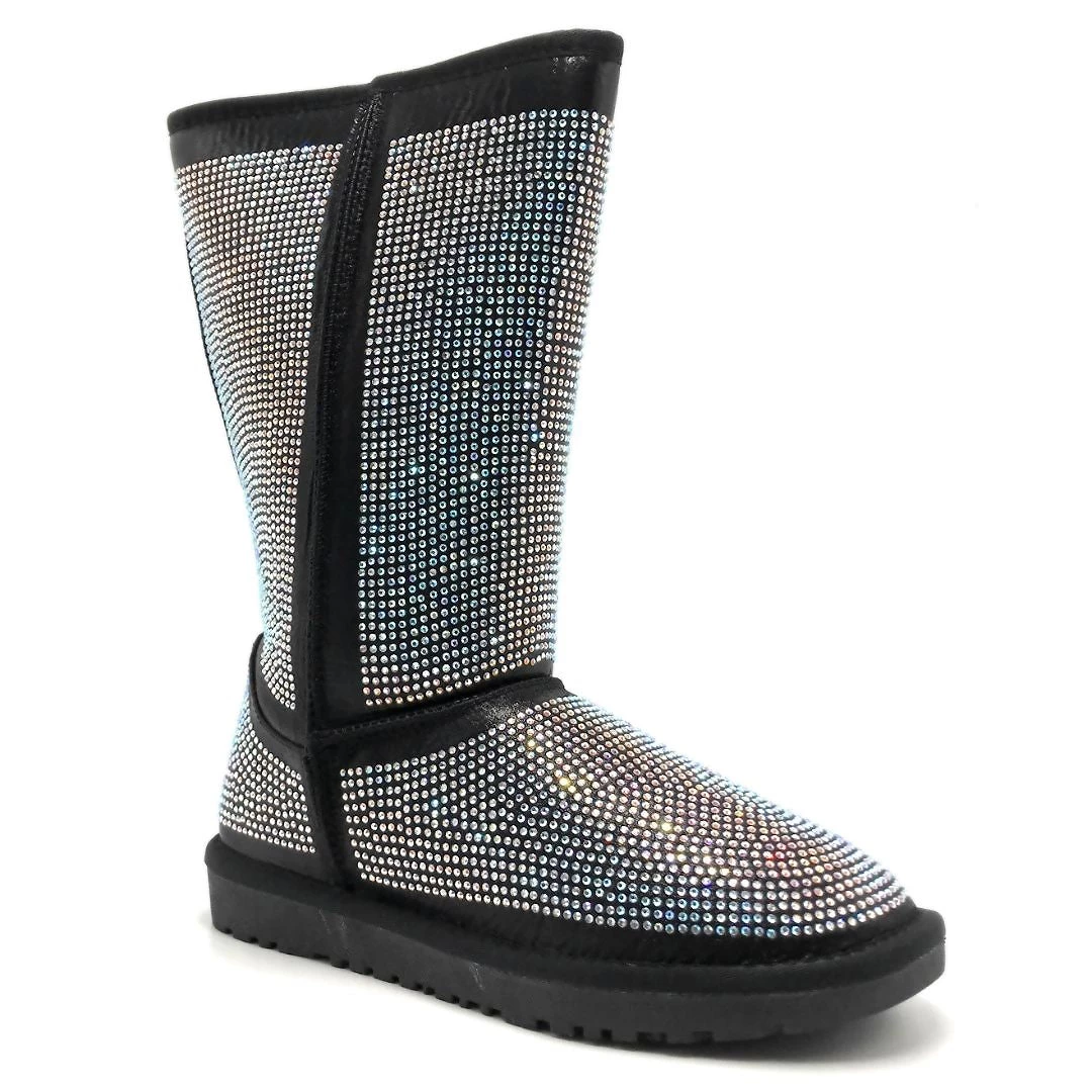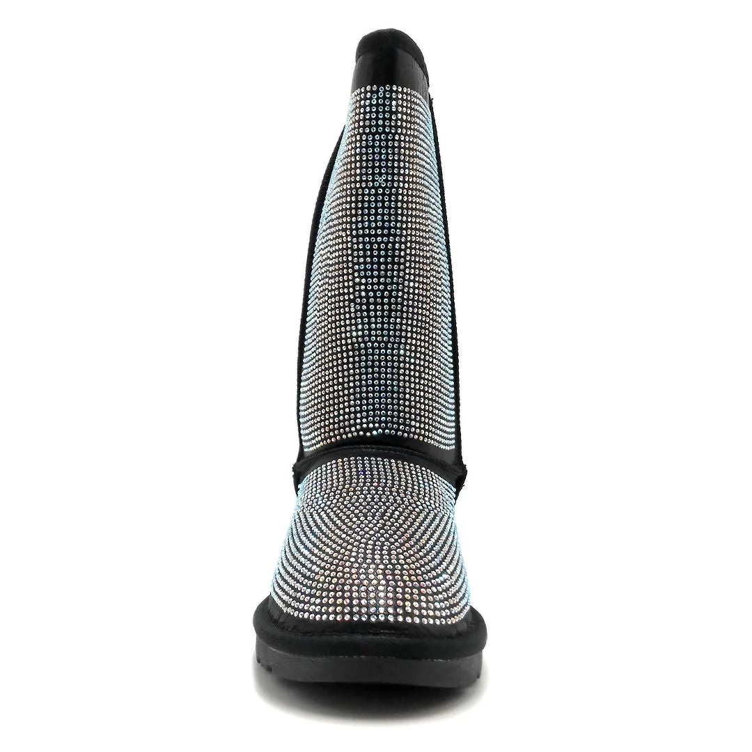 Pazzle Rhinestone Embellished Mid Calf Low Heel Round Toe Fashion Boots