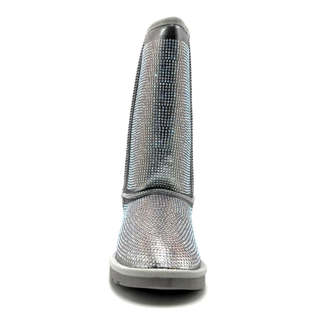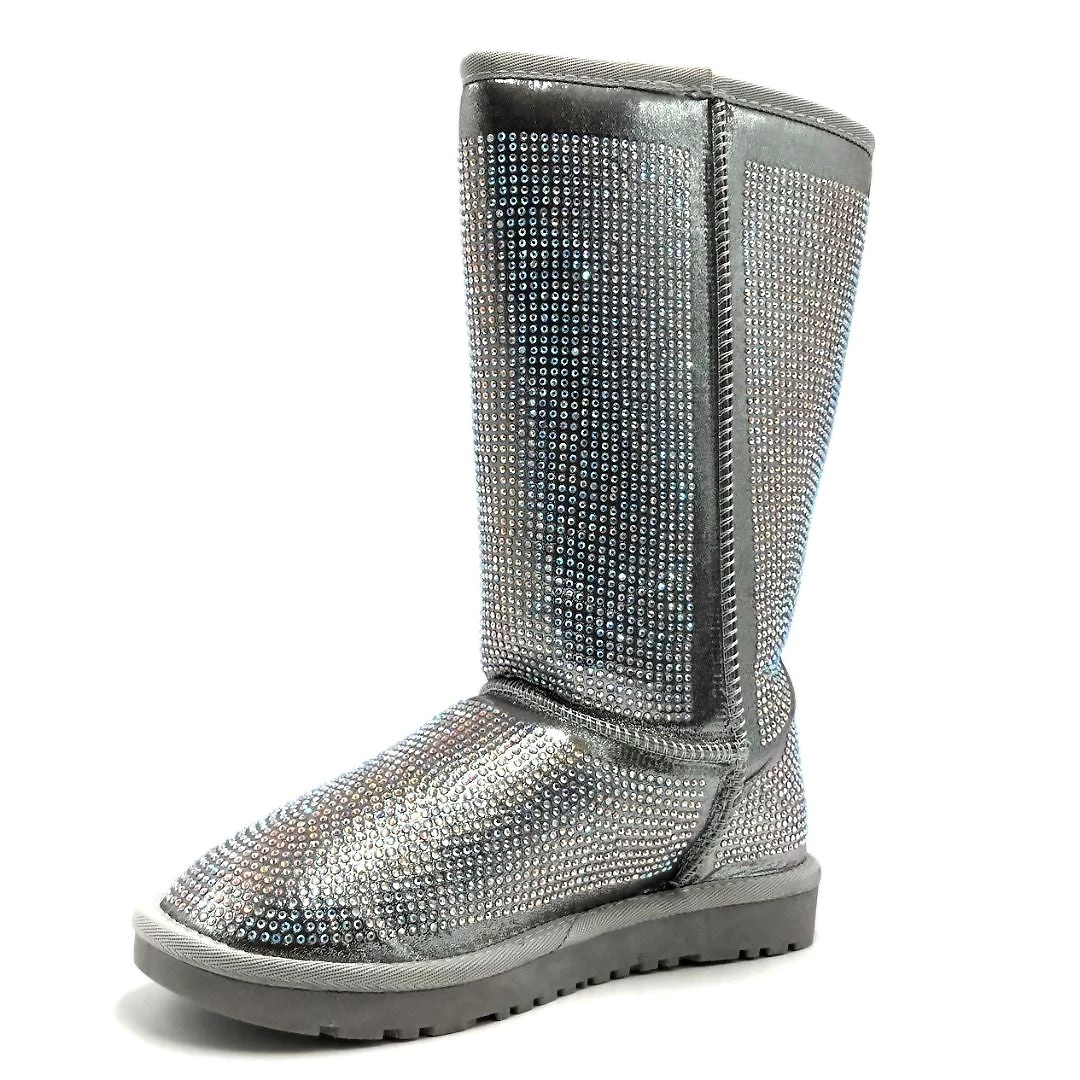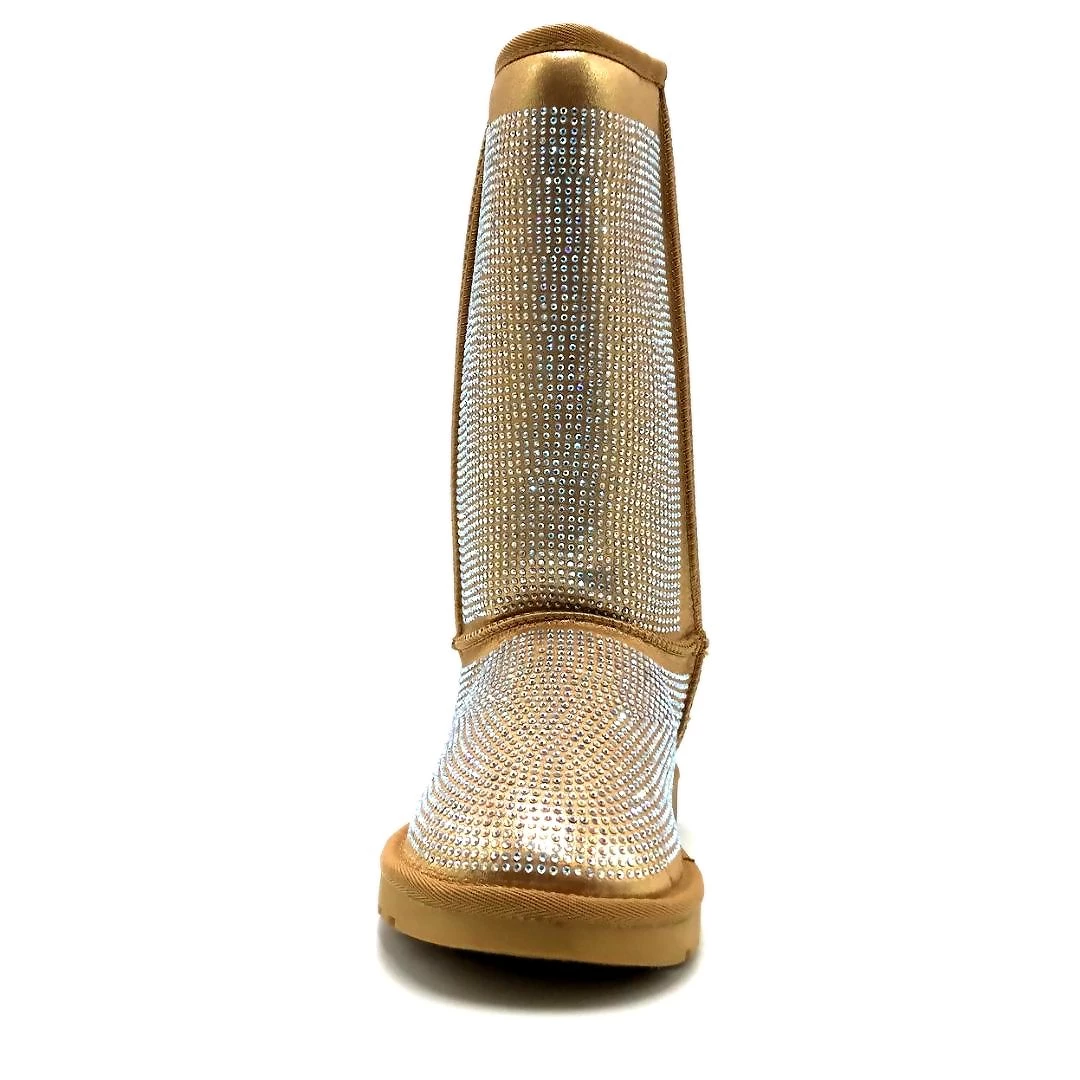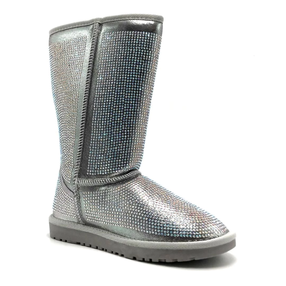 Pazzle Rhinestone Embellished Mid Calf Low Heel Round Toe Fashion Boots