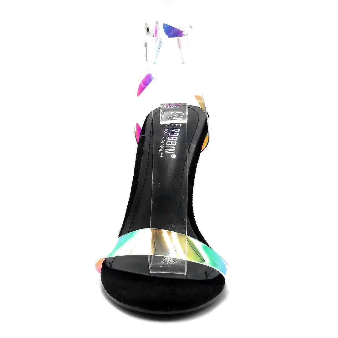 Cape Robbin Clear Chunky Block High Heels, Transparent Strappy Open Toe Shoes for Women