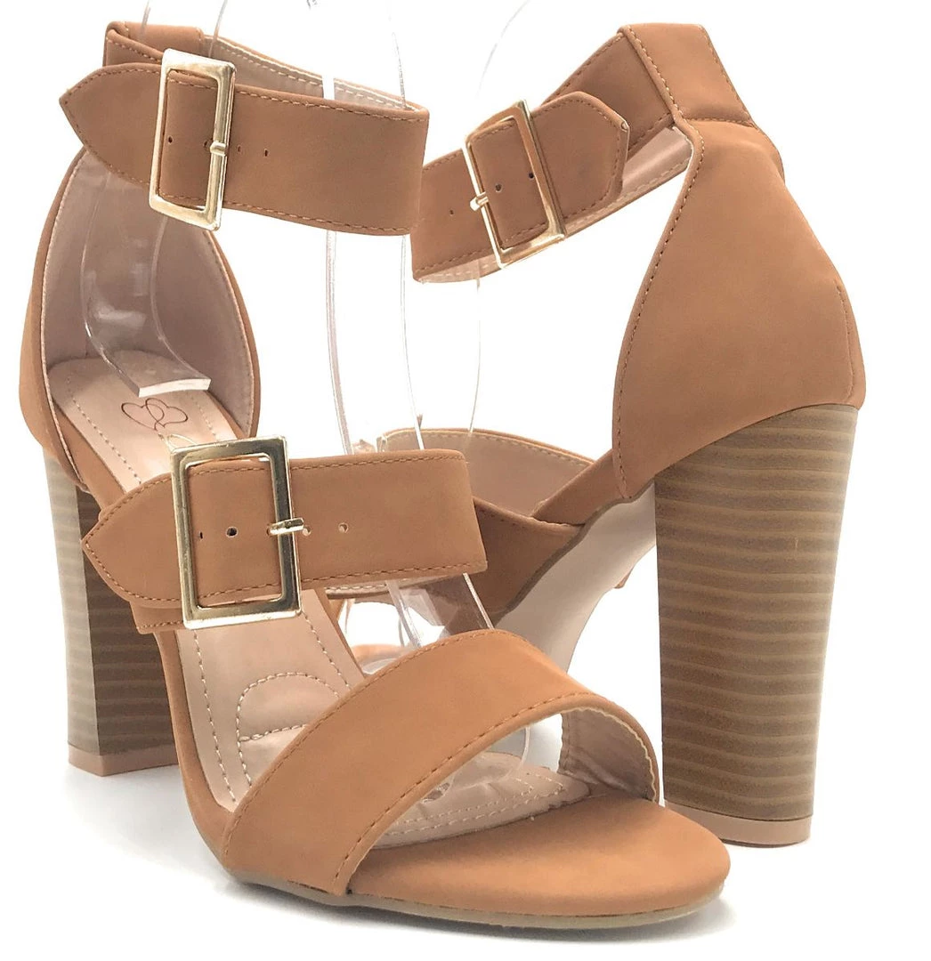 DbDk Chunky Block High Heel Adjustable Buckle Strap Closure Heeled Sandal Women’s Fashion Shoes~Shoe West~