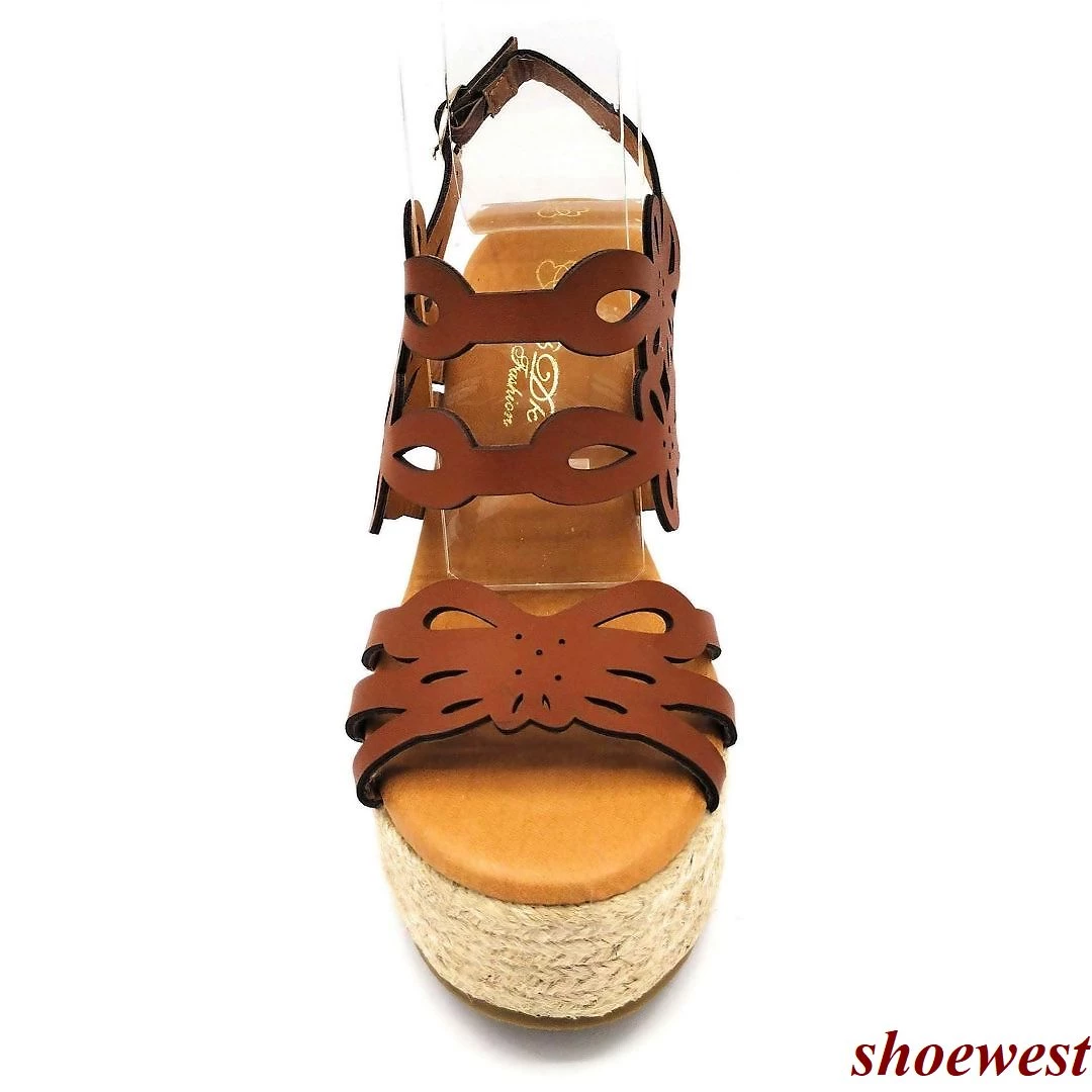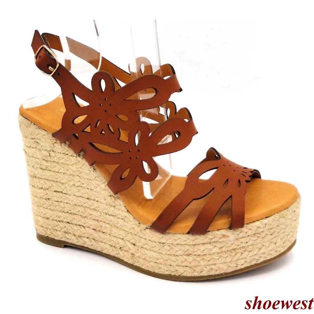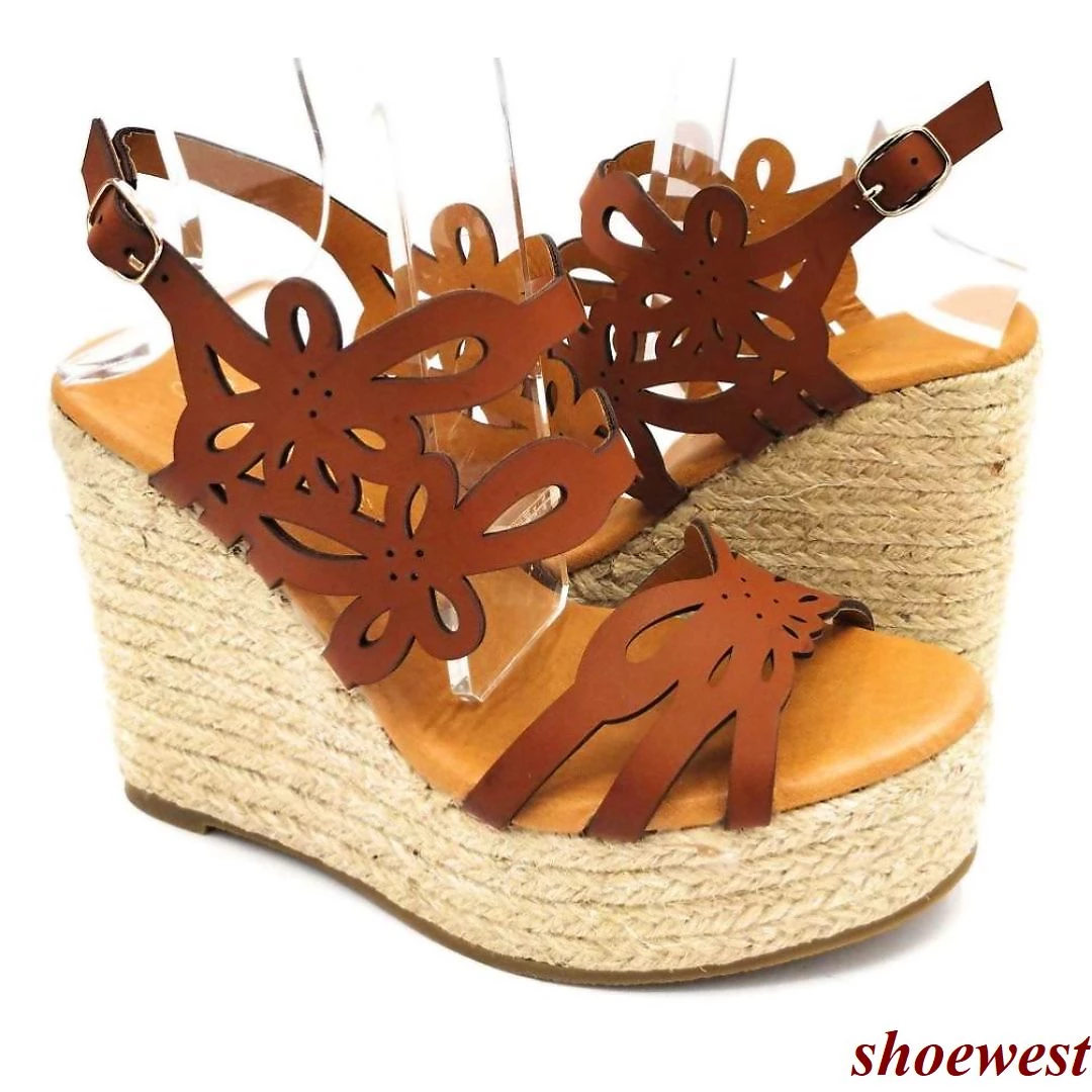 - Open Toe Espadrille Wedge Heel With Ankle Buckle Strap
