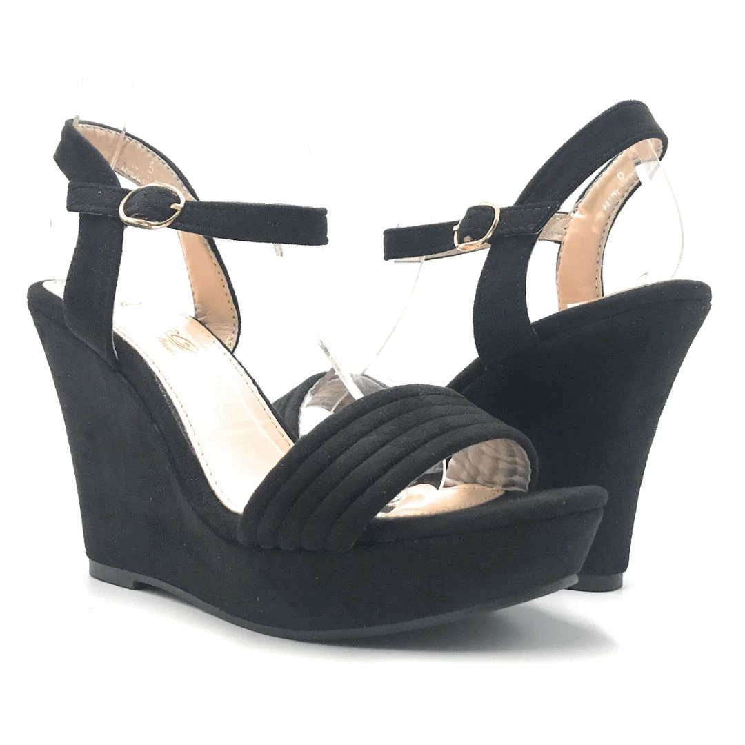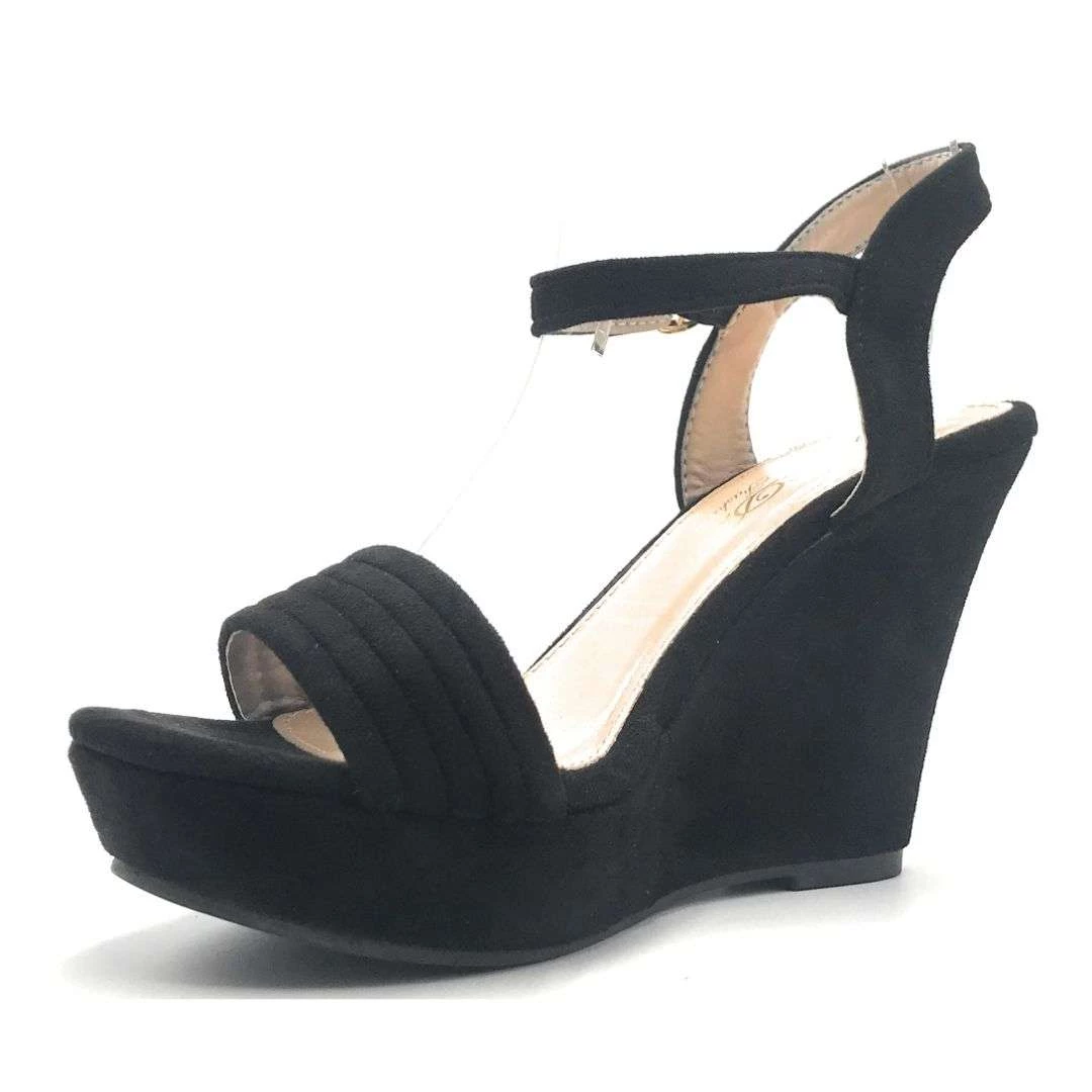 - Adjustable Buckle Ankle Strap Suede Material Wedge