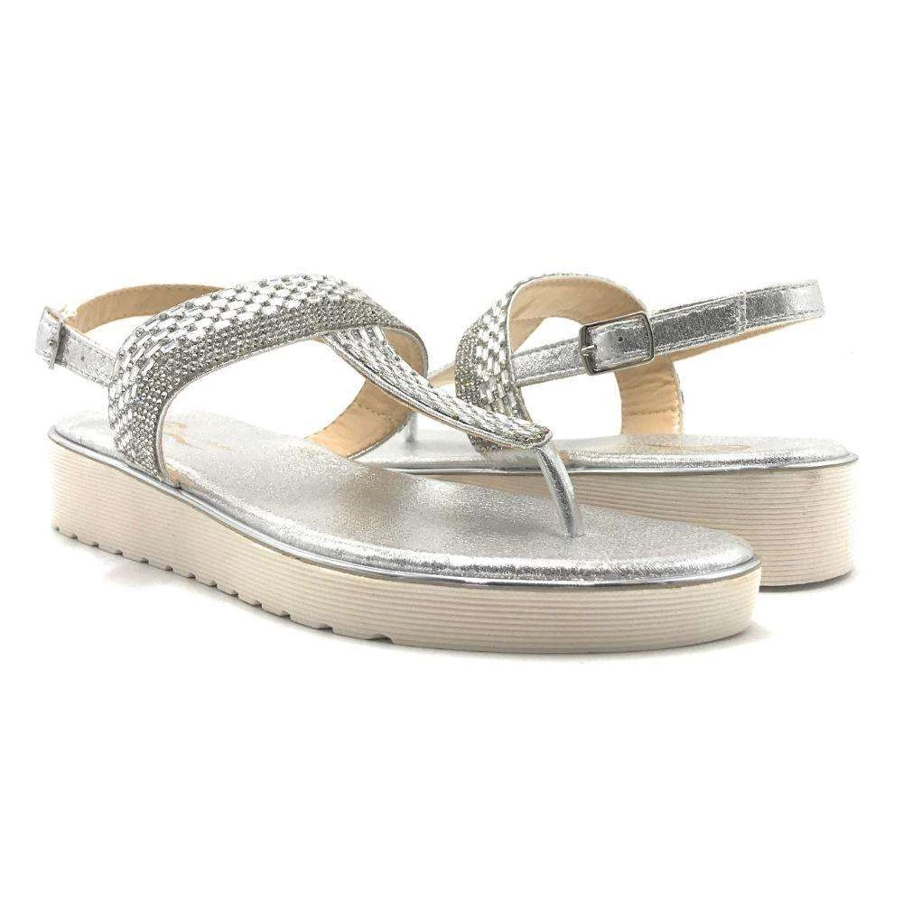 Elegant Collection White Platform Open Toe Low Heel Rhinestone Glittery Thong Buckle Strap Comfortable All Day Sandal