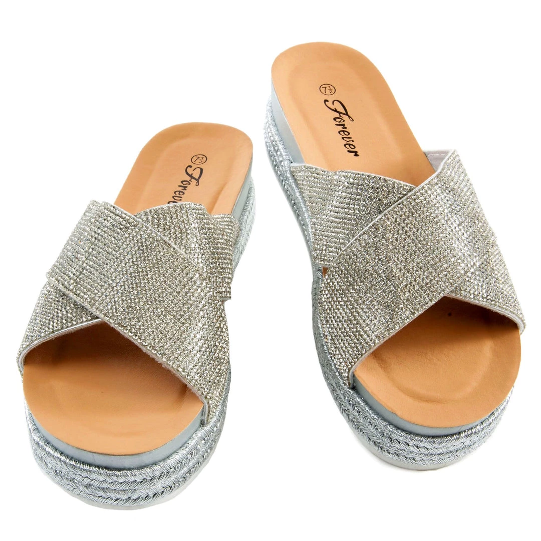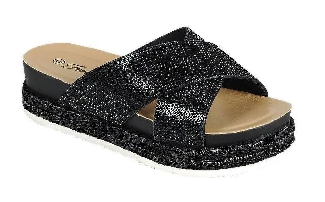 - Flat Wedge X-Cross Slide Rhinestones And Rope Detail