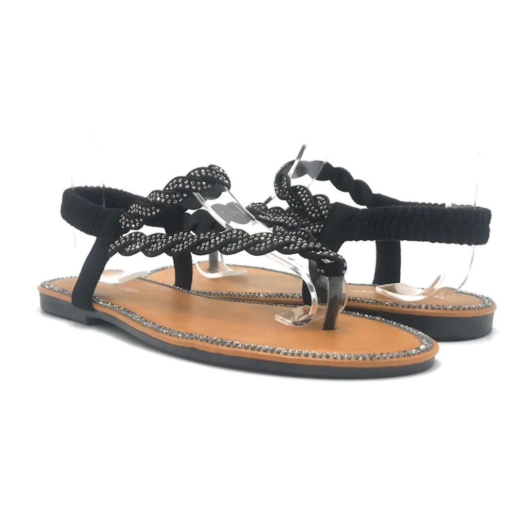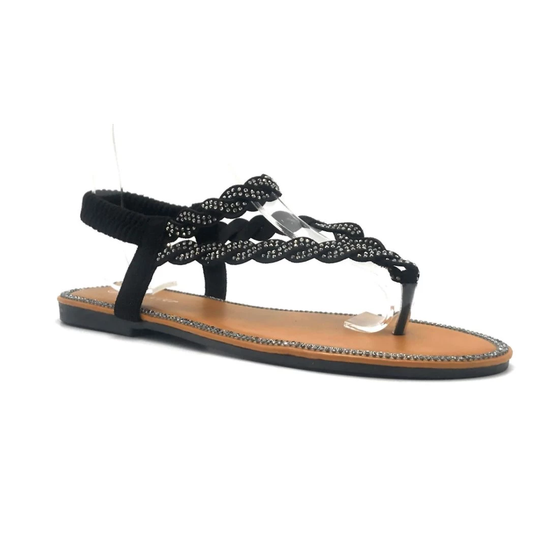 Forever Link Braided Straps Covered With Rhine Stones And Stretchable Band Sandals