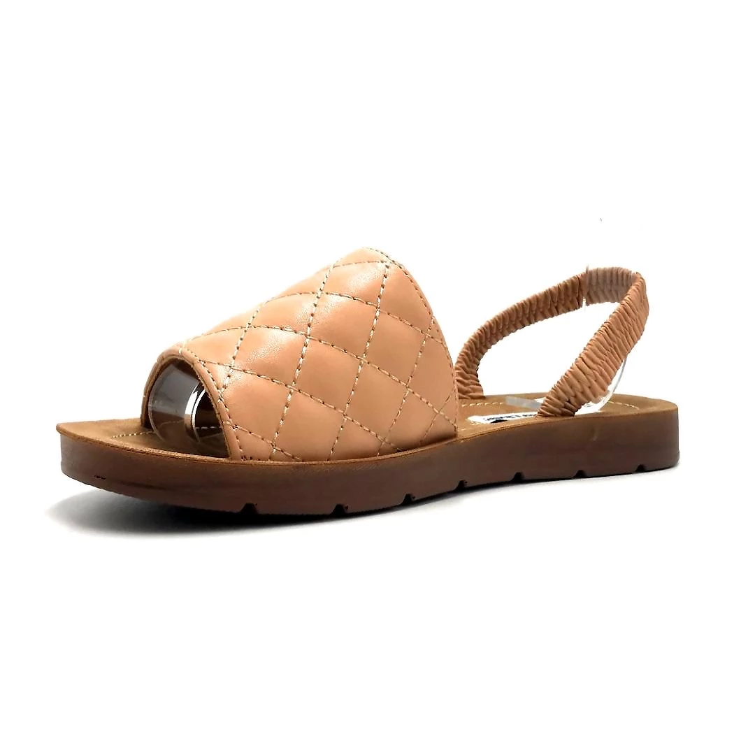 Forever Link Woven Pattern Open Toe Elastic Strap Flat Sandal