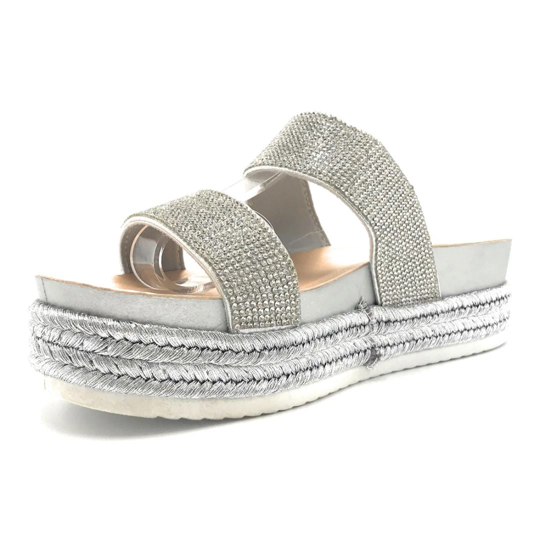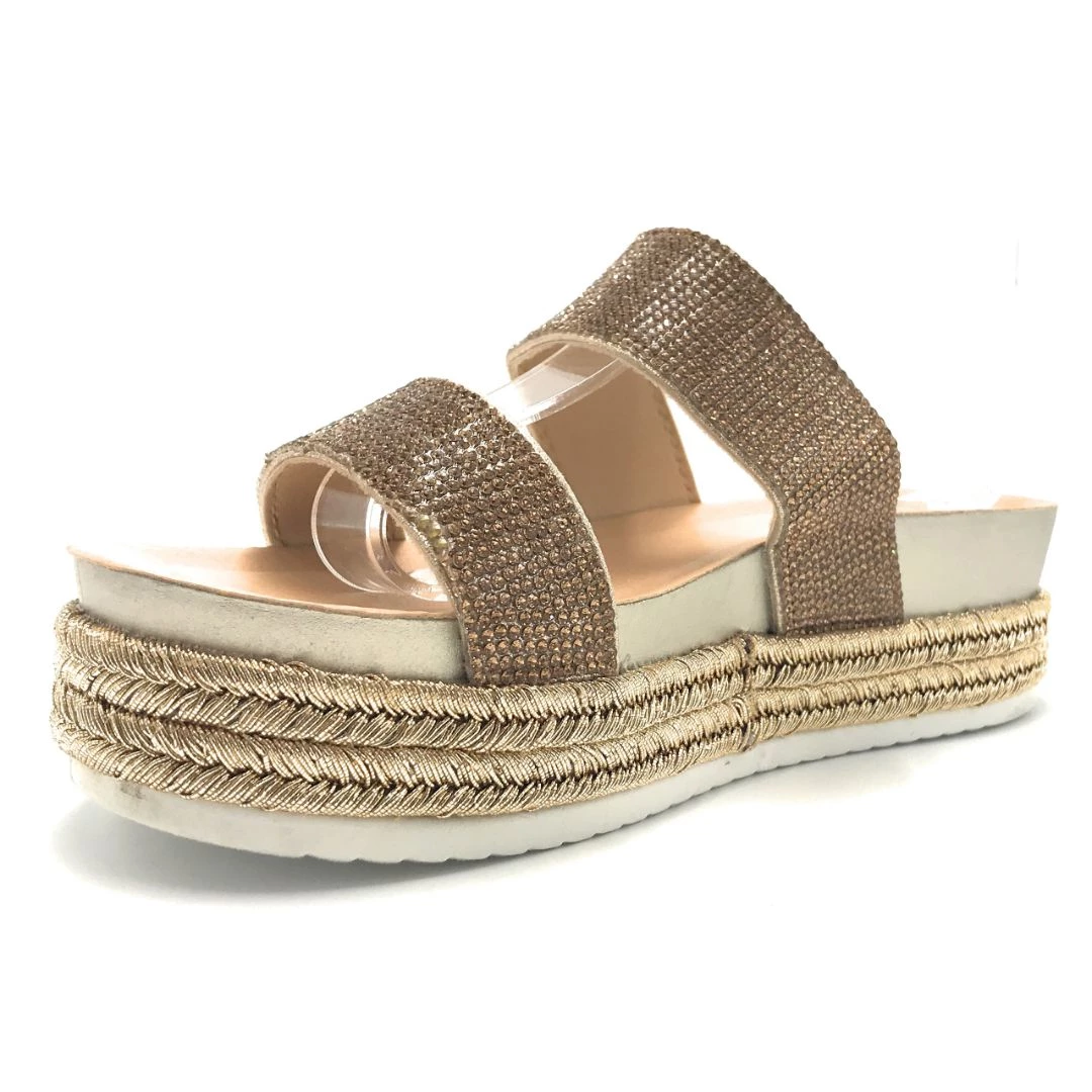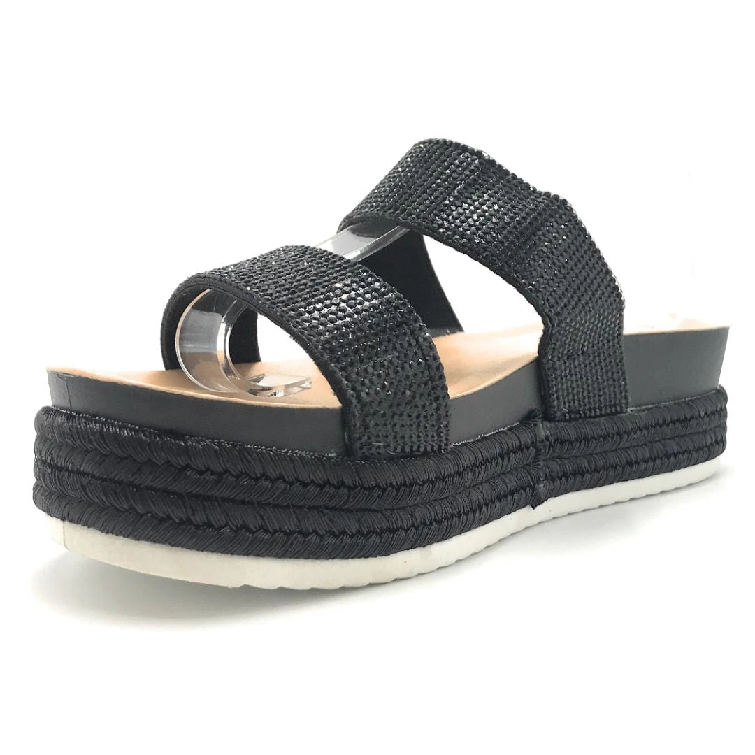 Forever Soft Bottom Open Flat Sandals Slip On Cushioned Platform Super Comfortable Rhinestone Women’s Shoes