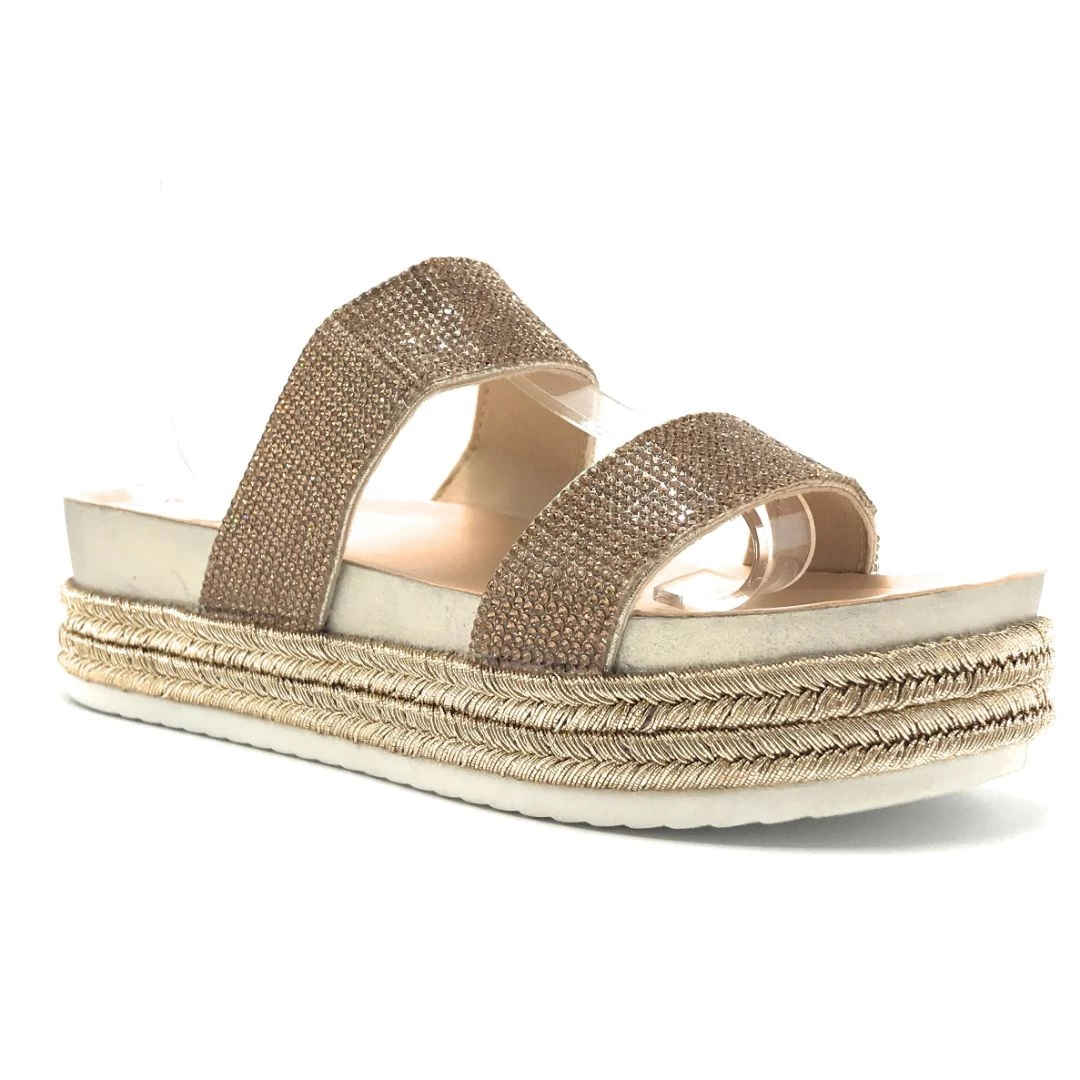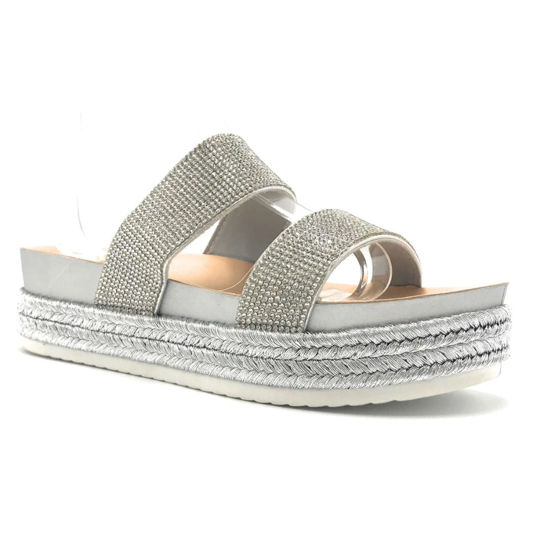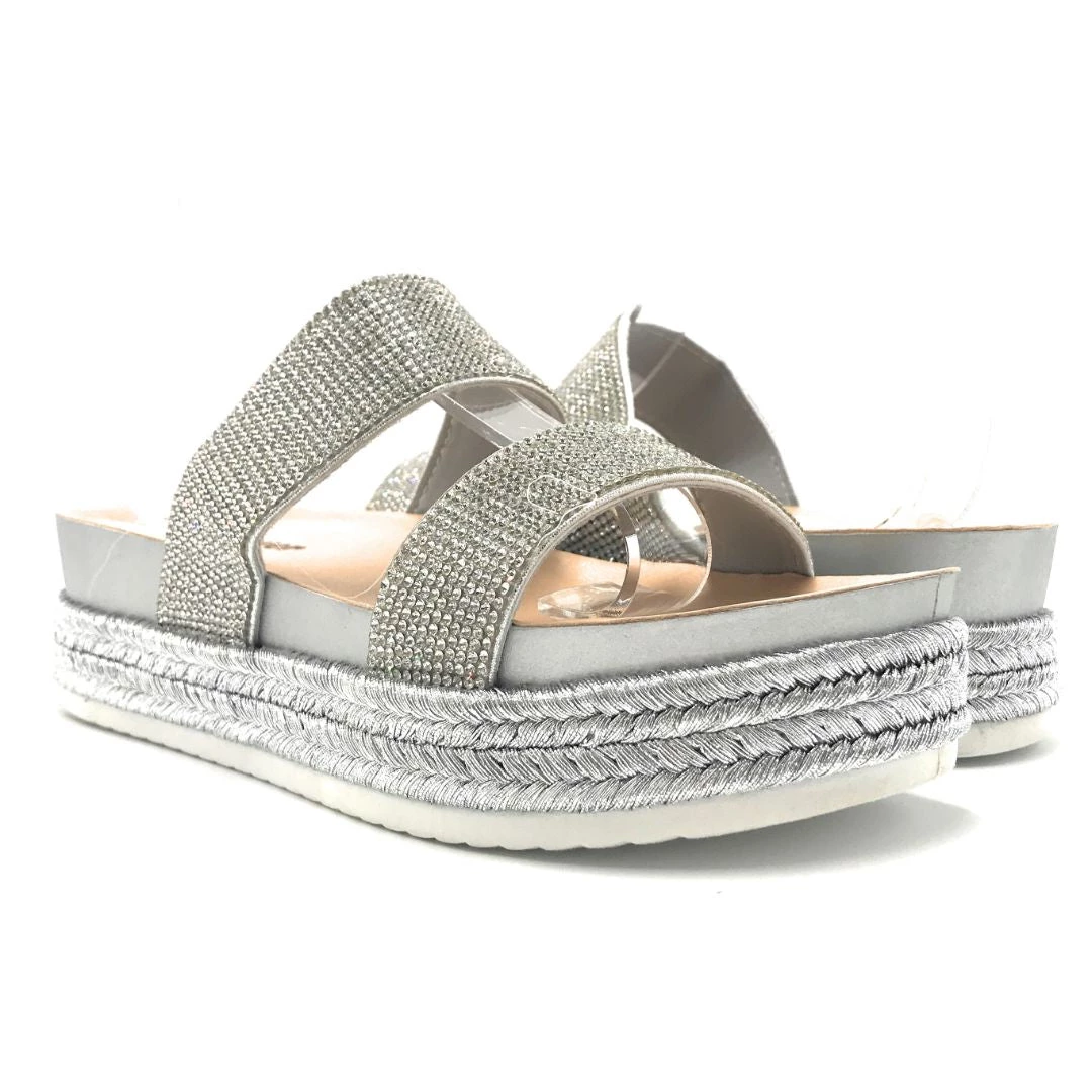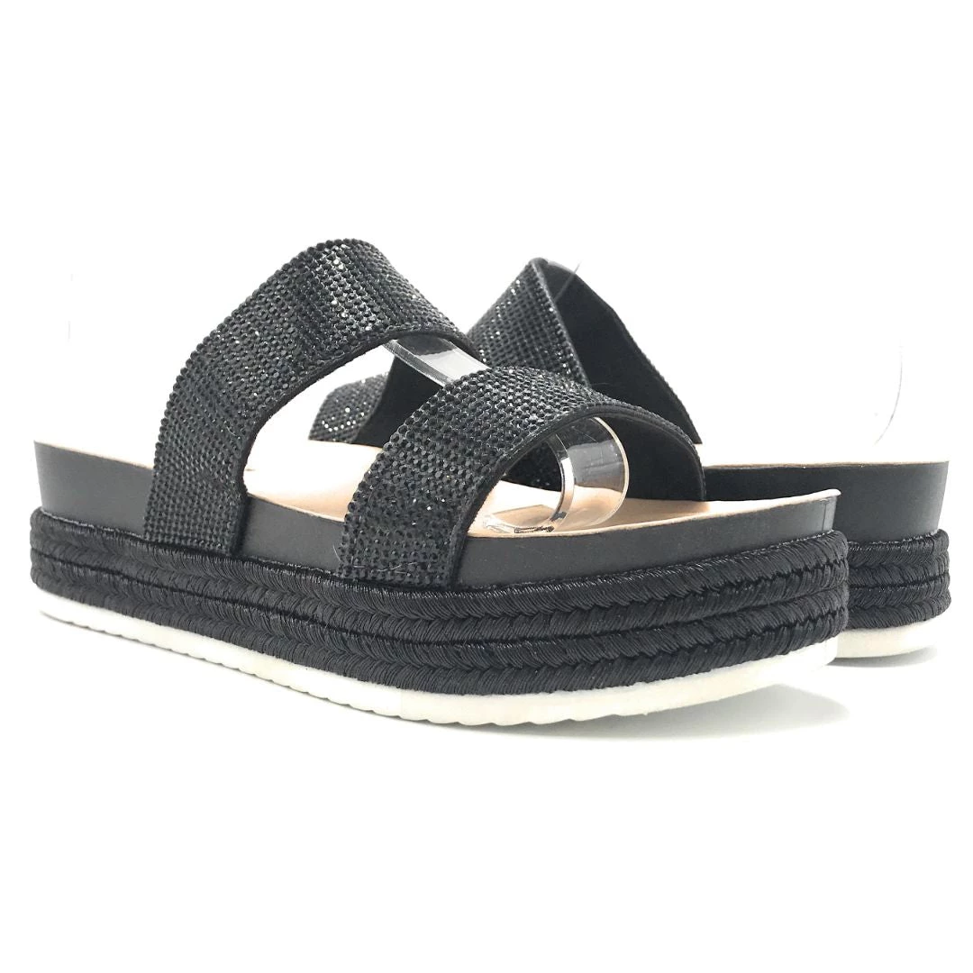 Forever Soft Bottom Open Flat Sandals Slip On Cushioned Platform Super Comfortable Rhinestone Women’s Shoes