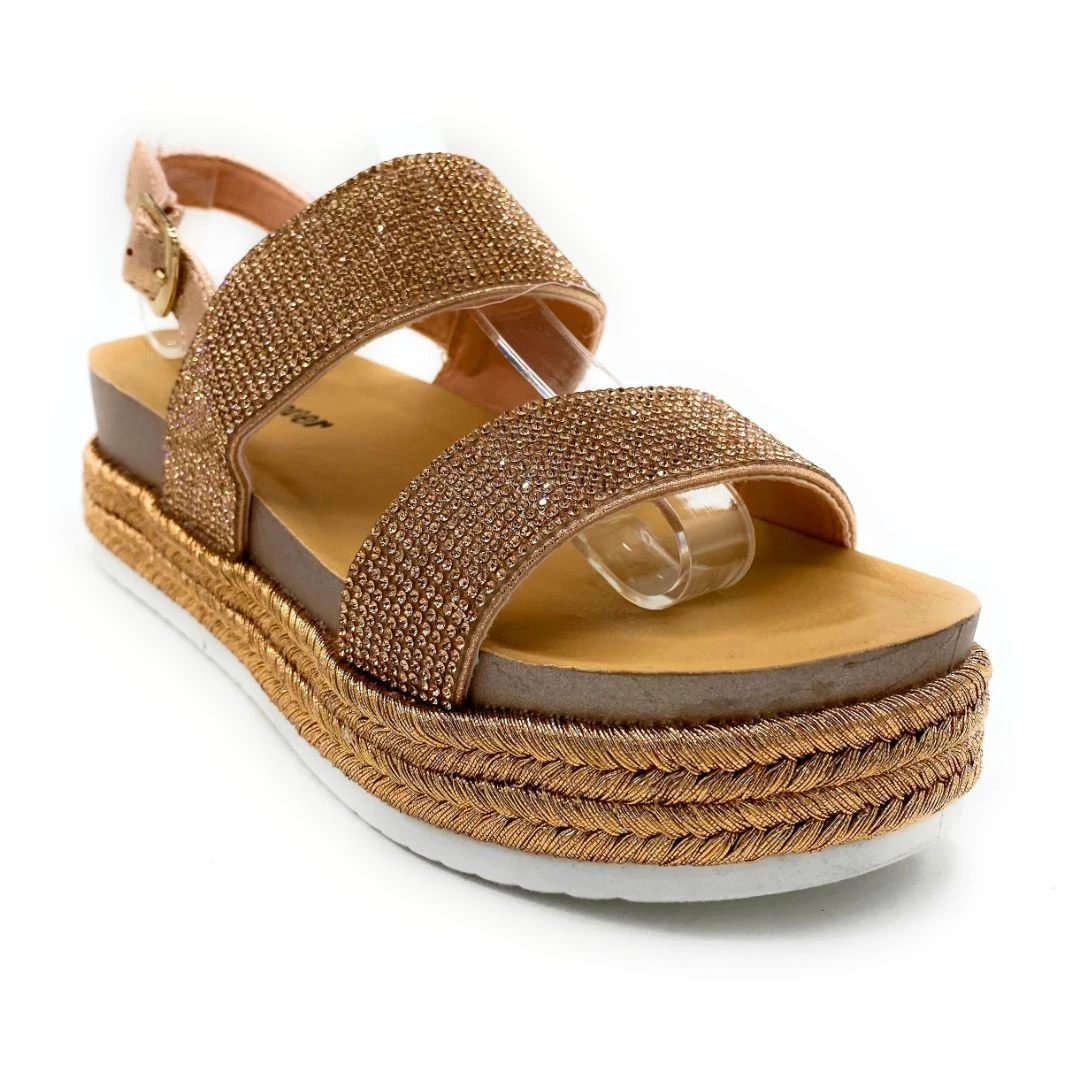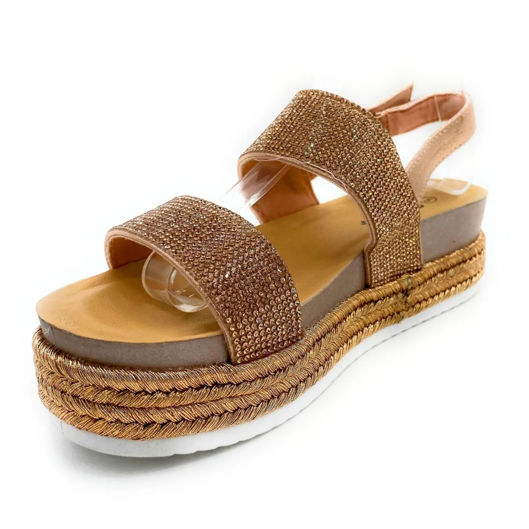 Forever Soft Bottom Open Toe Wedge Ankle Strap Cushioned Platform Super Comfortable Rhinestone Women’s Shoes