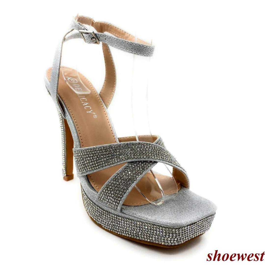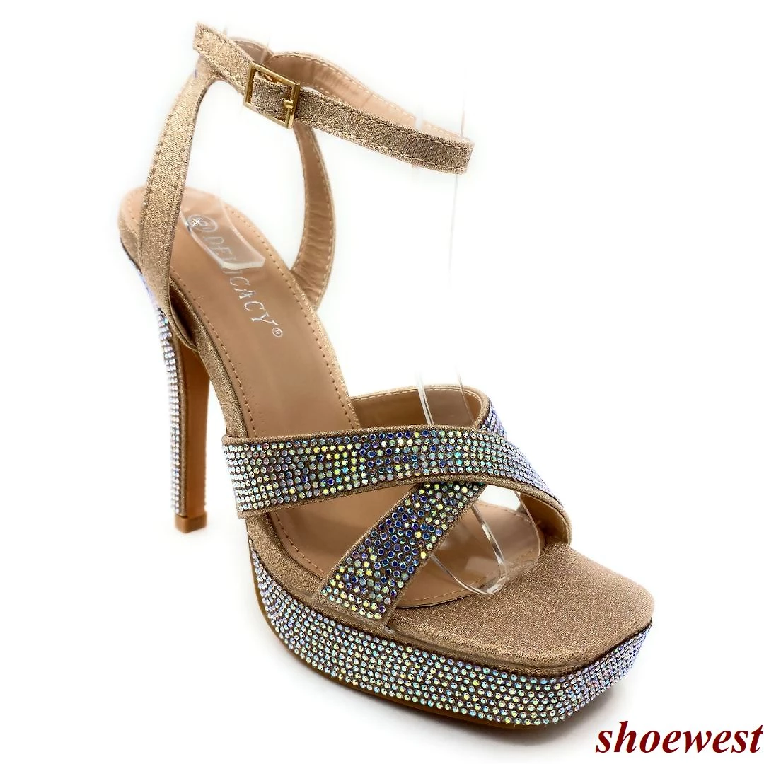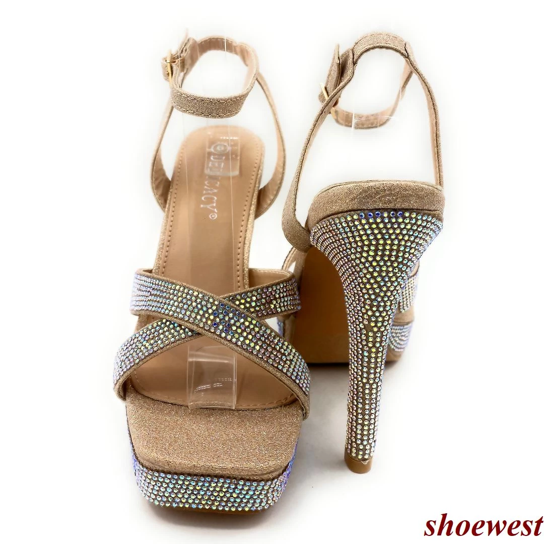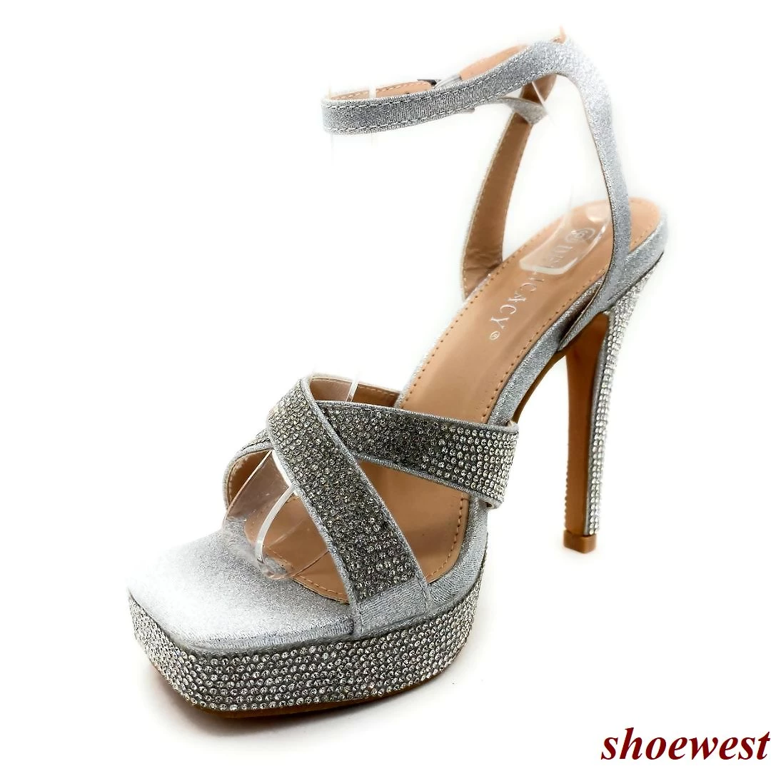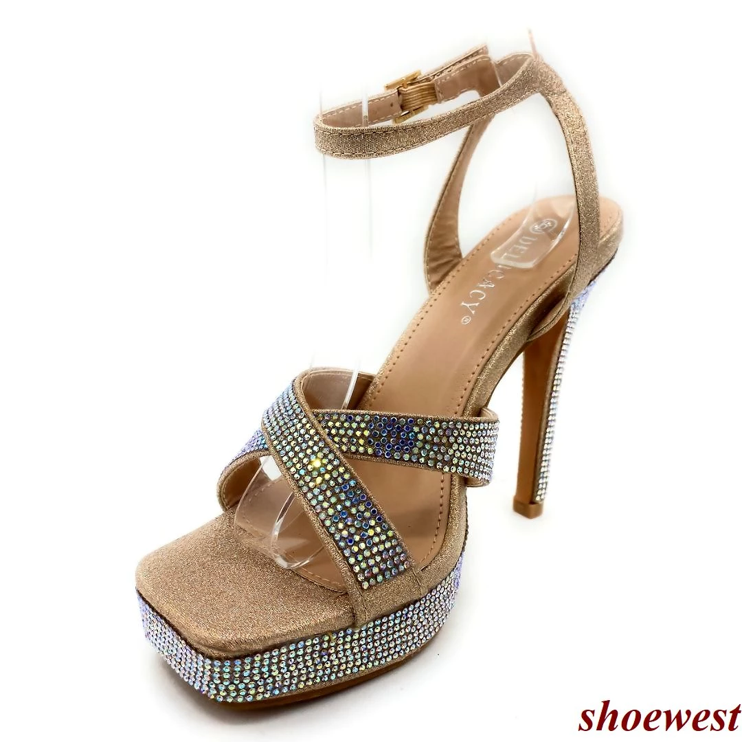 Forever Link Thick Platform Rhinestone cross strap Square Toe Stiletto