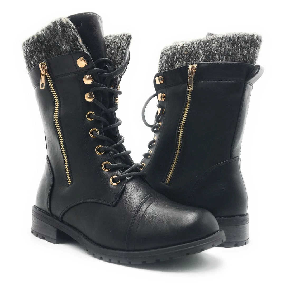 Forever Link Medium Riding Boot lace style side zipper with Soft Faux Elastic for Snug Fit Women