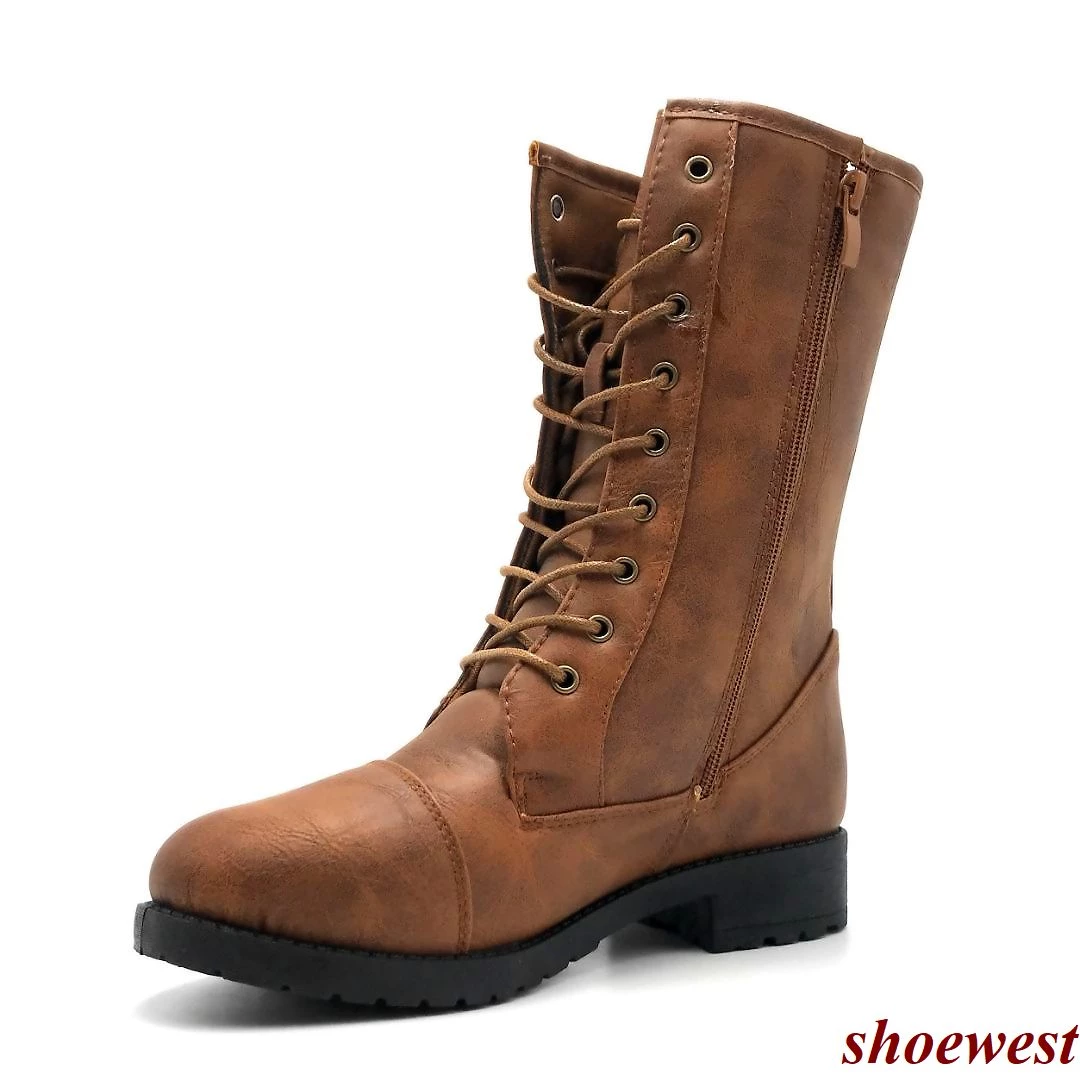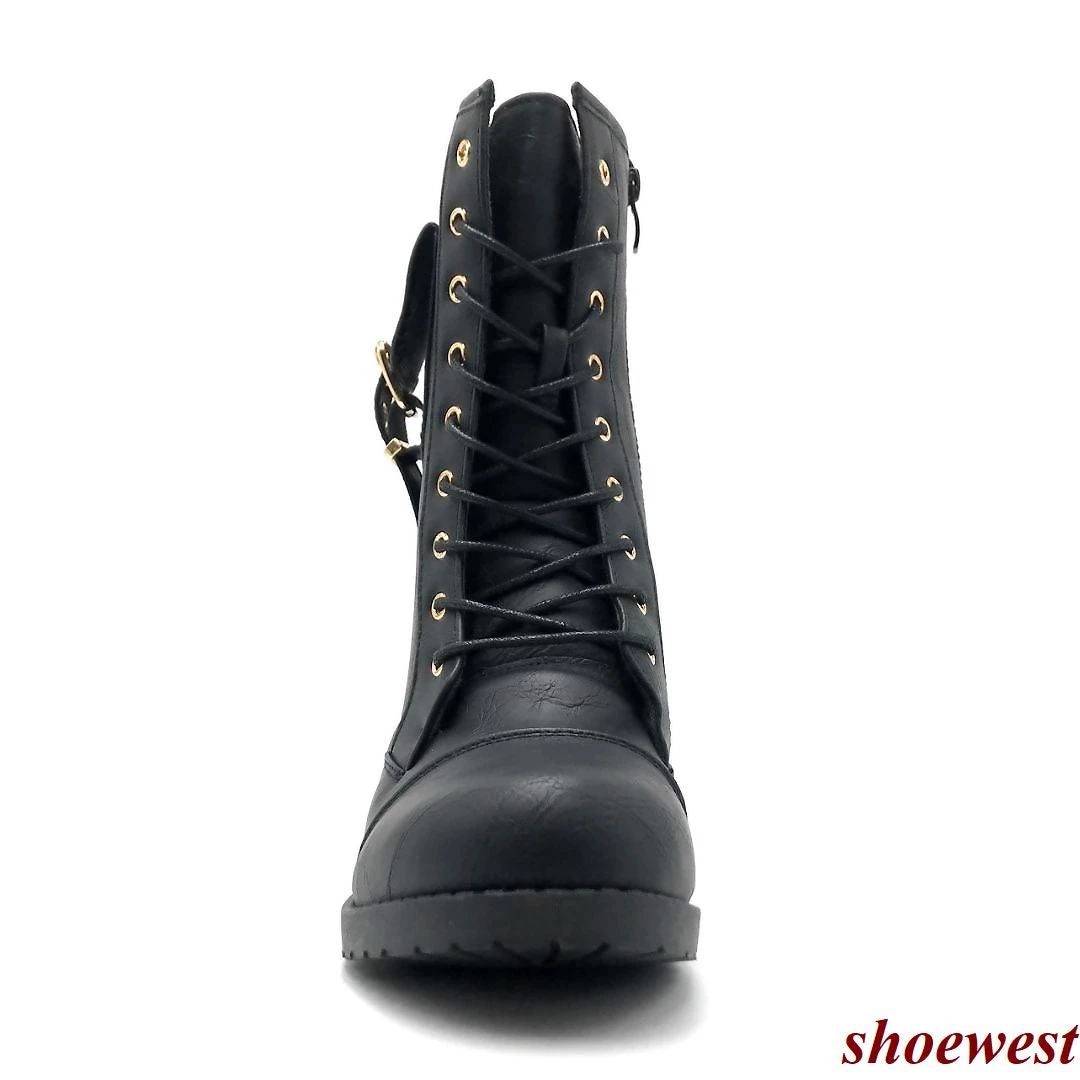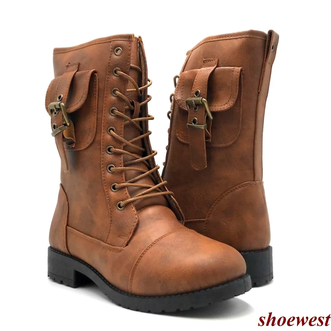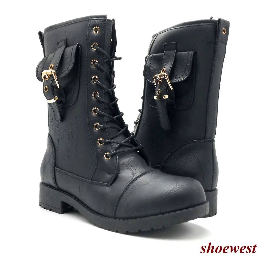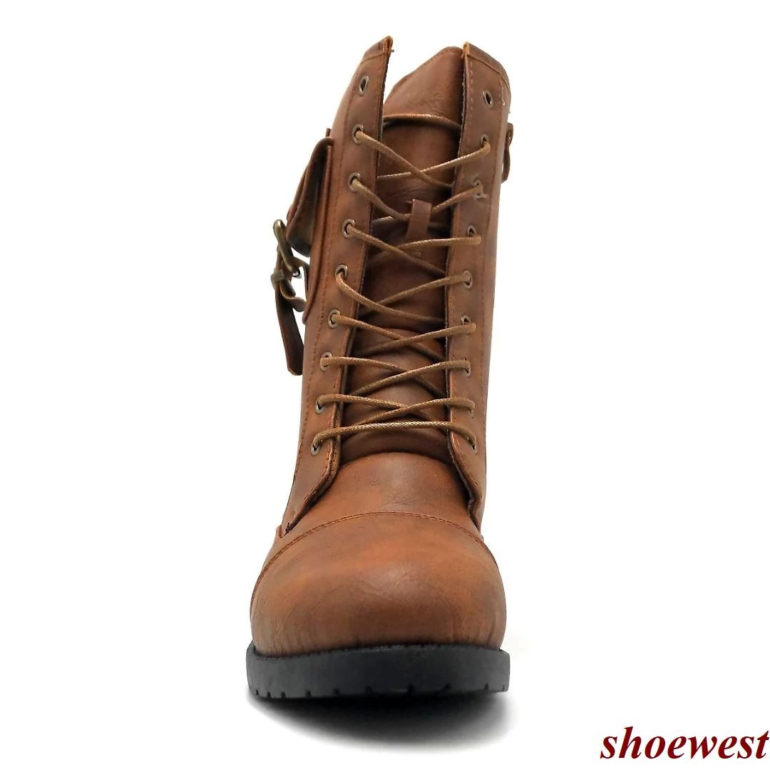 - These Boots Features a Round Toe, Lace-up & Side Zipper Closure, Pocket With Buckle Closure Detailed.