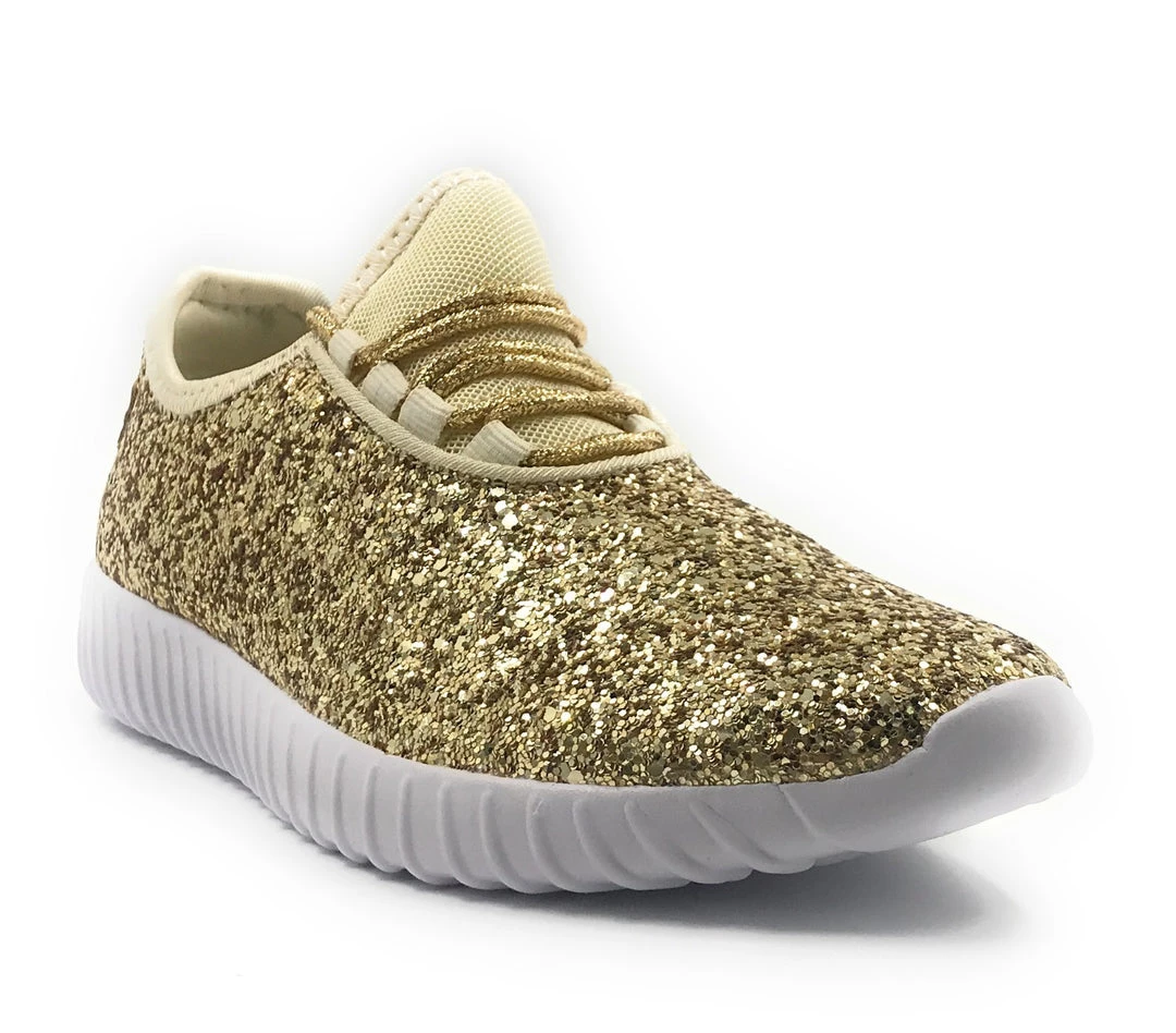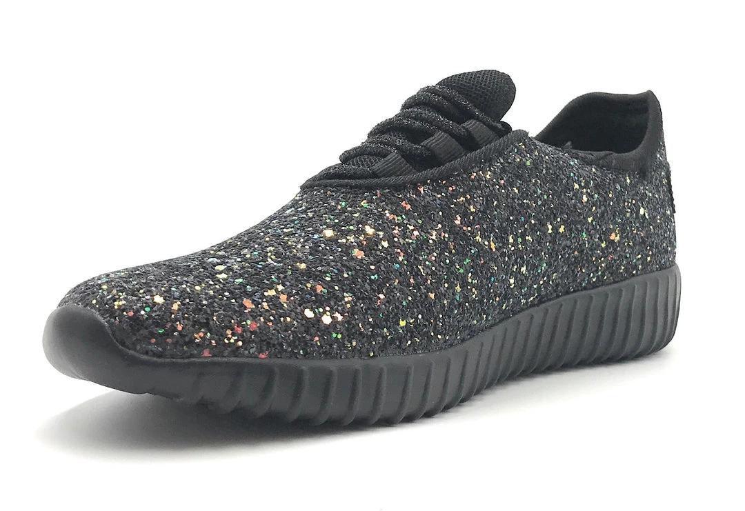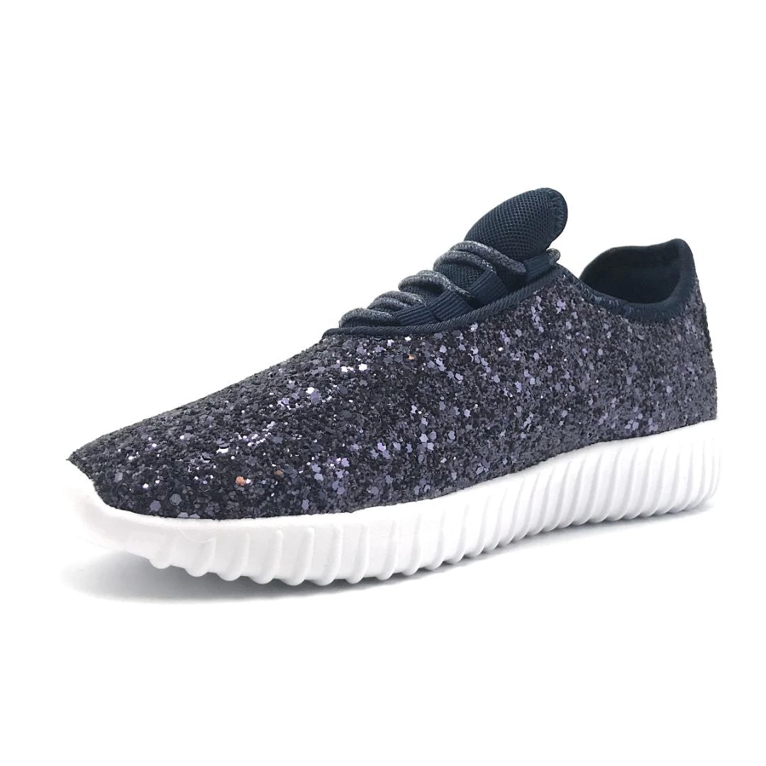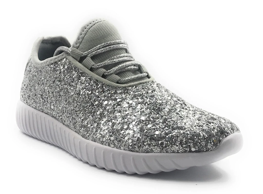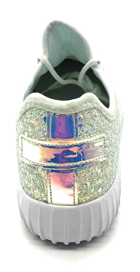 Forever Link Women Fashion Light Weight Glitter Metallic Leatherette Quilted Lace up Low Top Stylish Sneaker