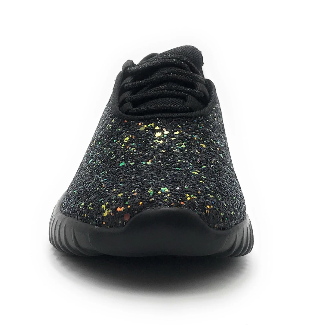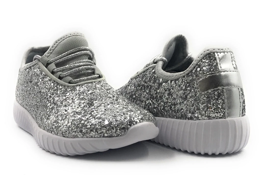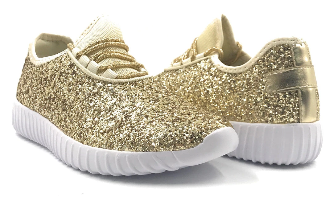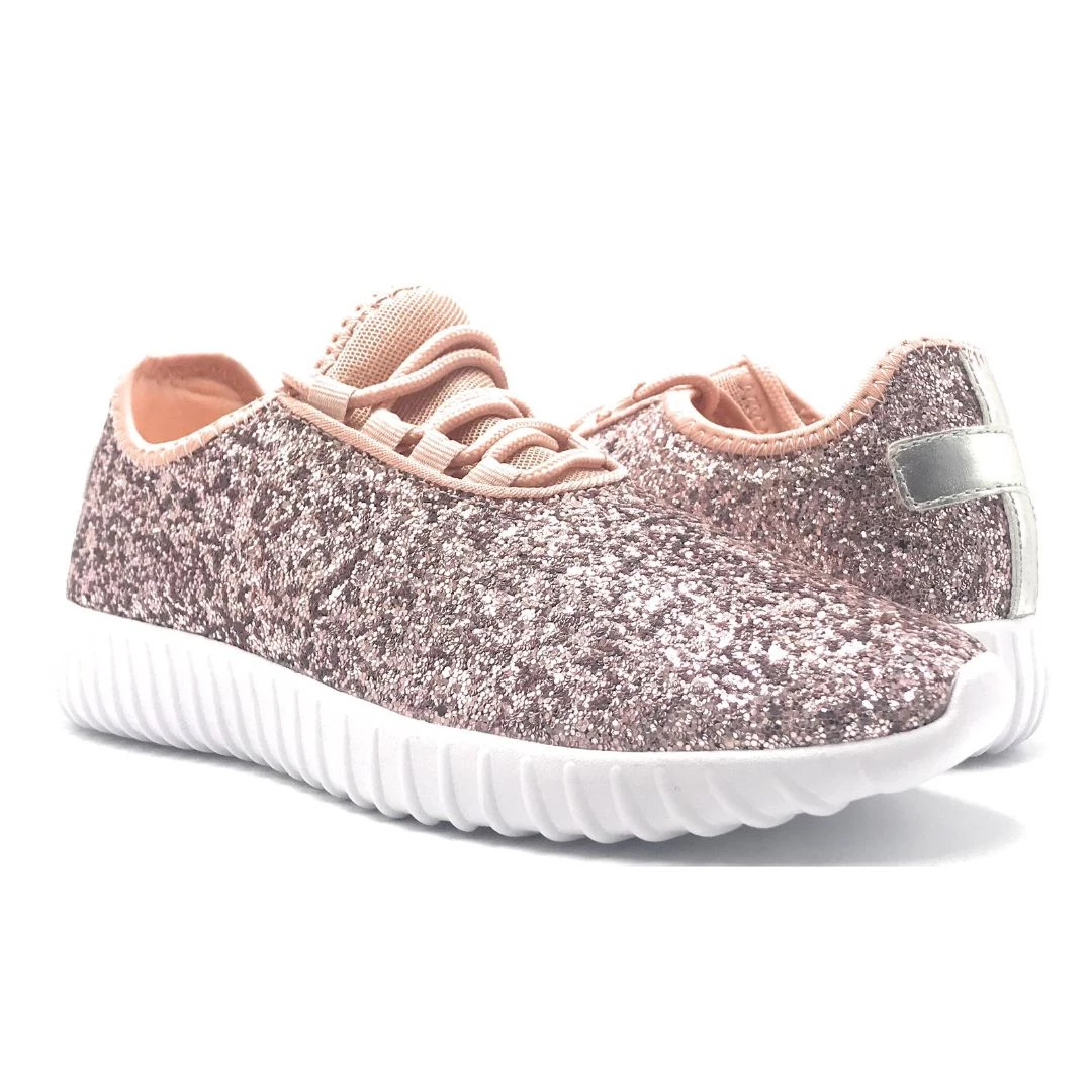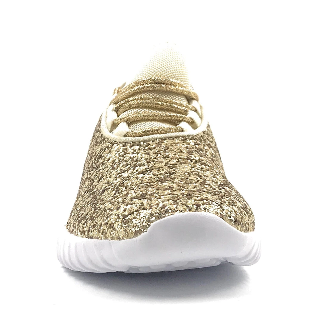 Forever Link Women Fashion Light Weight Glitter Metallic Leatherette Quilted Lace up Low Top Stylish Sneaker