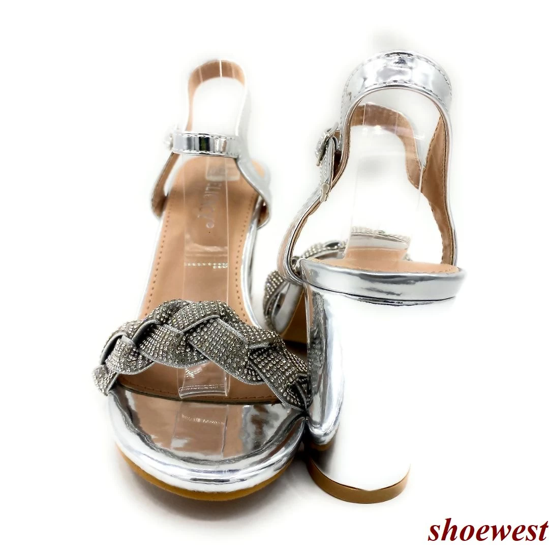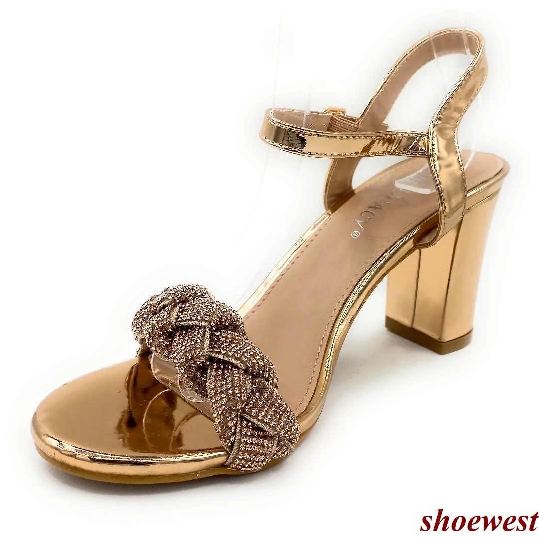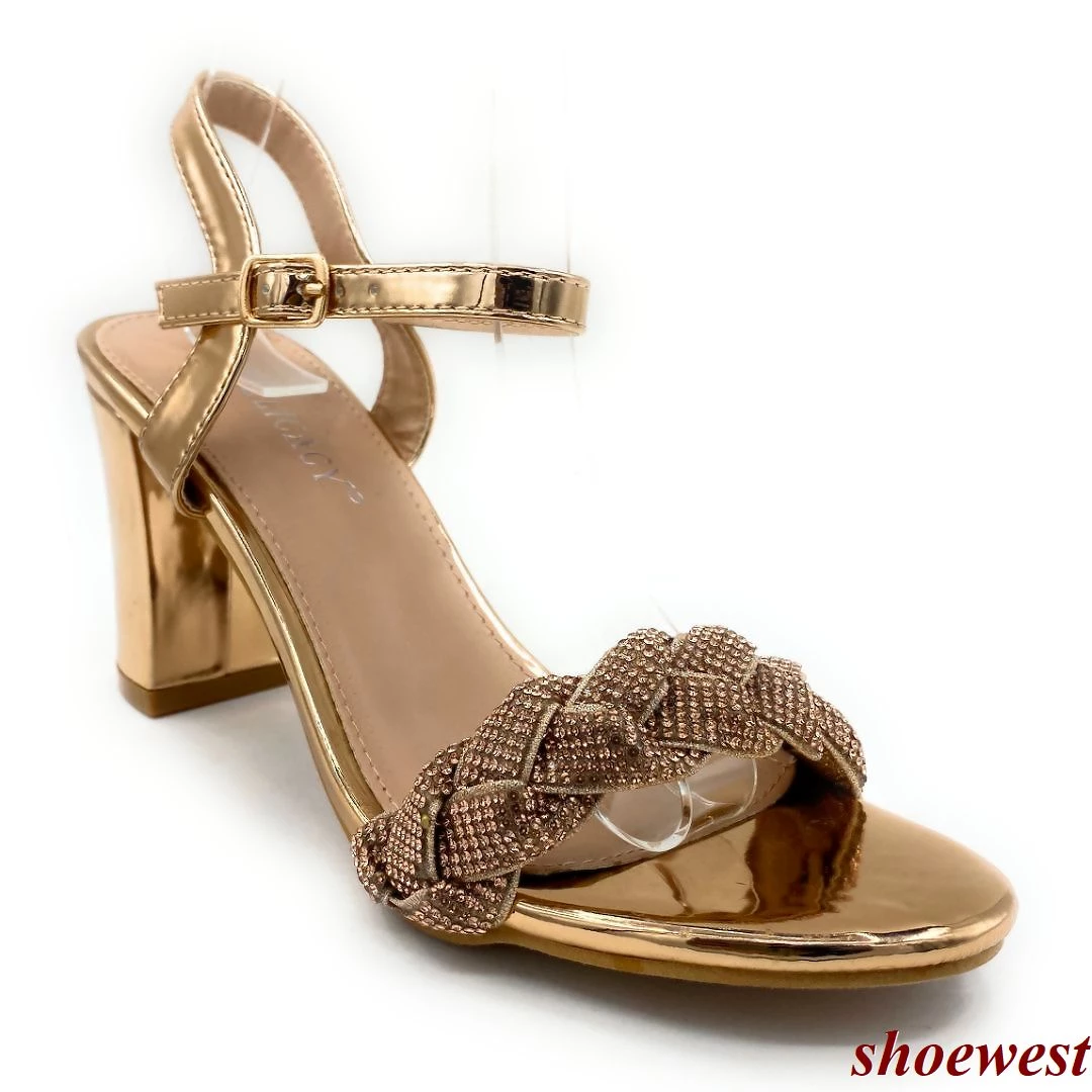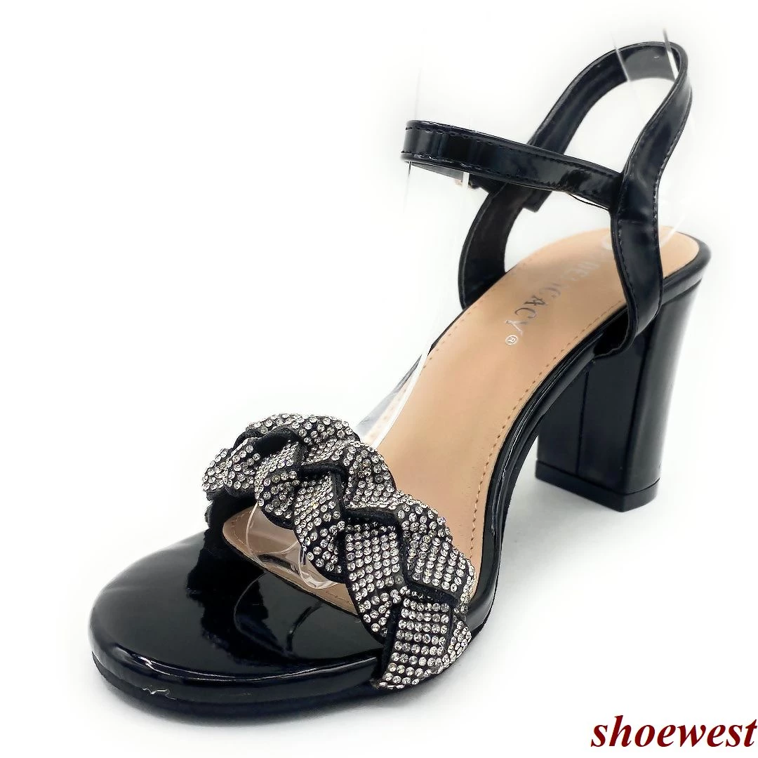 Forever Link Braided Straps Covered With Rhine Stones And Patent Leather Band Sandals