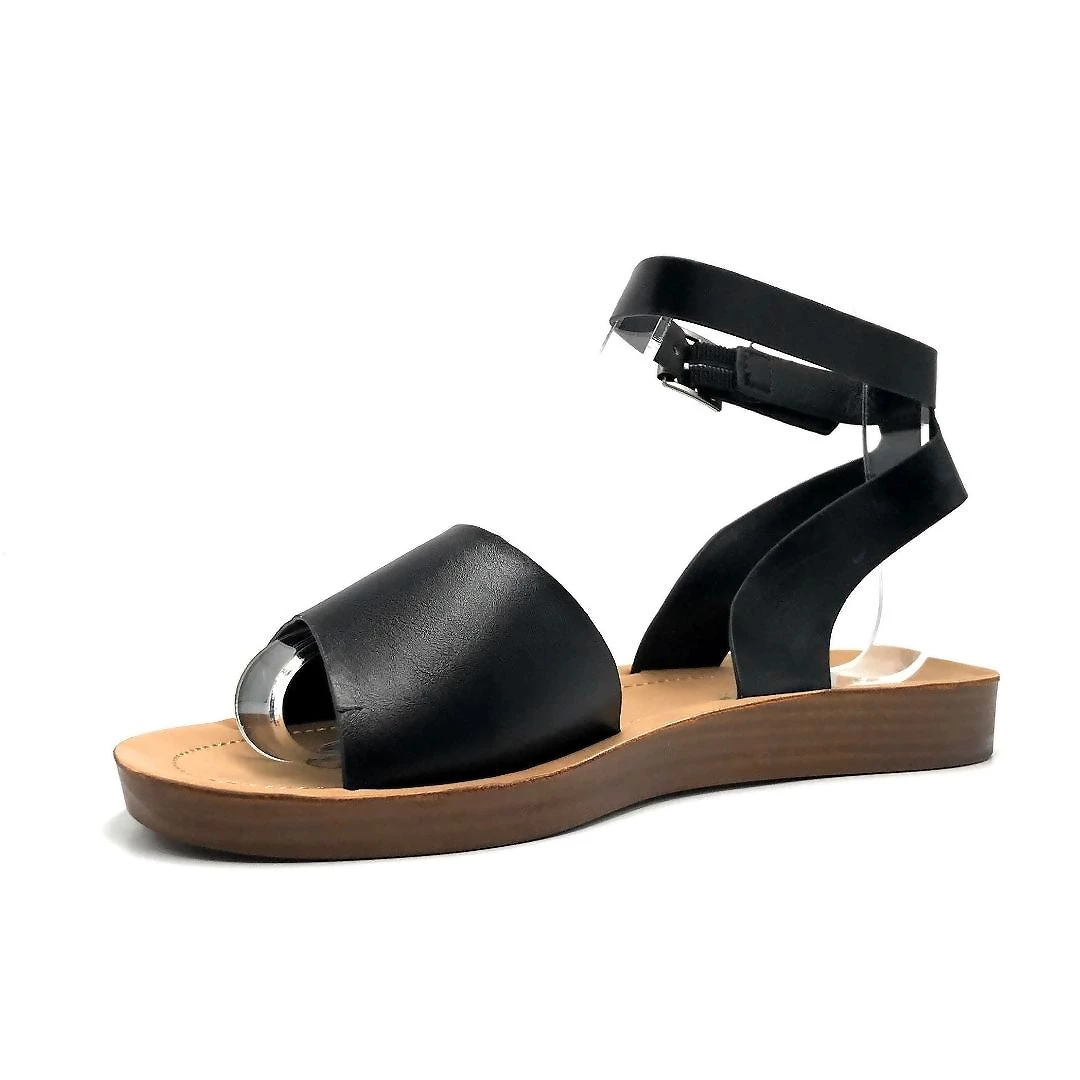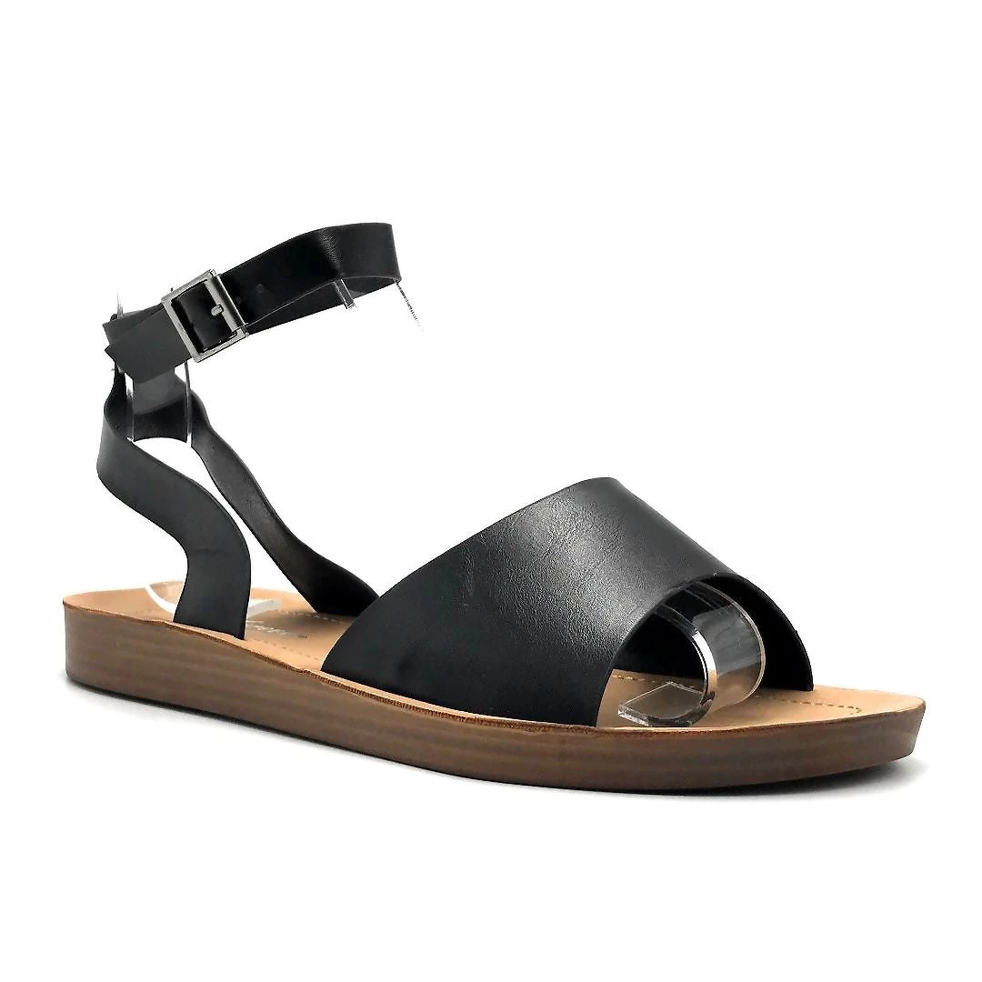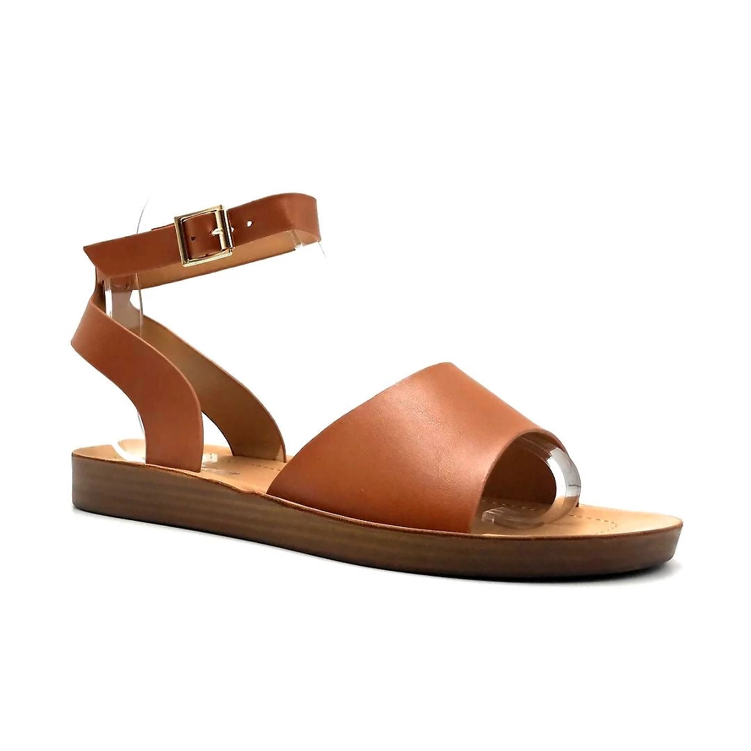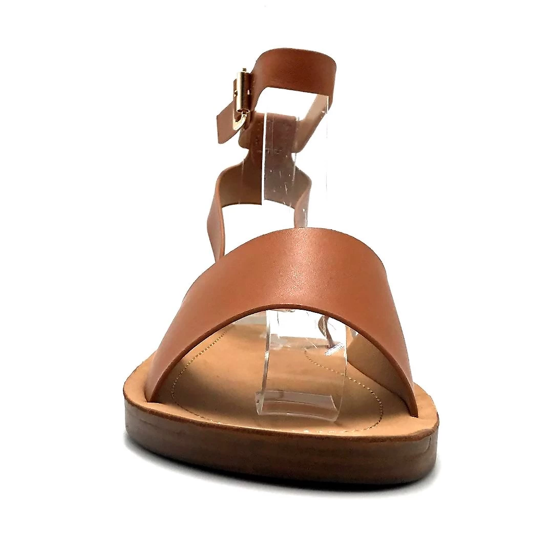 - This Flat Sandals features: Leather upper Leather lining Rubber outsole Ankle strap with adjustable buckle closure