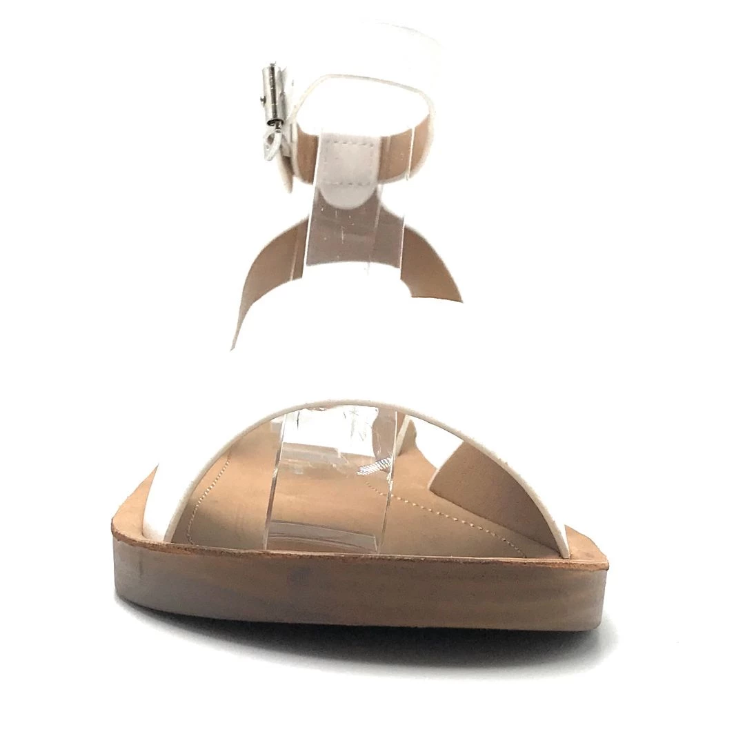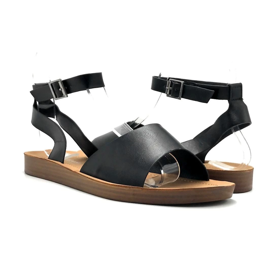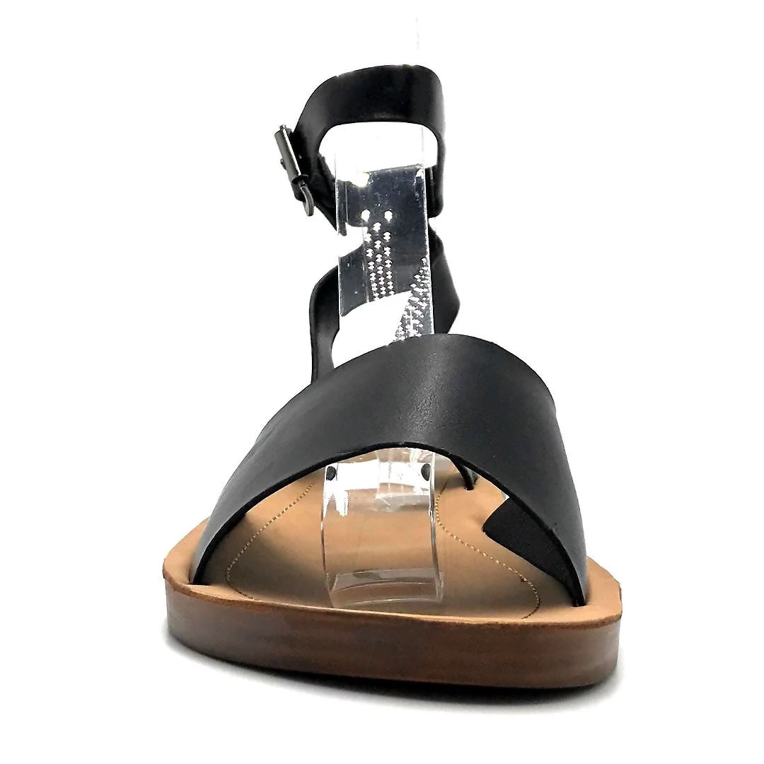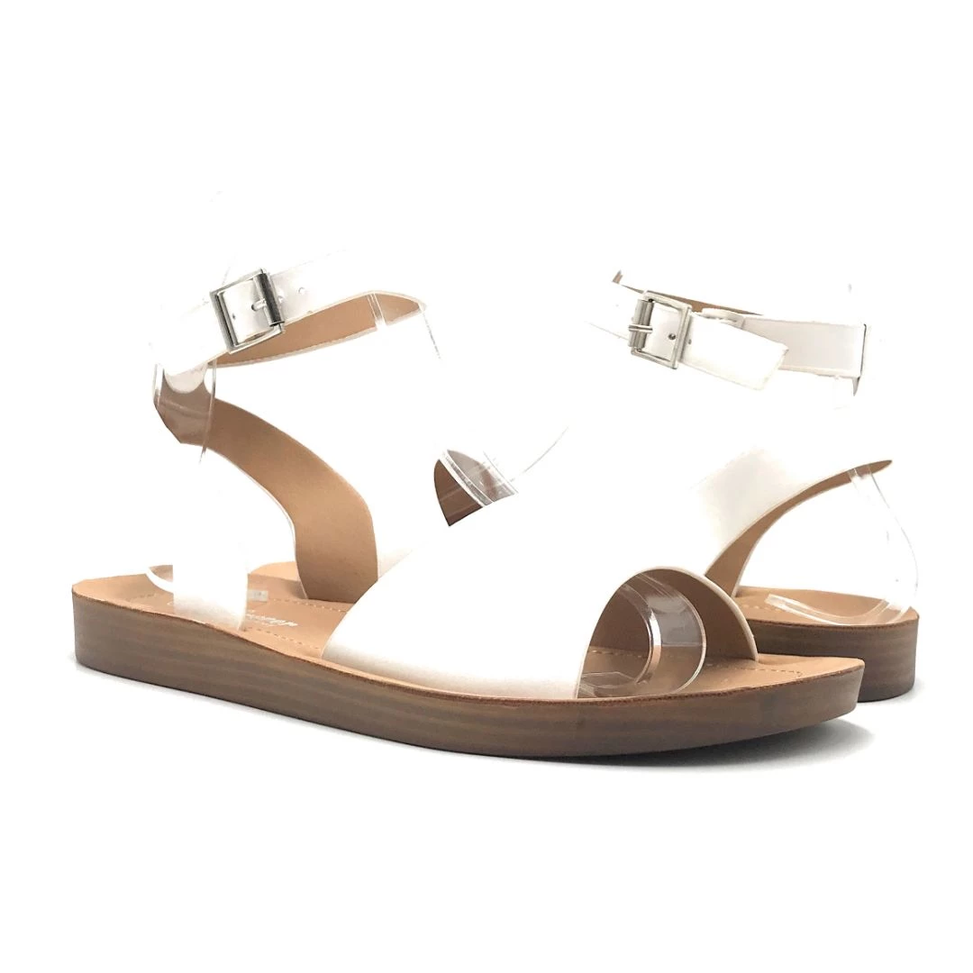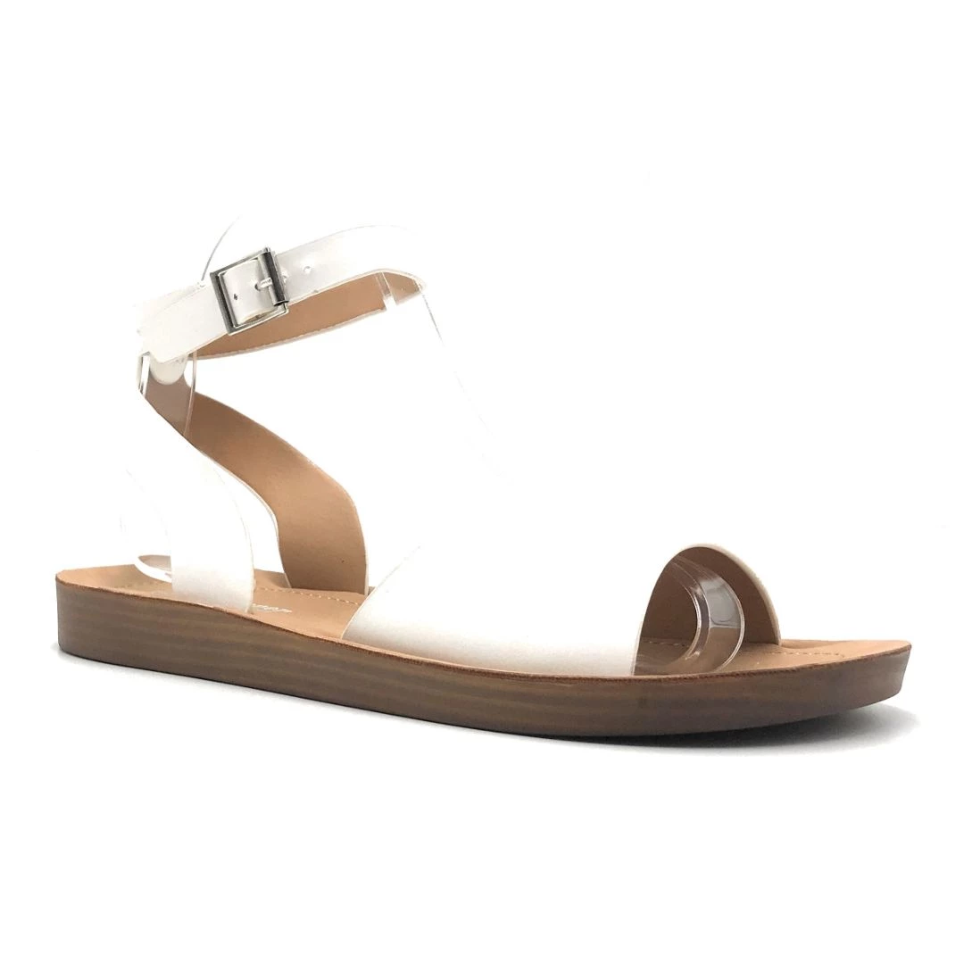 - This Flat Sandals features: Leather upper Leather lining Rubber outsole Ankle strap with adjustable buckle closure