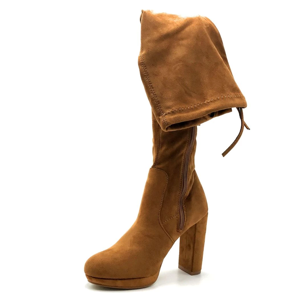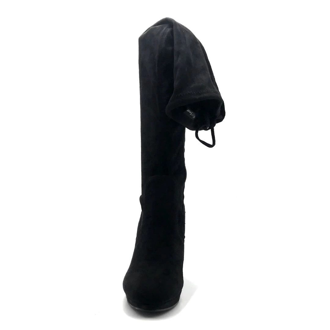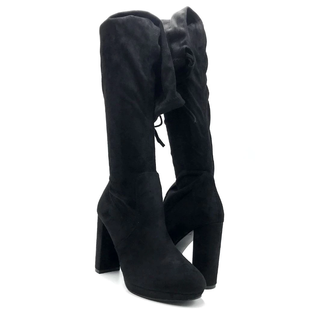 - We picture you in these sexy stiletto boots all season long. The end. Faux suede, over-the-knee boots feature a skinny stiletto, a pointy toe box, a lightly ridged sole, and a slim, slightly stretchy fit throughout the shaft. Finished with a zippered closure on the side for easy on and off.