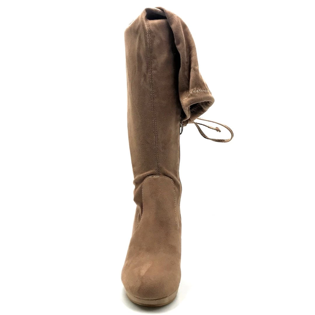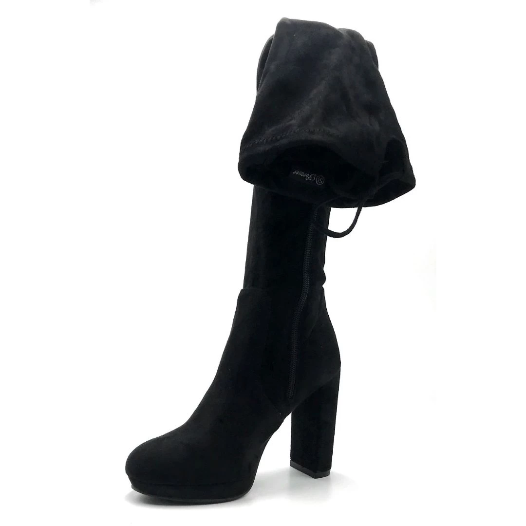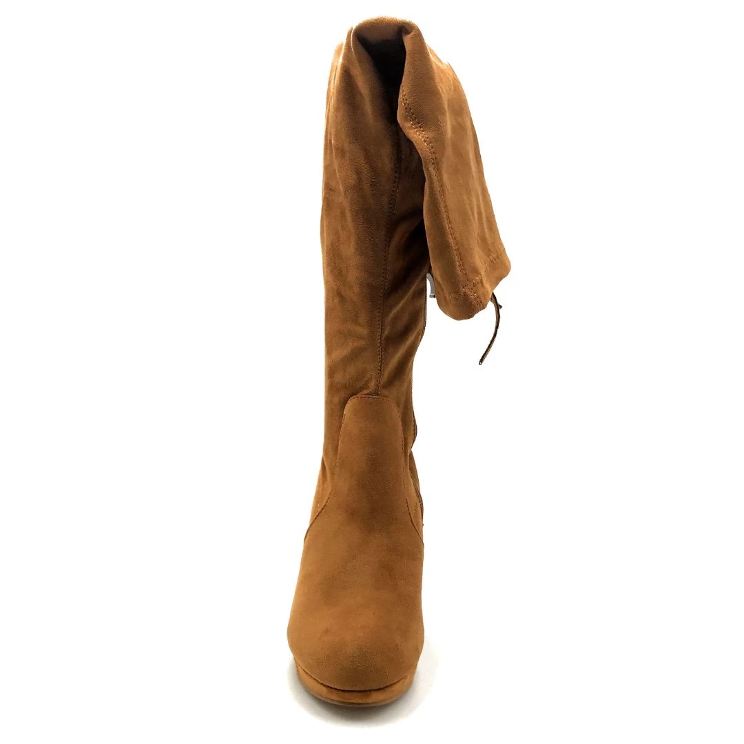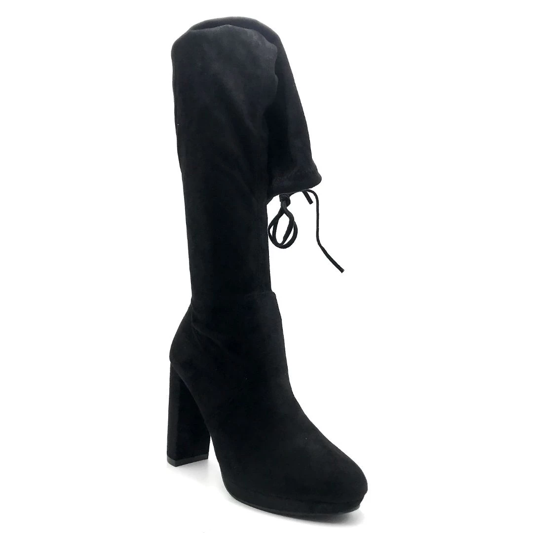 - We picture you in these sexy stiletto boots all season long. The end. Faux suede, over-the-knee boots feature a skinny stiletto, a pointy toe box, a lightly ridged sole, and a slim, slightly stretchy fit throughout the shaft. Finished with a zippered closure on the side for easy on and off.