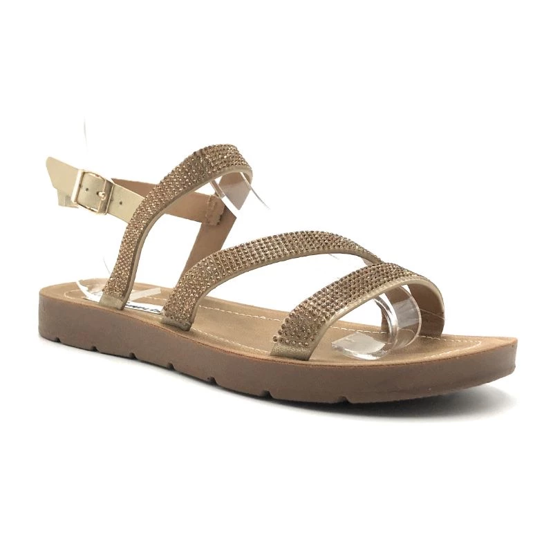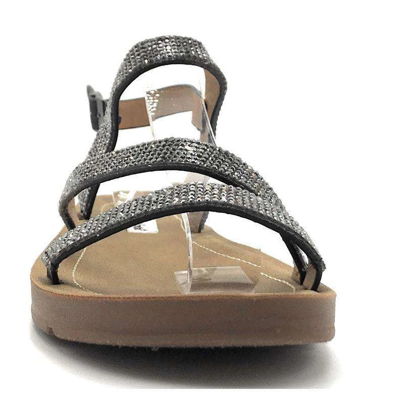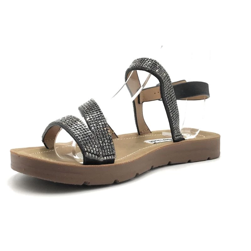 Forever Summer Style Shinny Rhinestone Open Toe Strap Design Flat Sandal With Side Ankle Buckle For All Day women
