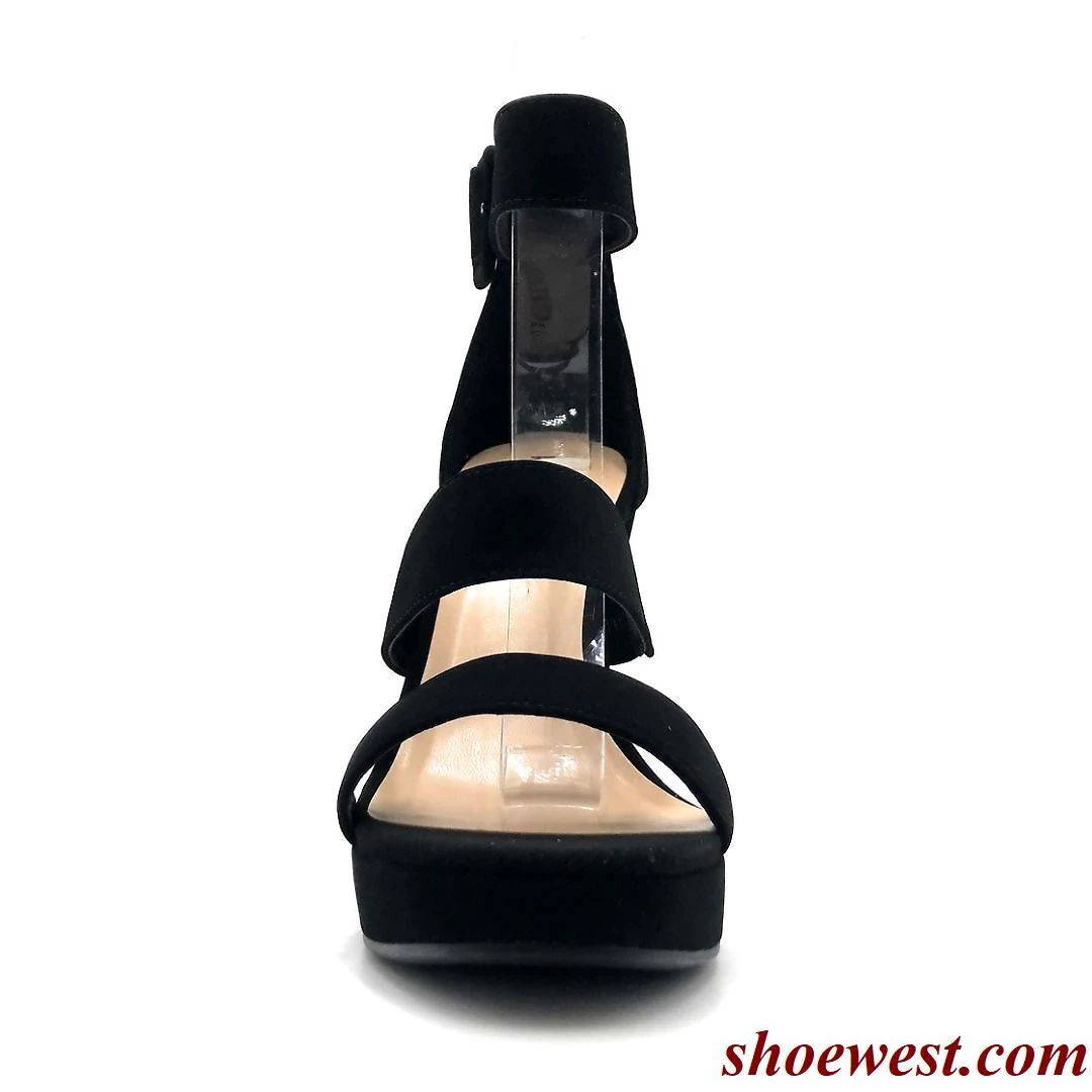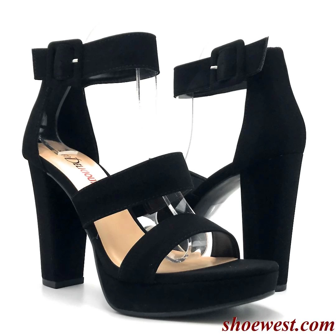 - Features an Open Toe Front, Buckle Ankle Strap With Chunky High Heel and Low Platform.