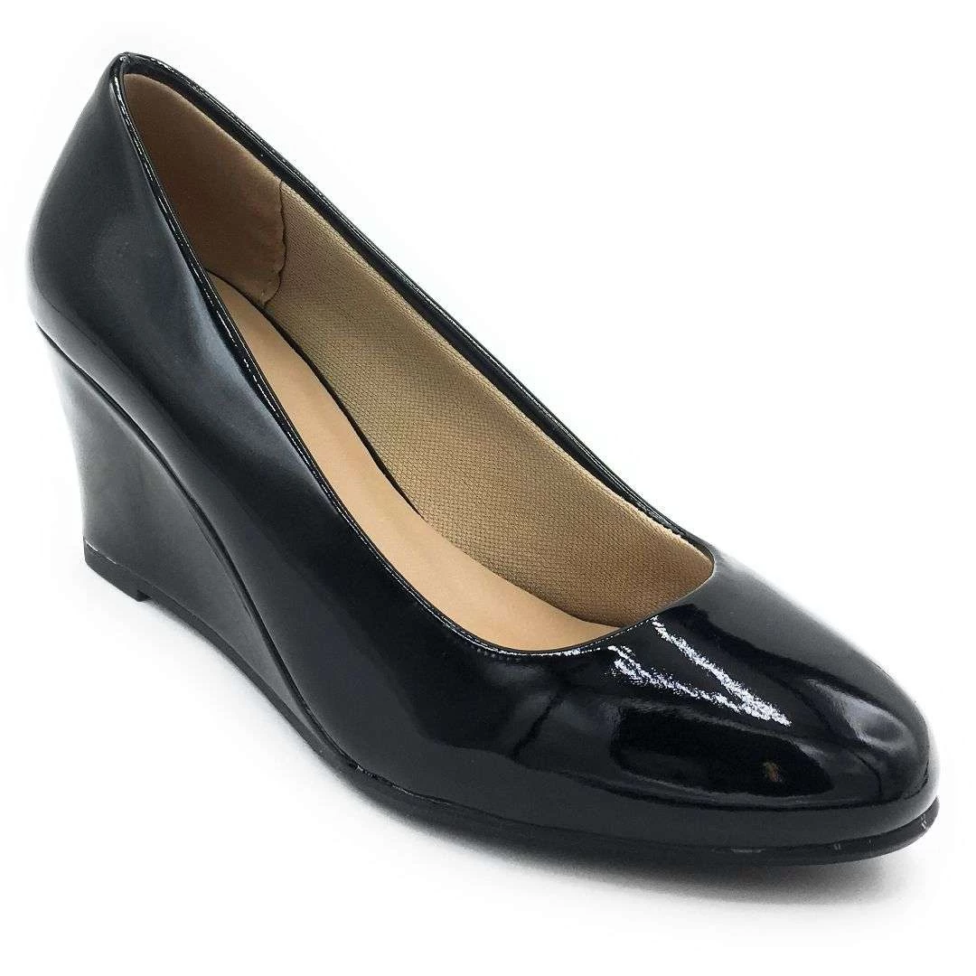 Forever Link Mid Heel Fashion Comfortable Dressy Work Wedge Round Toe Shoe