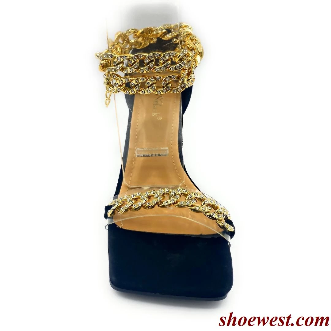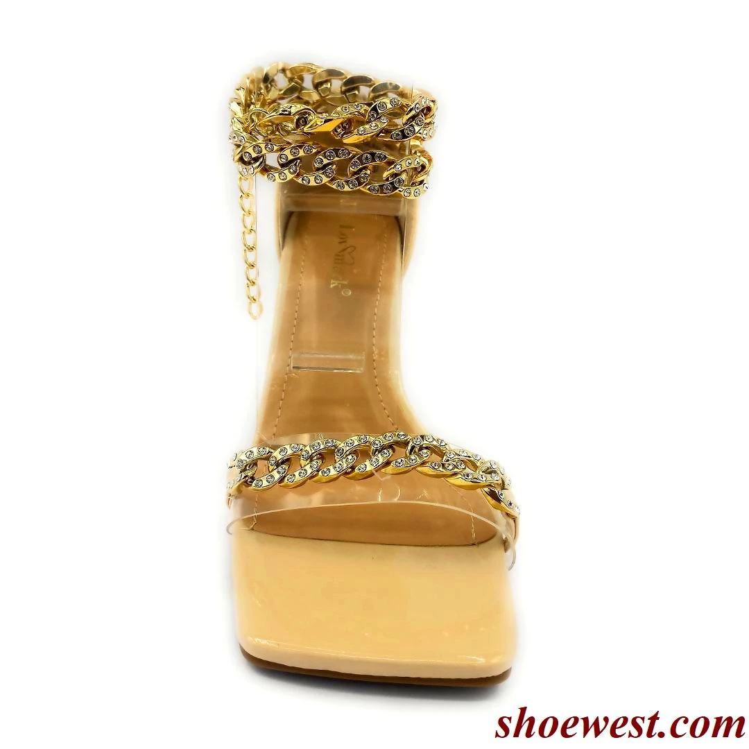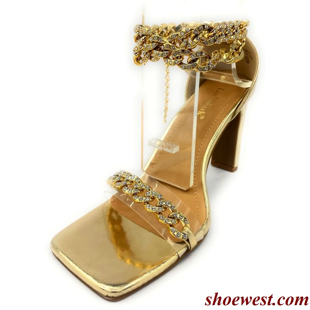 - This Strappy Heel Features a Glamorous Chain Adorned with Diamante Around the Ankle And Toe