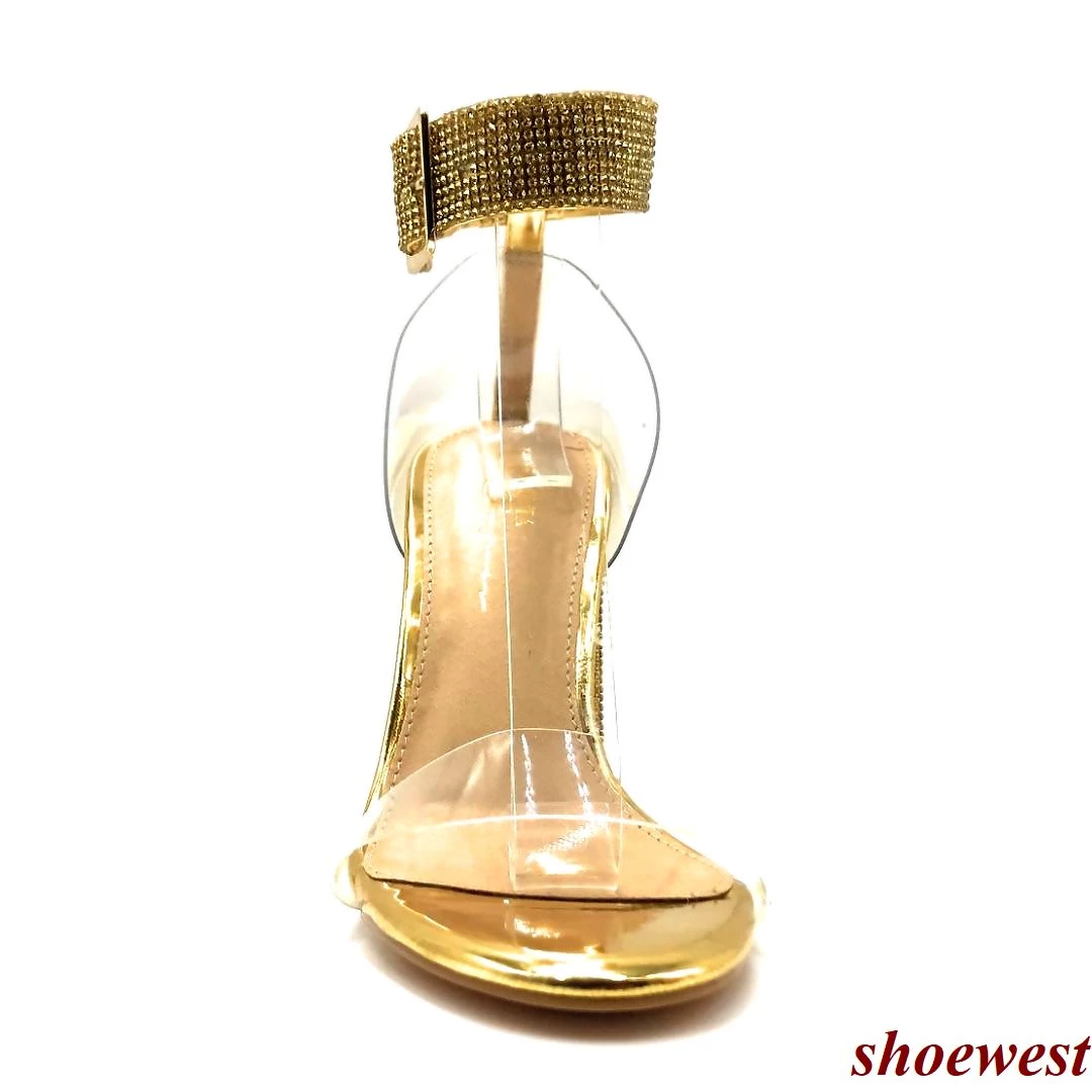 - Clear foot Strap with Rhinestones on Heels and Ankle strap