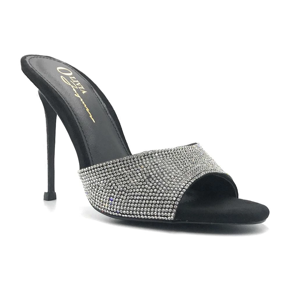 Olivia Jaymes Dress Sandals, Open Toe Slip-On Rhinestone Jeweled Dress Mules