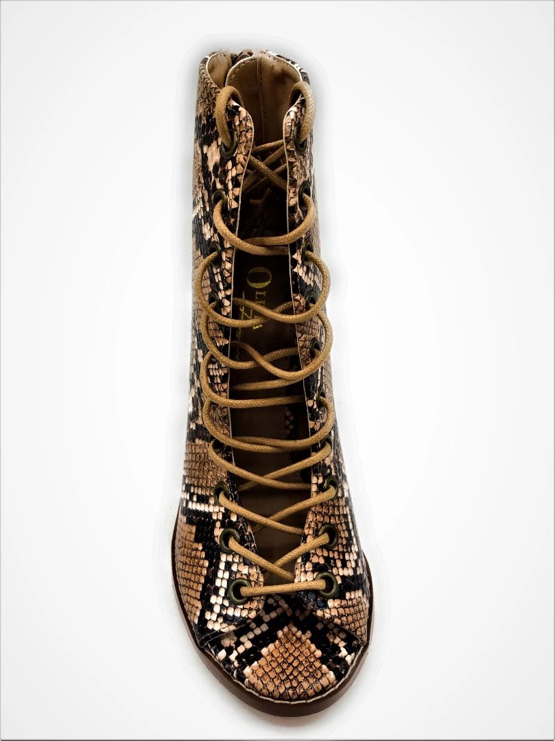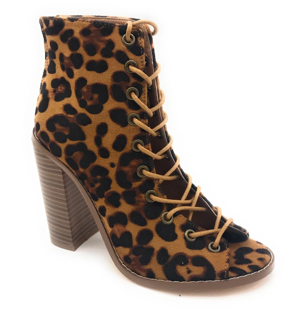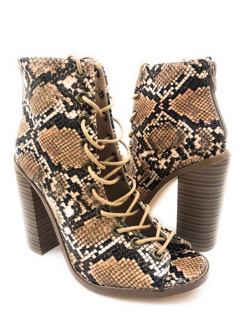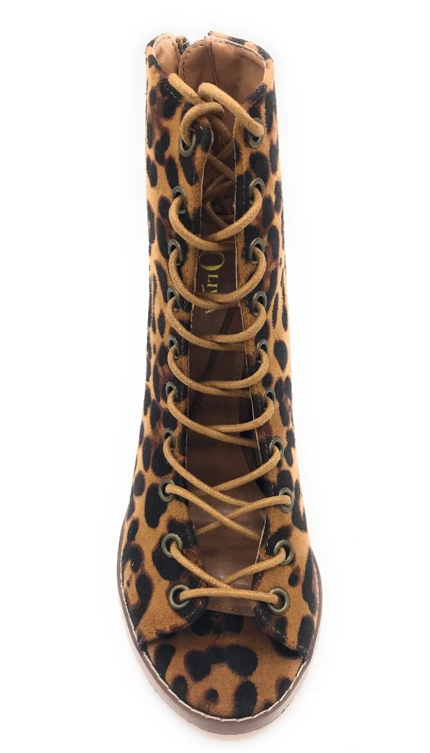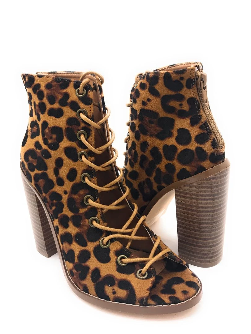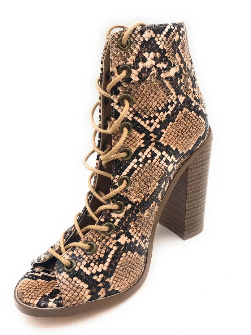Olivia Jaymes Open Peep Toe Chunky Block Heel Ankle Boots With Front Open Lace