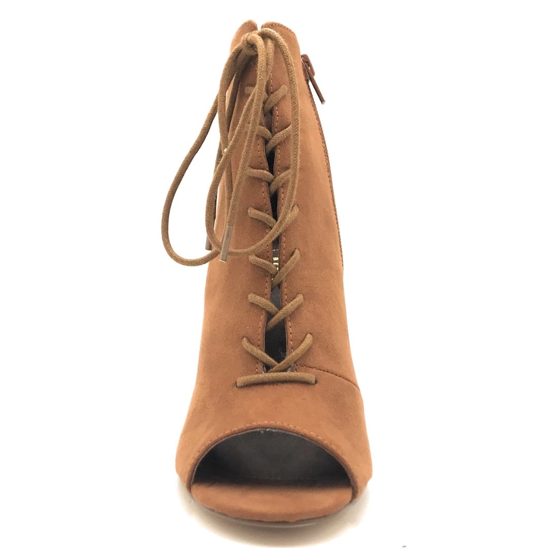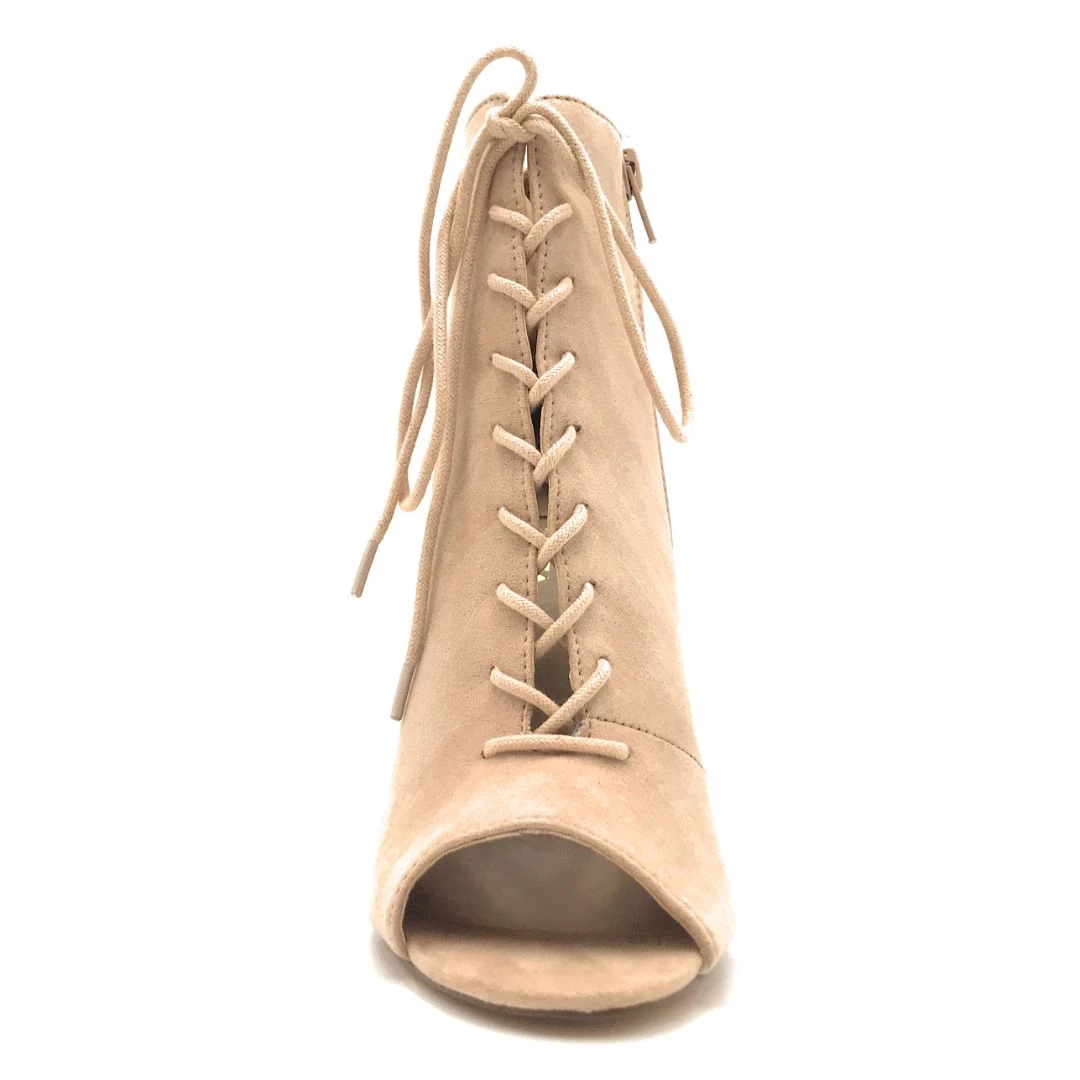 Olivia Jaymes Faux Suede Chunky high Heels Ankle Laced up Shoes for Women