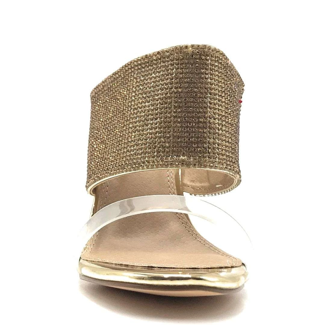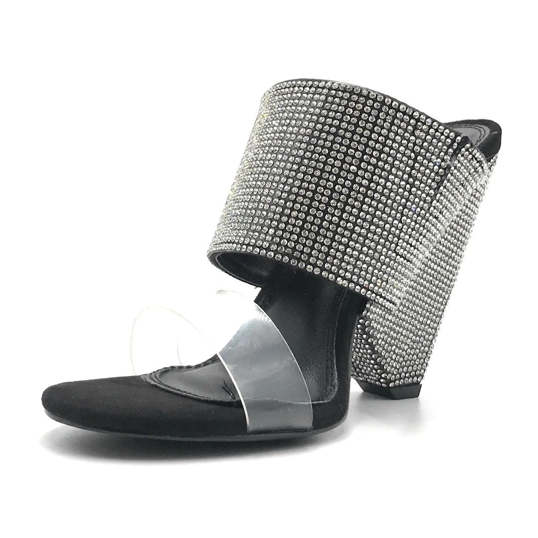 Olivia Jaymes Bling Sexy High Block Heels Open Toe Transparent Front Strap Sandals Shoes For Women