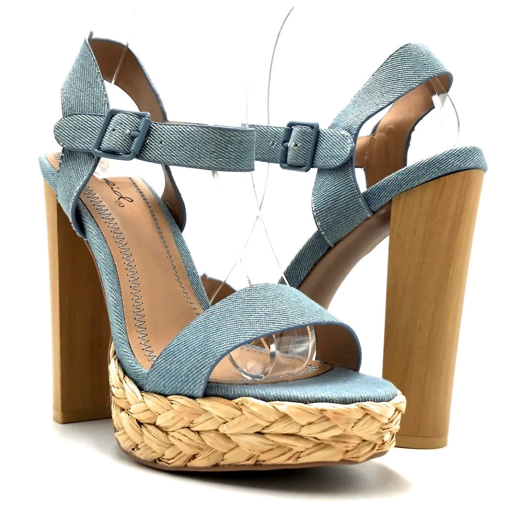 Qupid Jute Braided High Heels With Thick Buckle Strap For Women