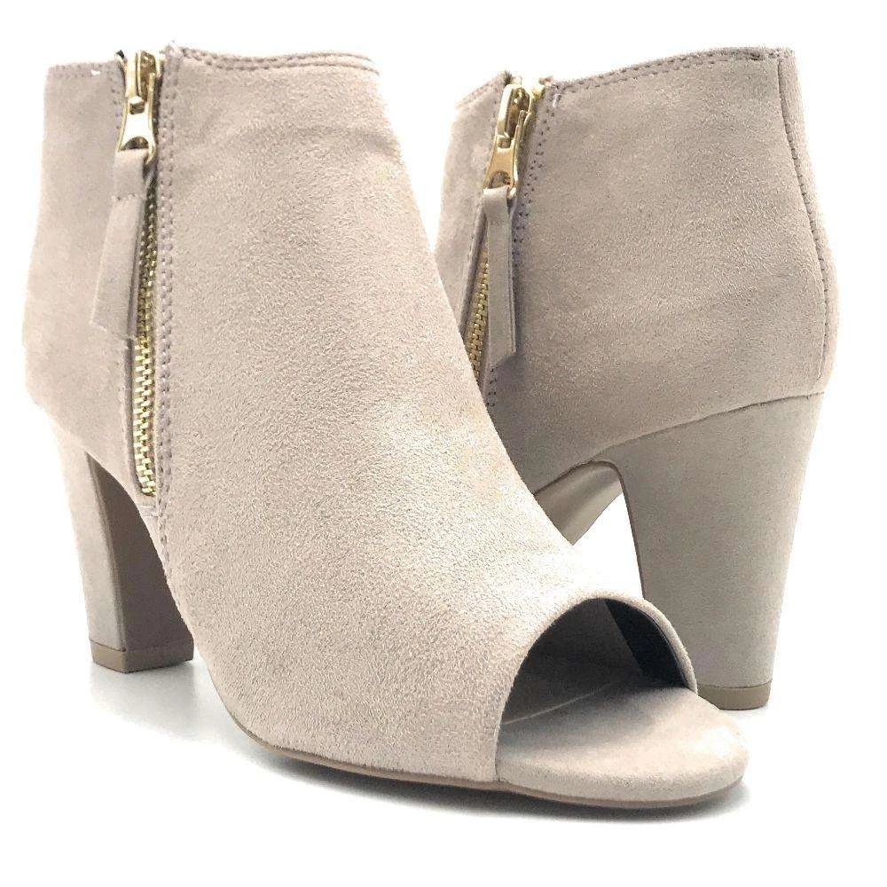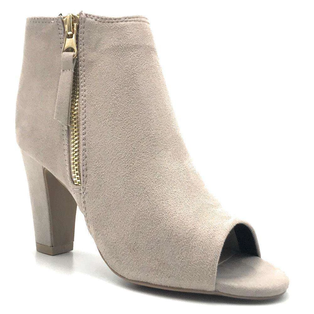 Qupid Comfortable Chunky Block High Heel Bootie Ankle Side Zipper Open Toe Trendy Women’s Fashion Shoes