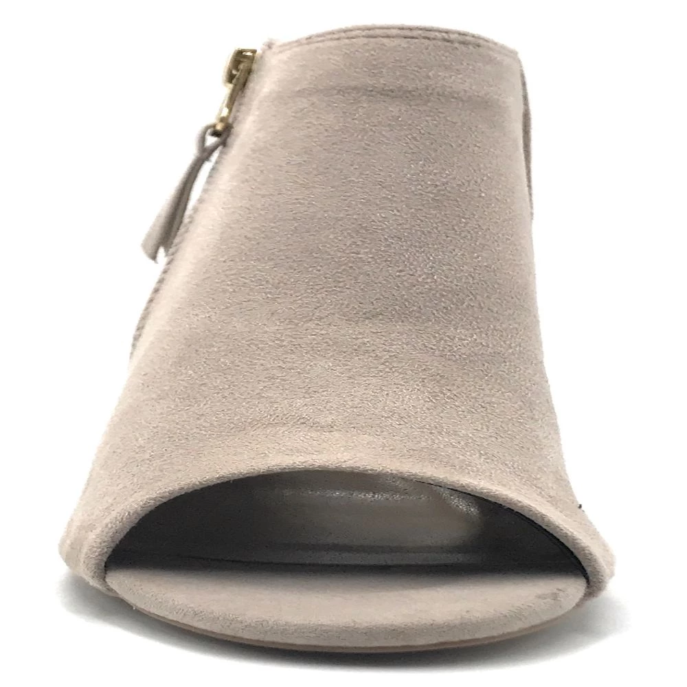 - Features: open toe, chunky high heel, side zip, block heel sandal.