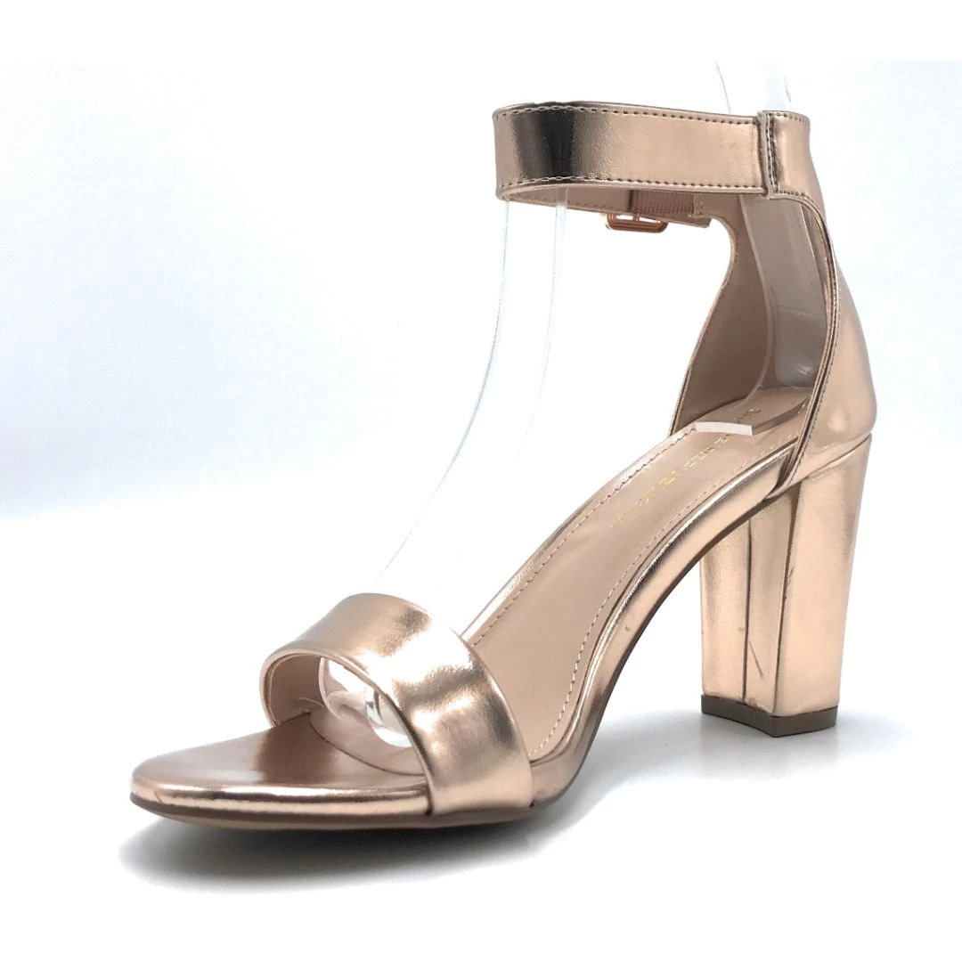 - Medium Block Heel With Ankle Round Buckle Strap