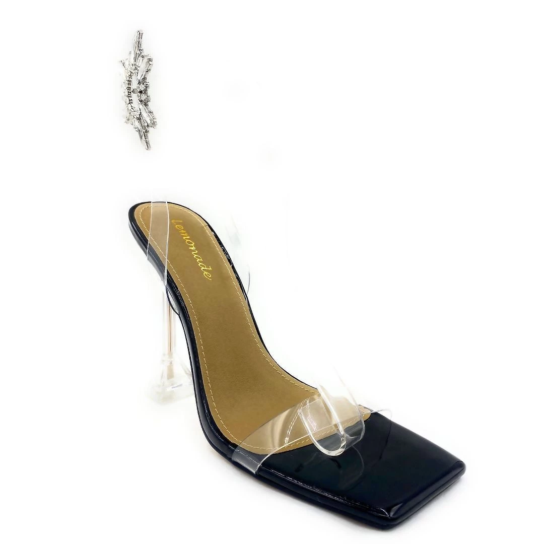 Lemonade Square Toe Diamante Clear Perspex Heel