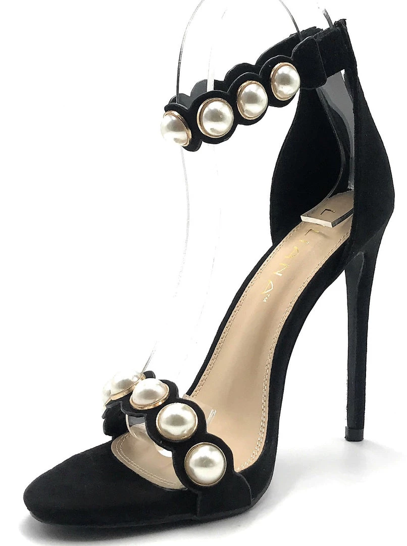 Liliana High Heel Zipper Closure Ankle Strap Pearls Open Toe Sexy Stiletto Fashion Shoes