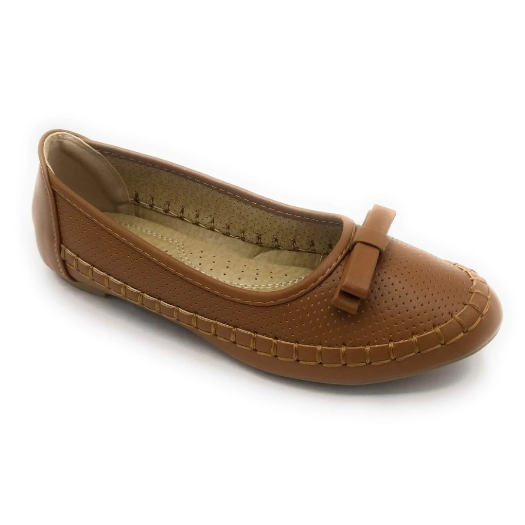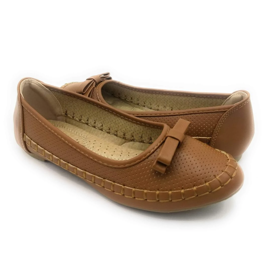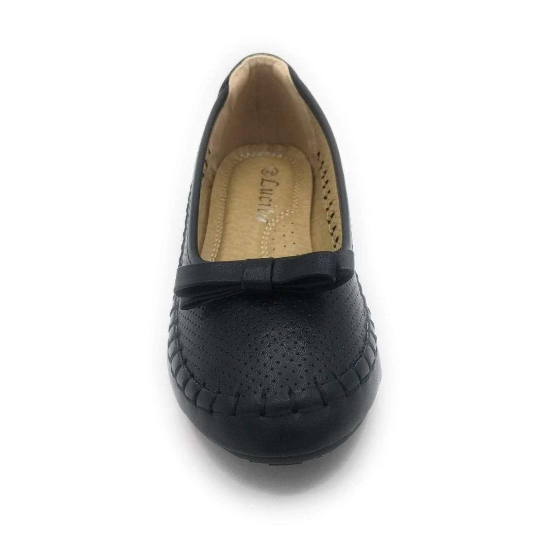Lucita Comfortable Ballerina pointed Toe Stitched Pattern Bow Flat Slip-on shoes