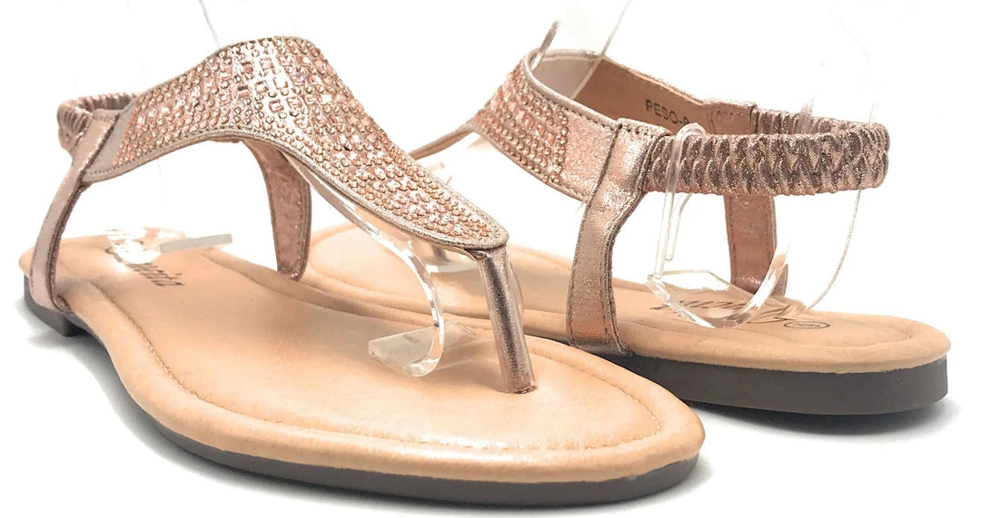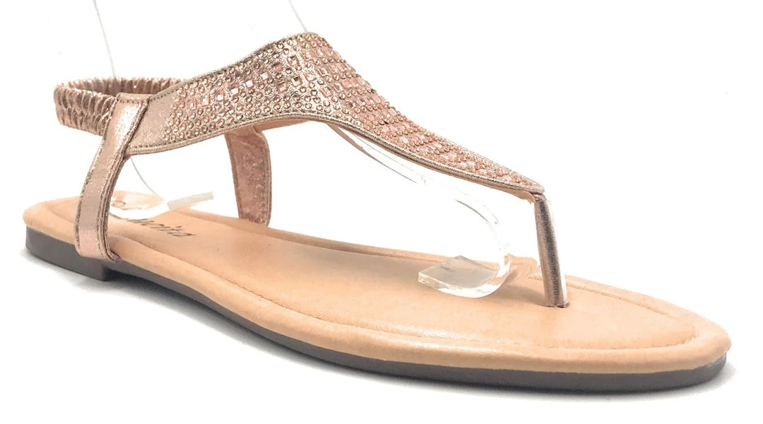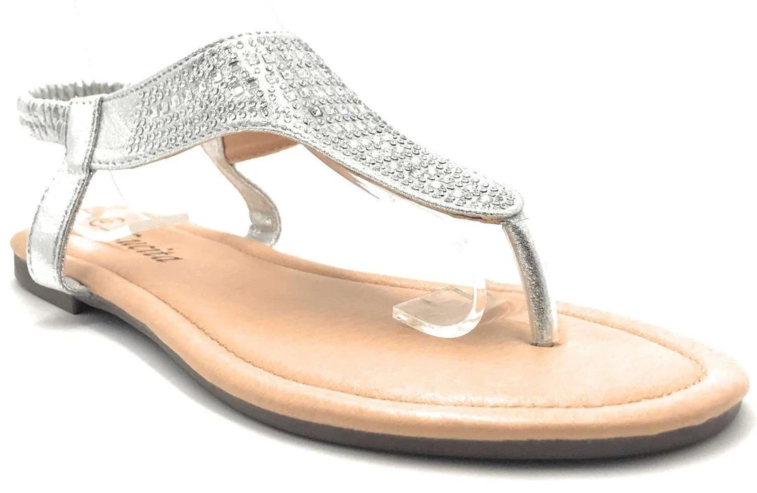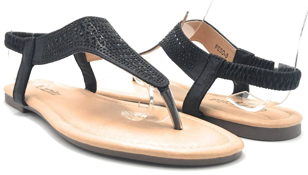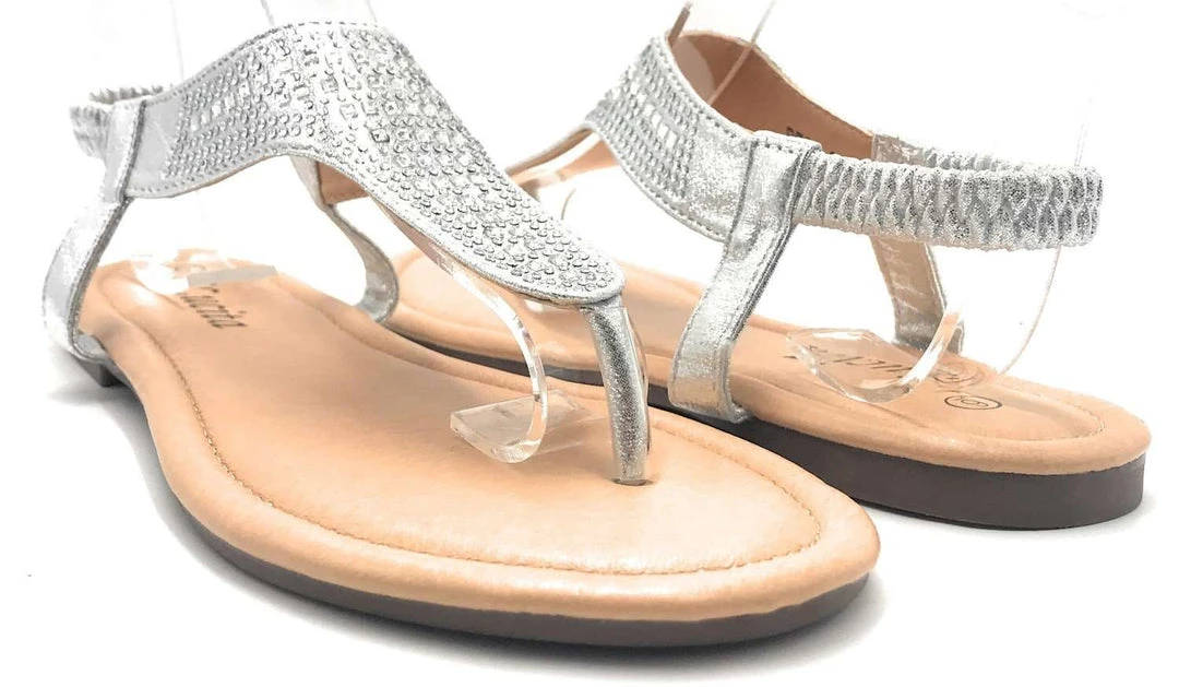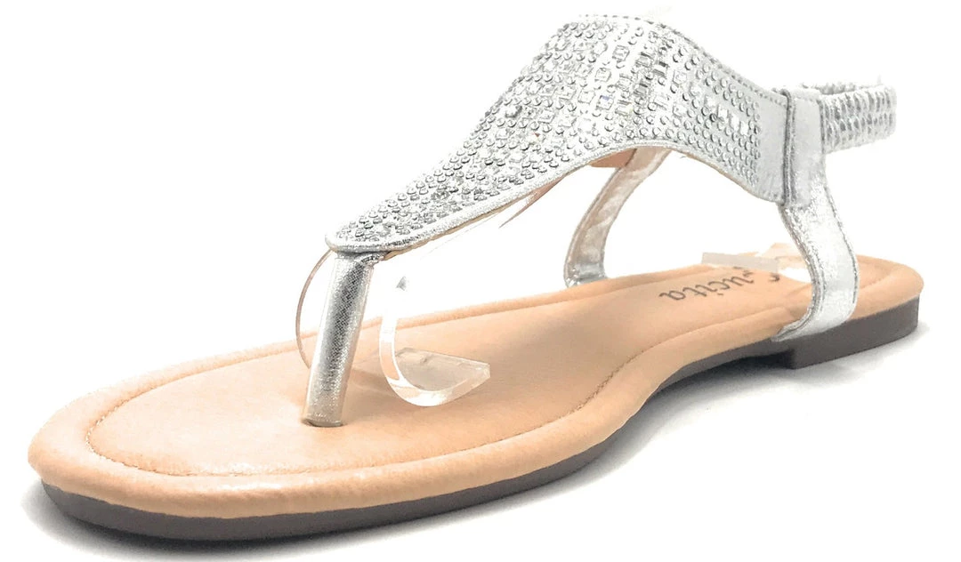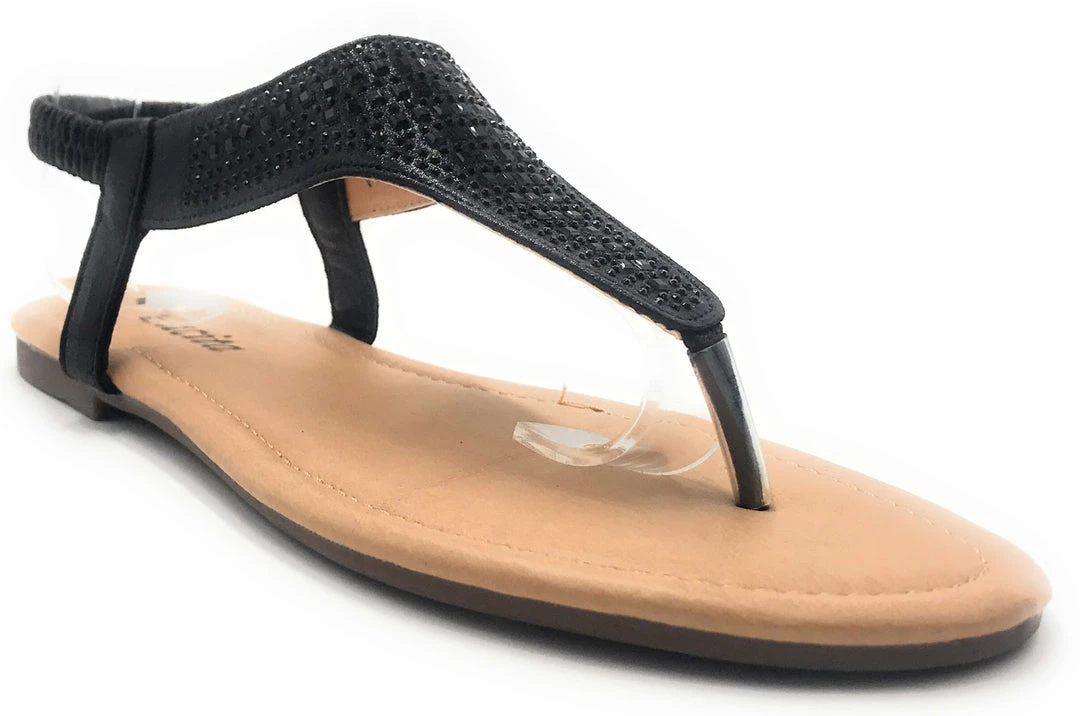 Lucita Women’s Flat Summer Sandals Comfortable New Style Rhinestone Slide In Open Toe Adjustable Elastic Back Strap fashionable Trendy Womens Shoe–ShoeWest USA–