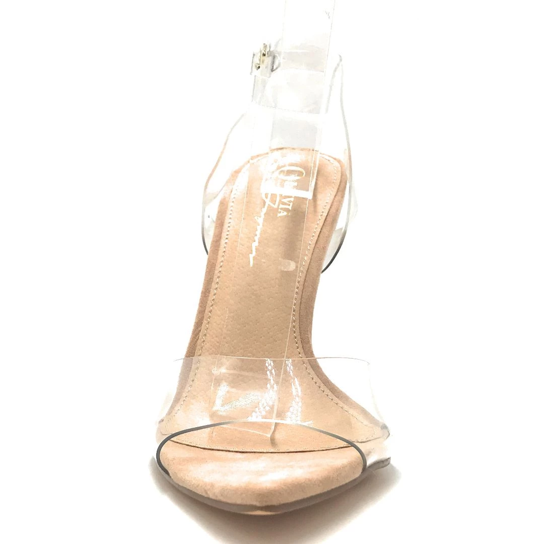 Olivia Jaymes Women’s High Heeled Pointed Toe Stilettos Sandal Clear Adjustable Ankle Strap Buckle Design New Fashion Party Evening Shoes
