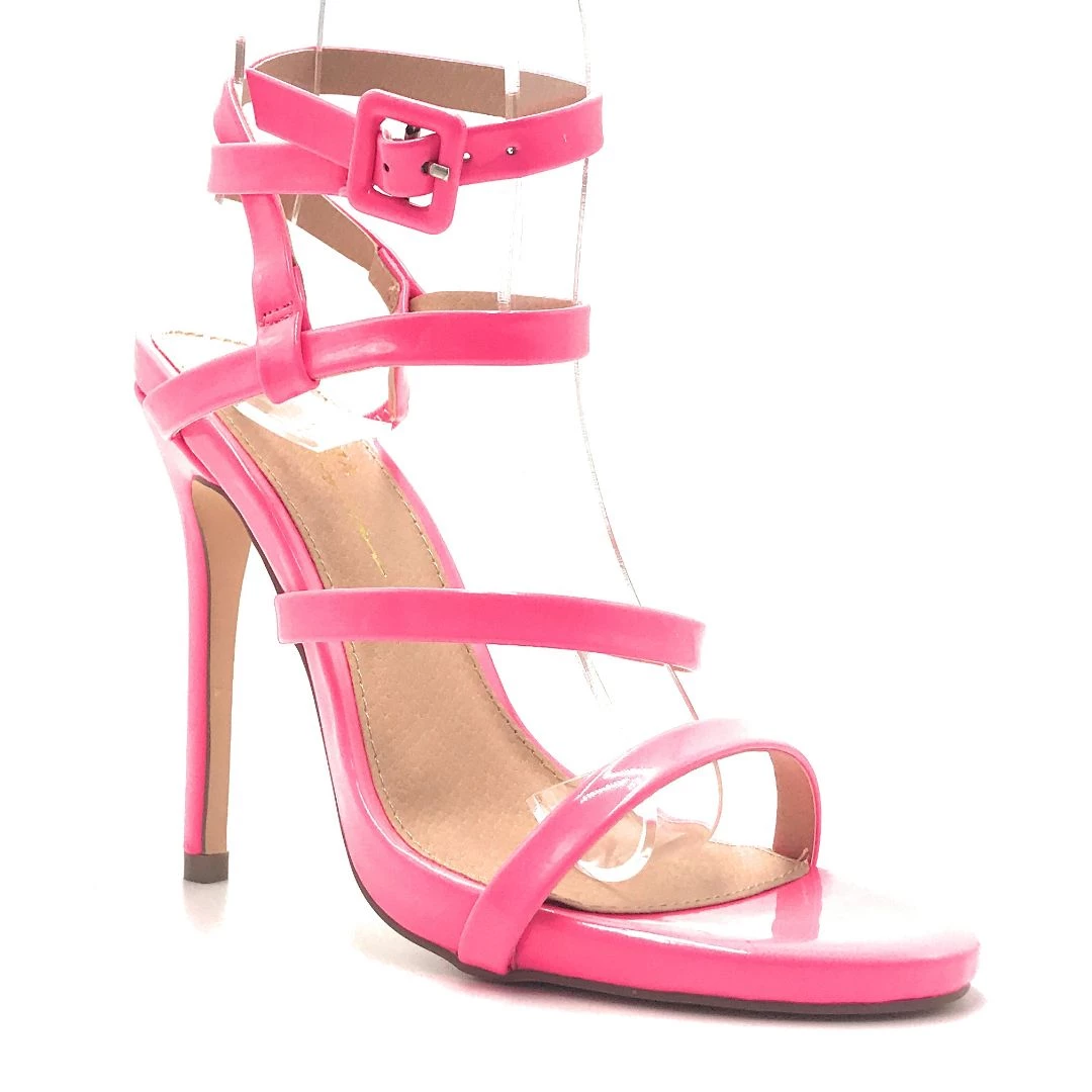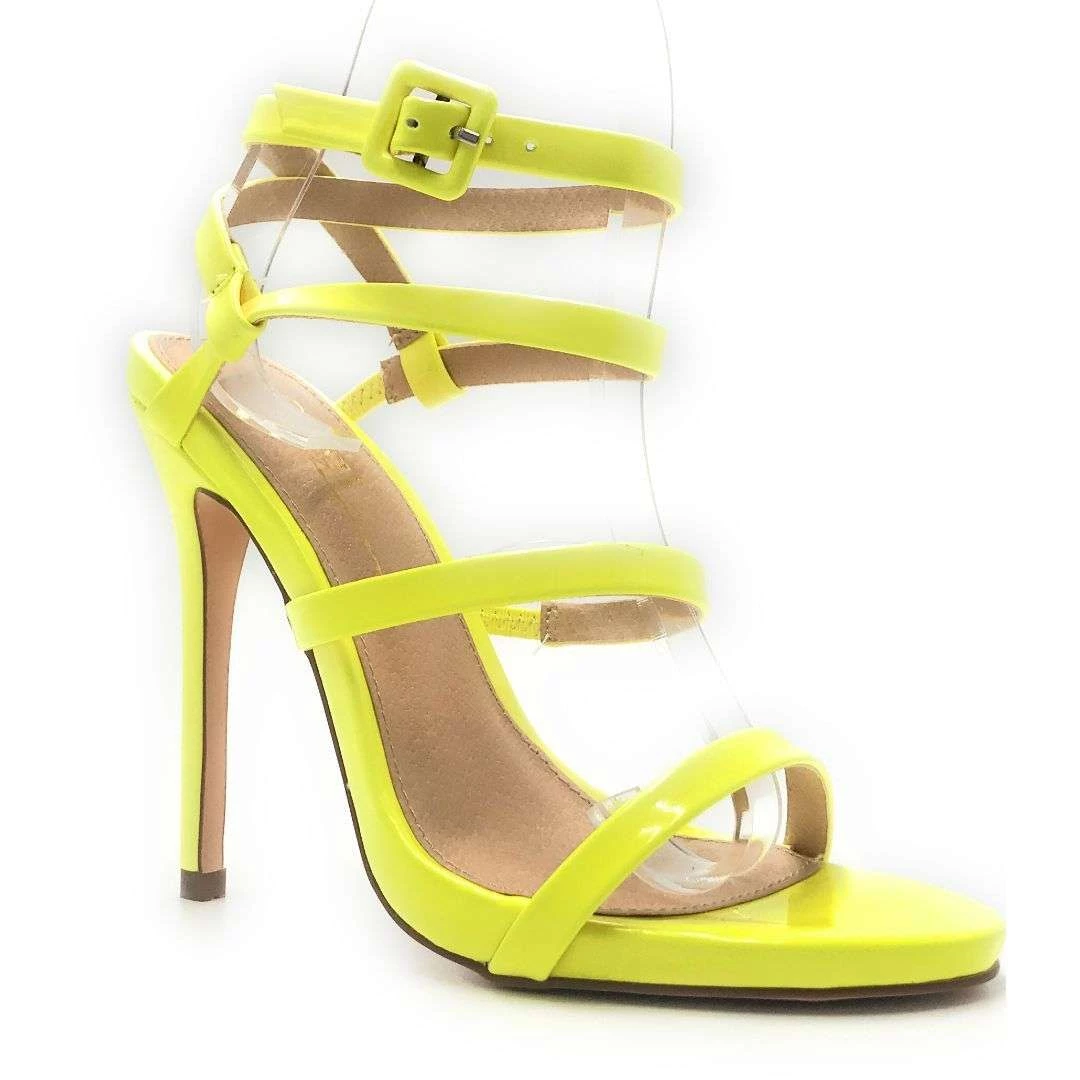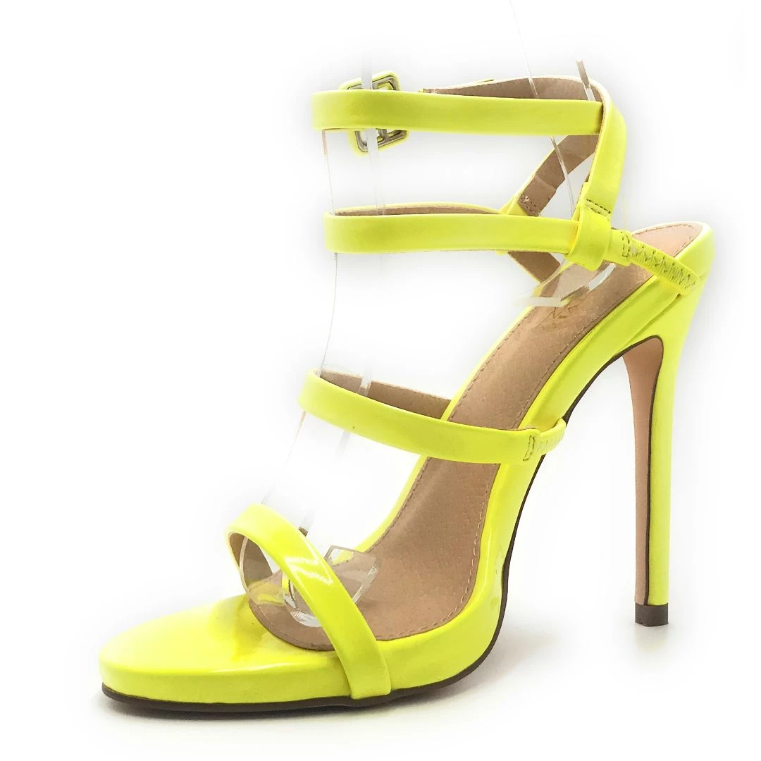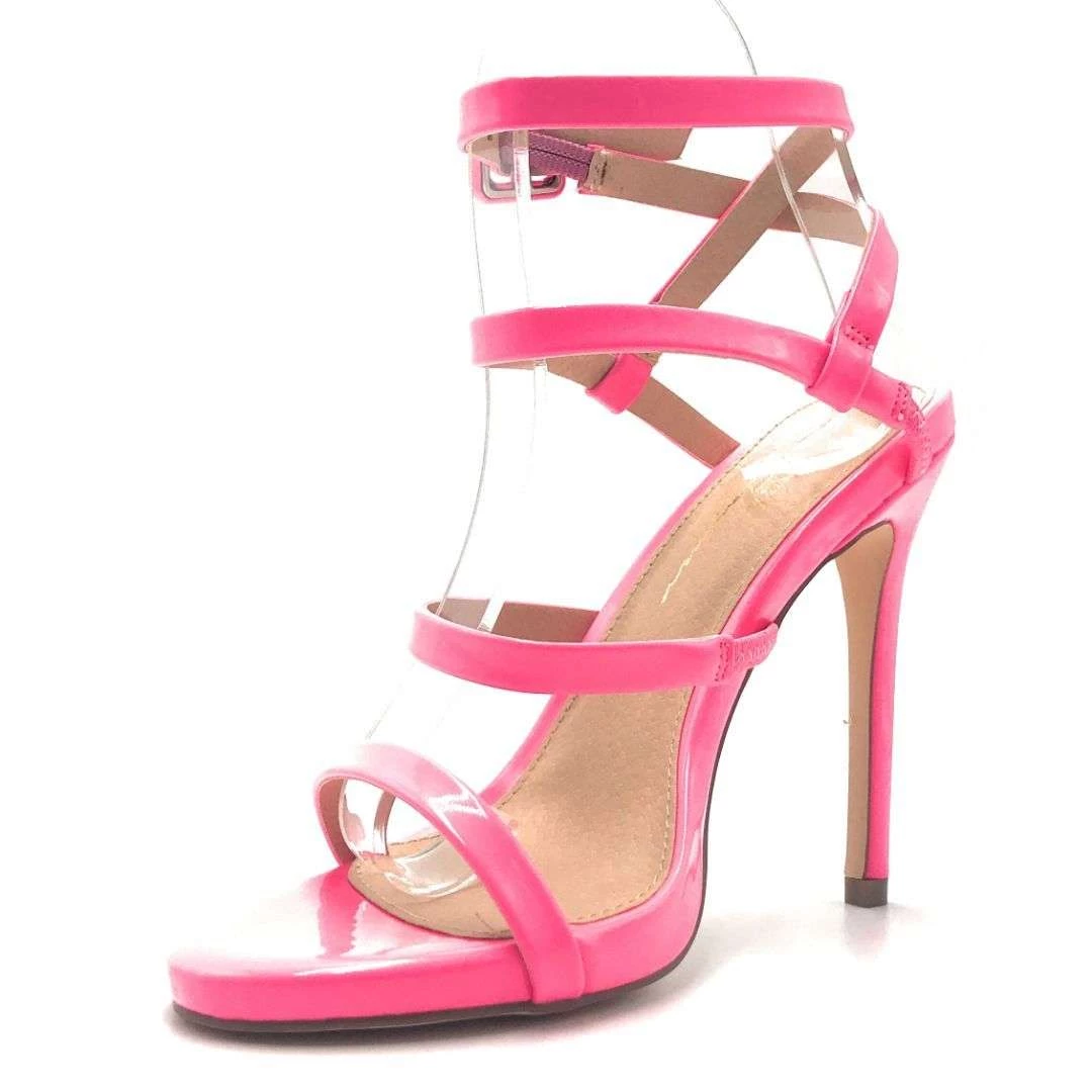 Olivia Jaymes High Heel Open Toe Stiletto New Fashion Women’s Shoe Cross Adjustable Buckle Ankle Strap Neon Colors Pu Material Shoes